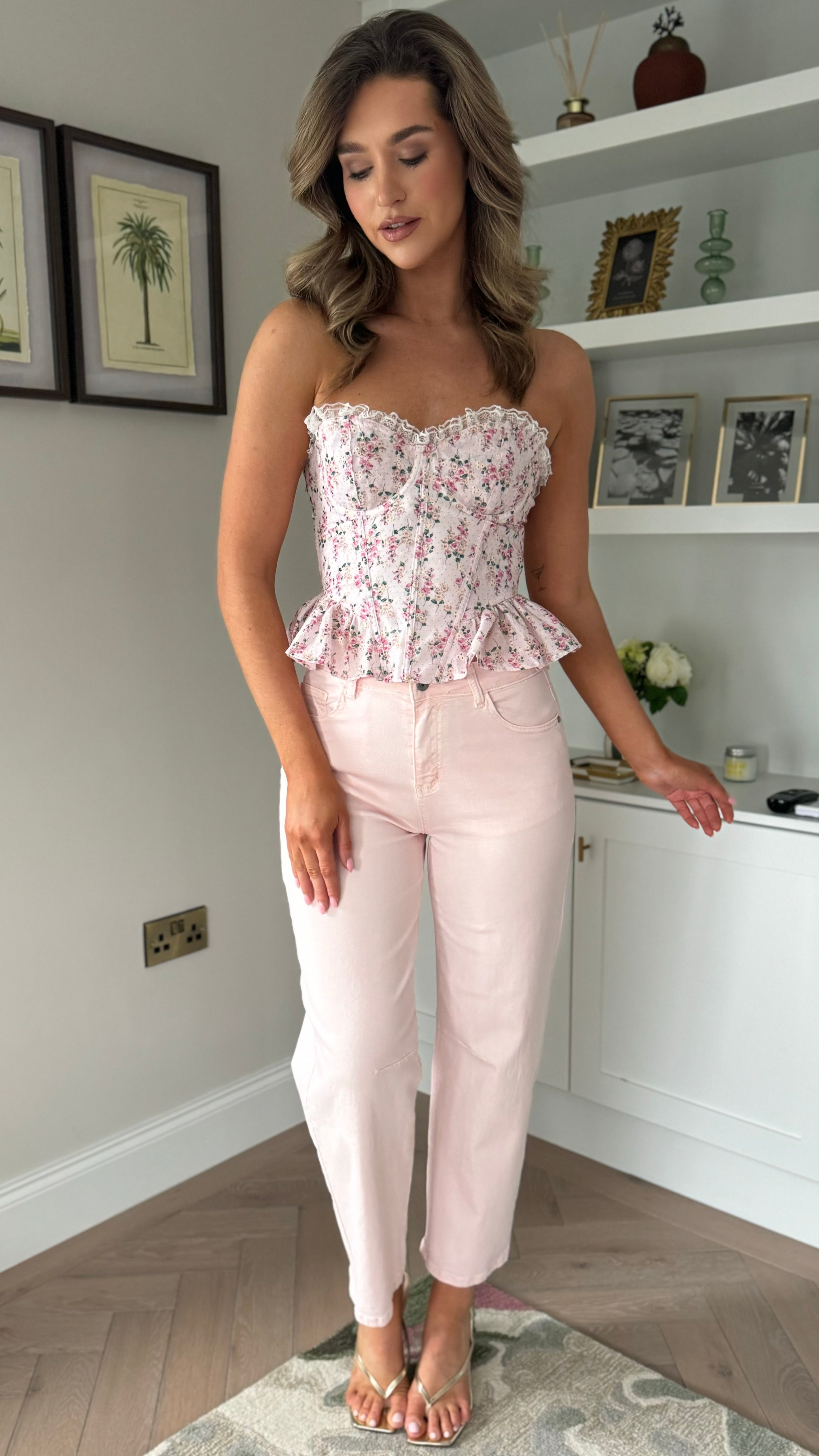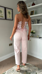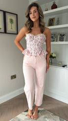 Judie Rose Pink Floral Peplum Detail Corset Top