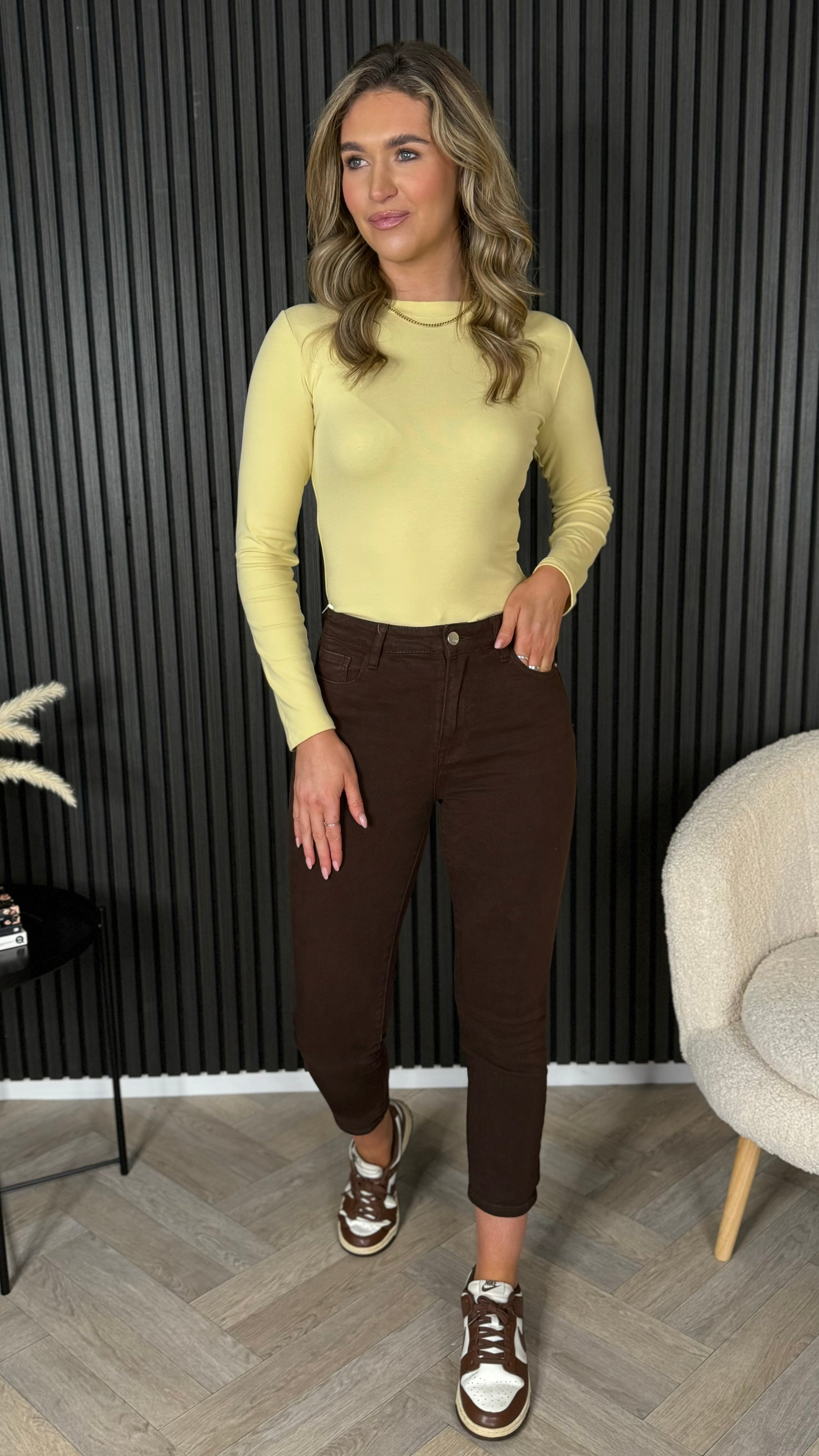 Slip into effortless style with this yellow round neck top—your new go-to for looking put-together without the fuss. Long sleeves keep things cosy, while the soft, stretchy fabric moves with you all day long. Whether you're dressing it up or keeping it casual, this versatile basic is the wardrobe essential that does it all. Simple, comfortable, and endlessly wearable.