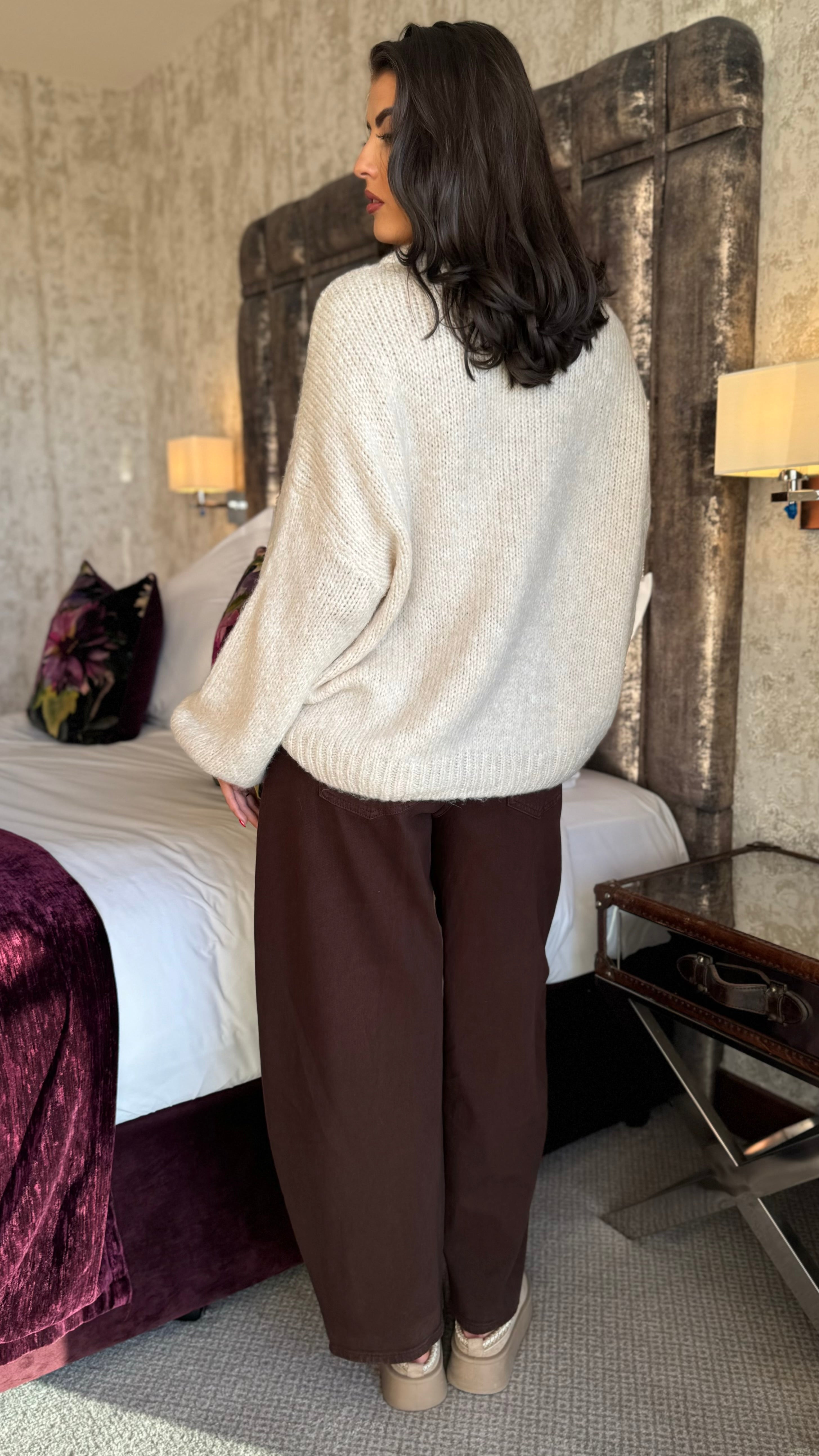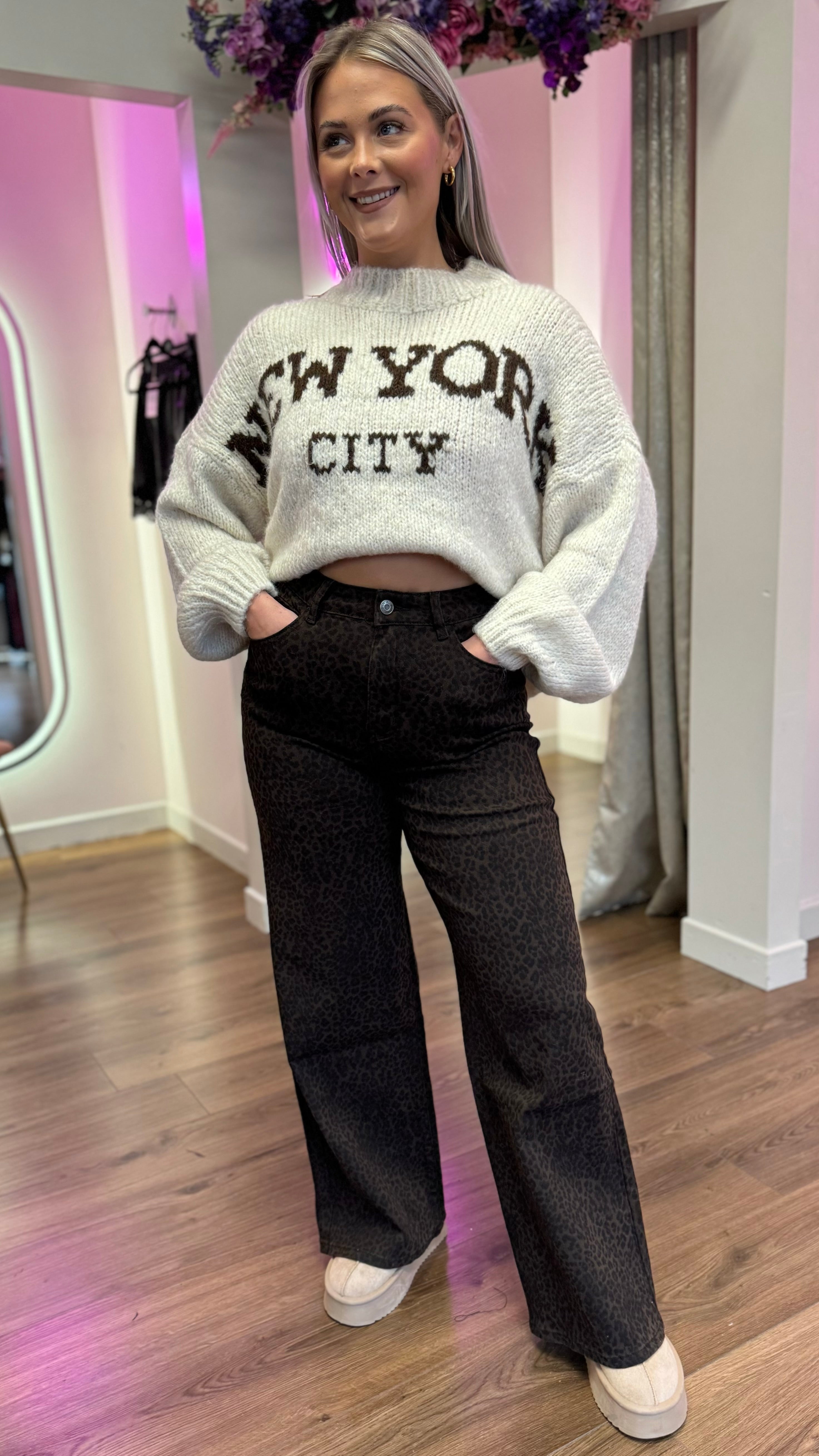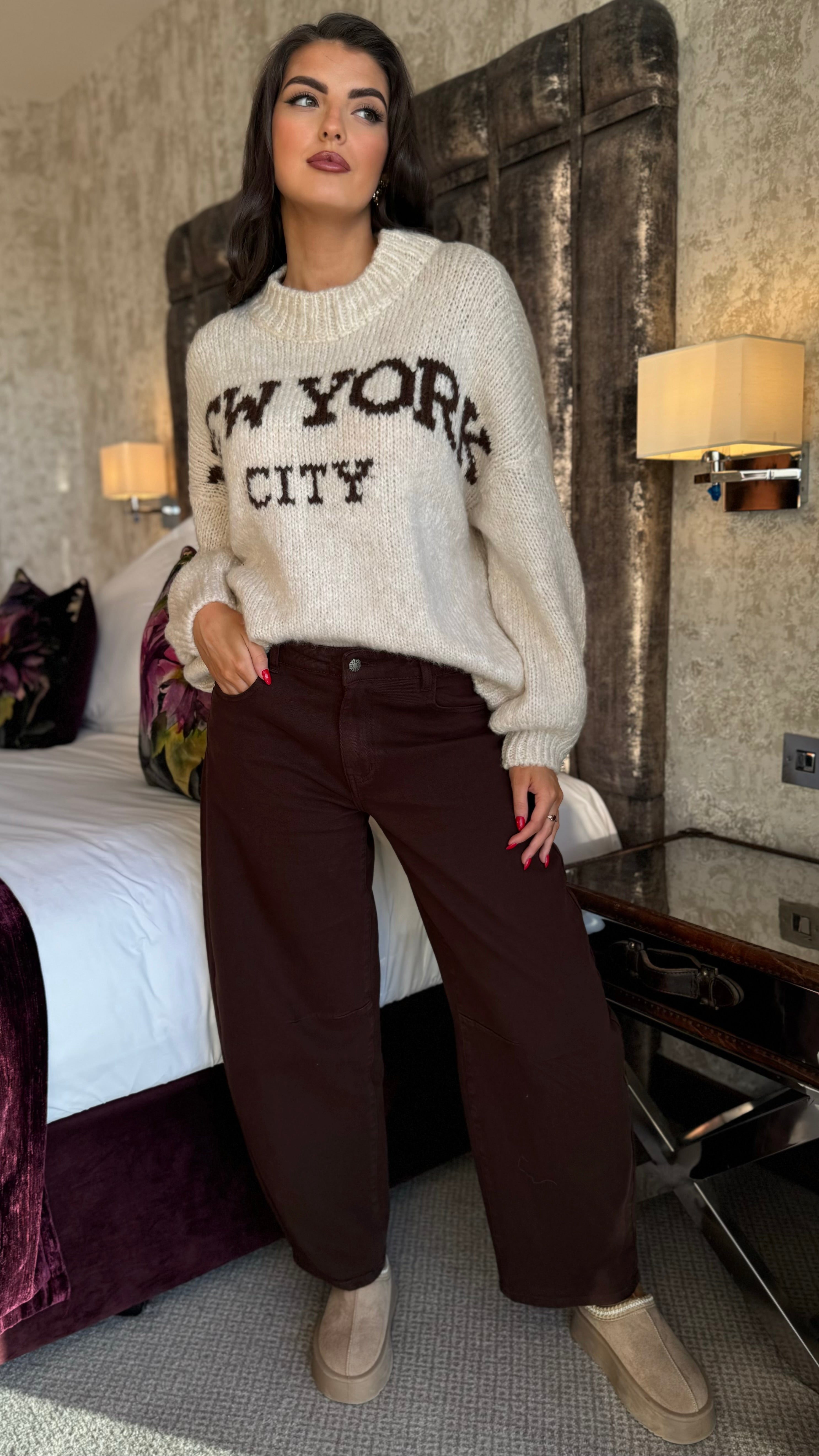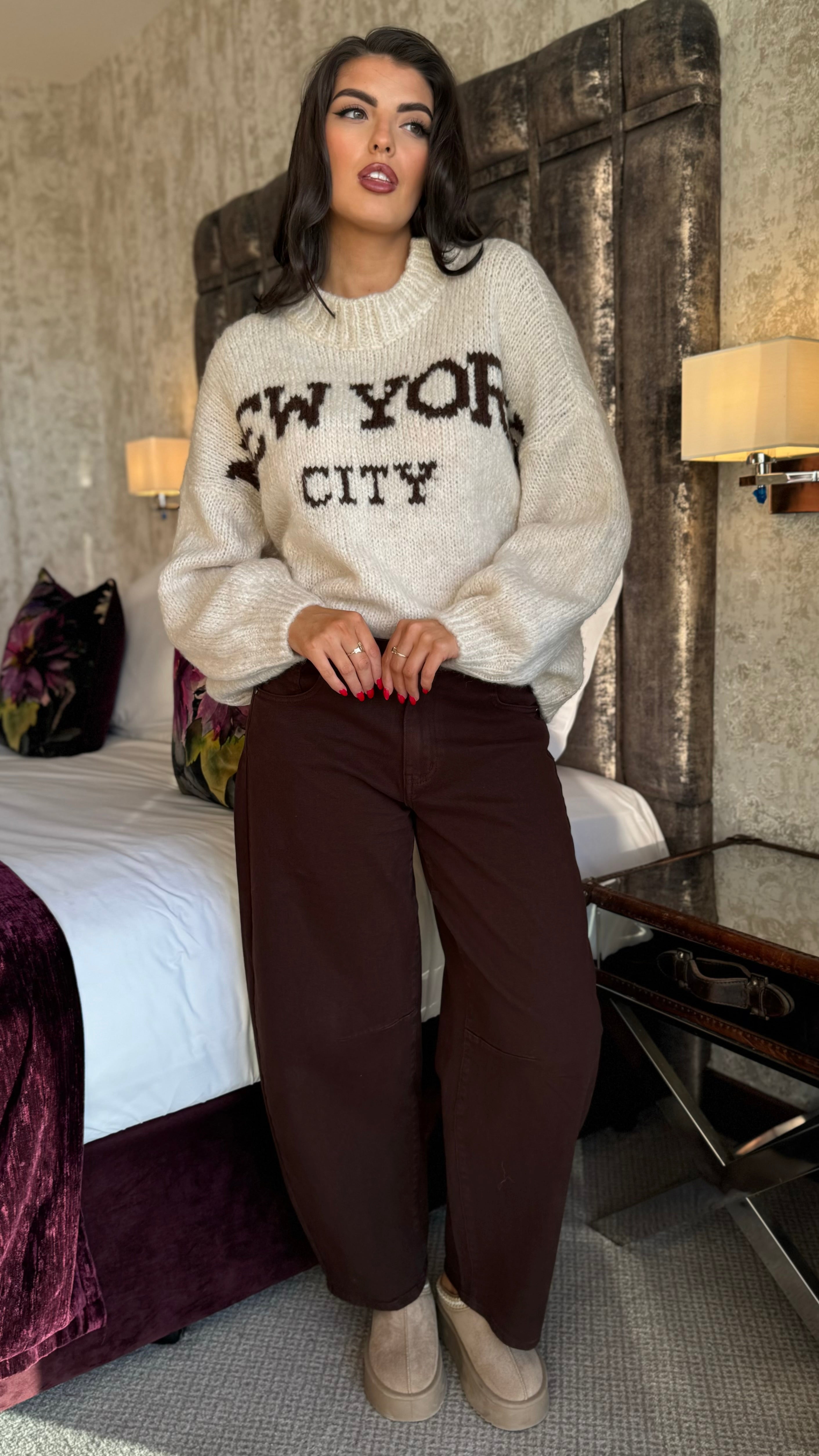 Wrap yourself in effortless style with the Minette 'New York' Beige Slogan Jumper. This cosy knit features a classic round neckline and long sleeves, crafted from soft, touchable fabric that feels as good as it looks. The playful slogan adds a cheeky dose of personality to your everyday wardrobe. Perfect for layering or wearing solo, it's your new go-to piece for comfort without compromising on trend.