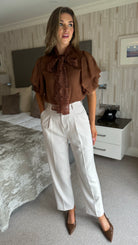 Myra Brown Lace Collar Detail Short Sleeve Shirt