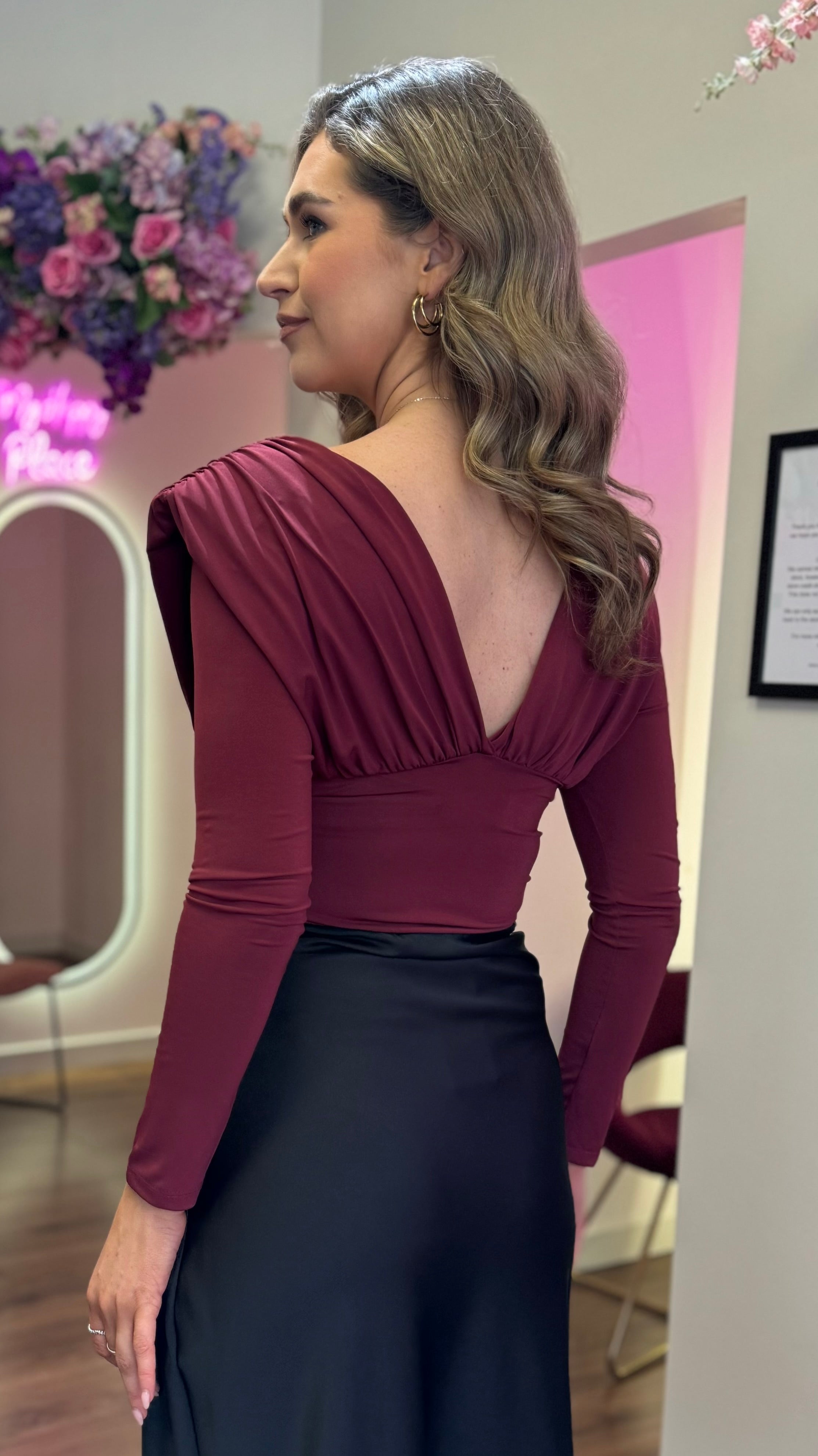 Taryn Burgundy Ruched Long Sleeve Top