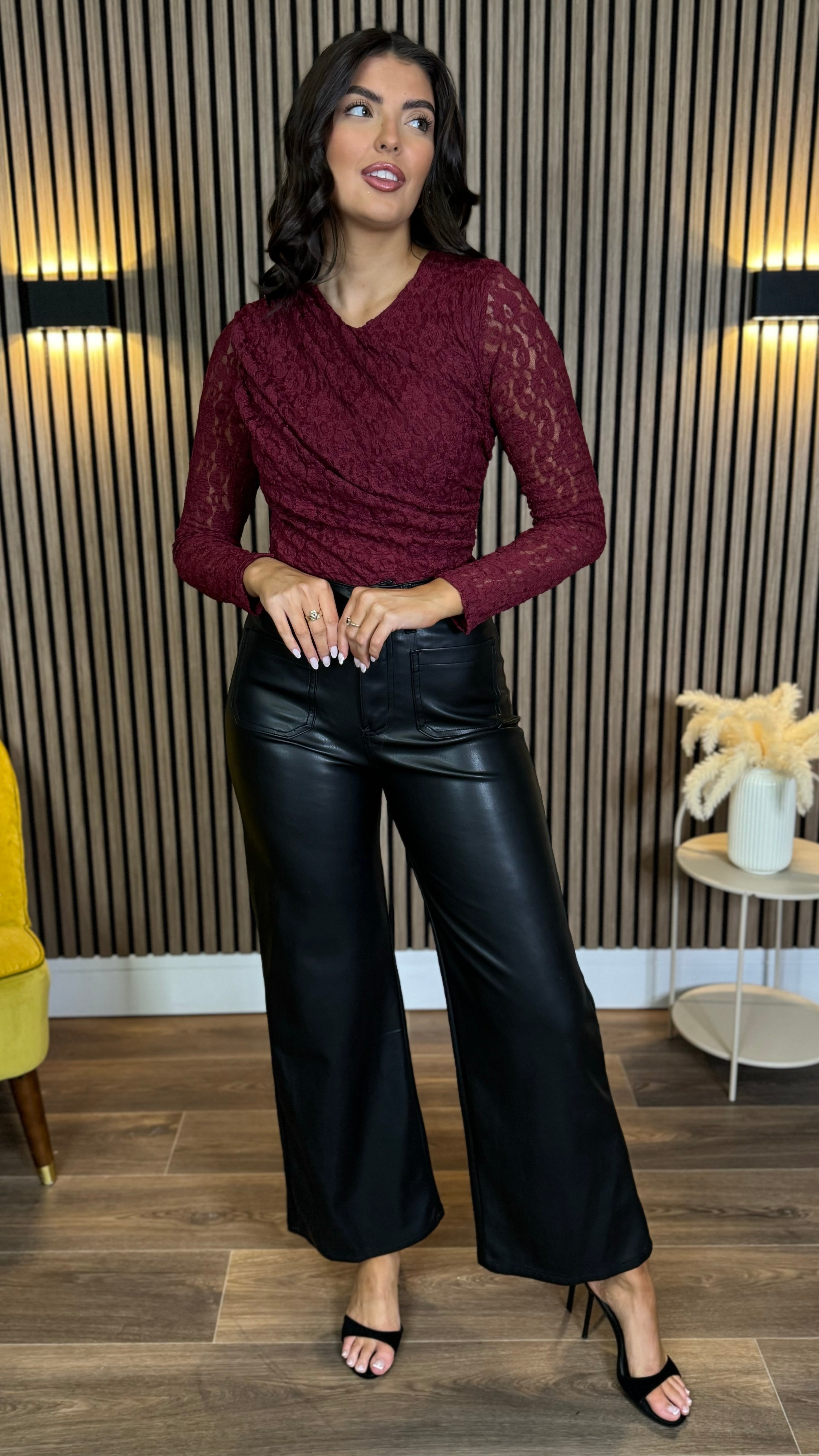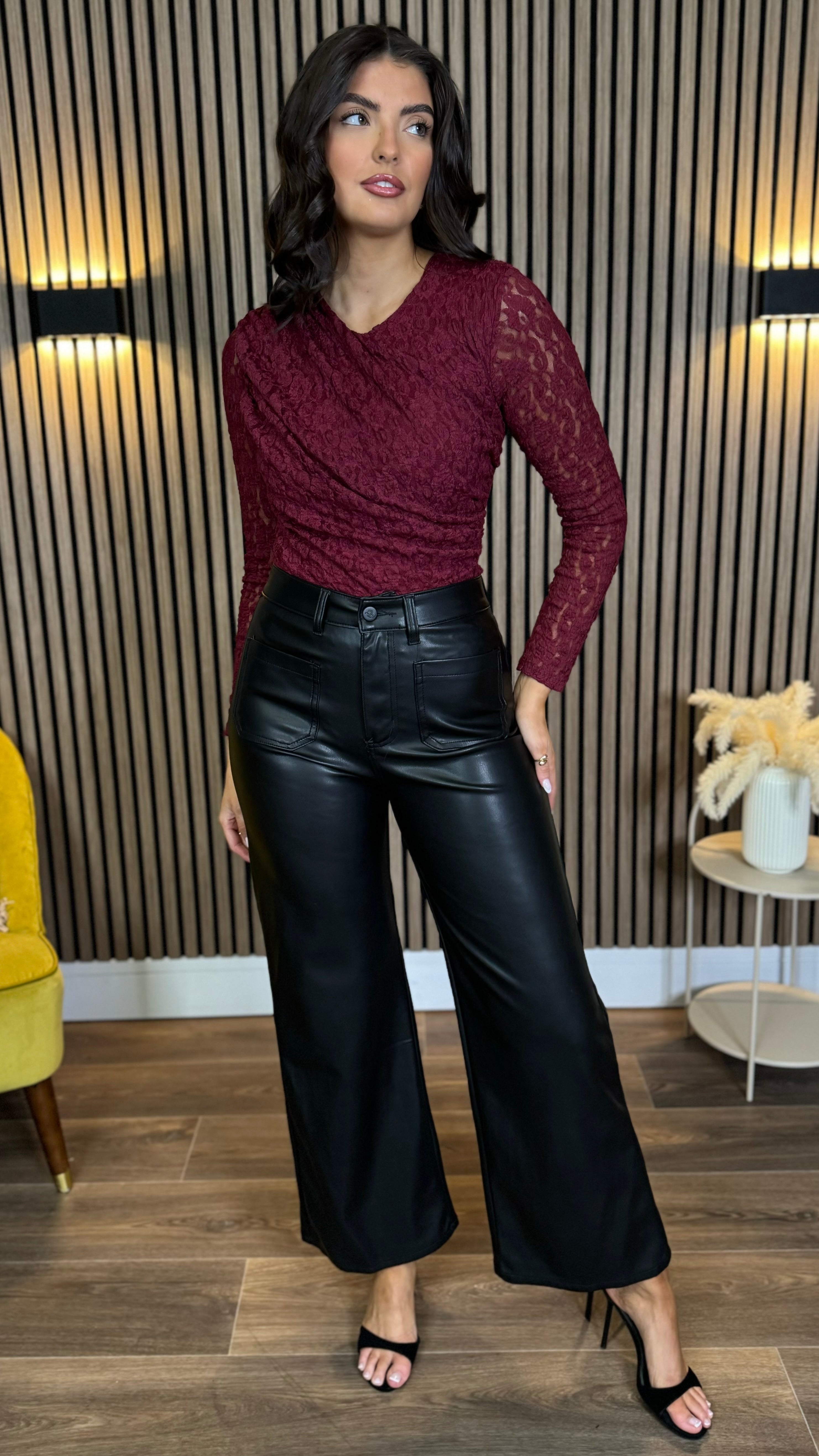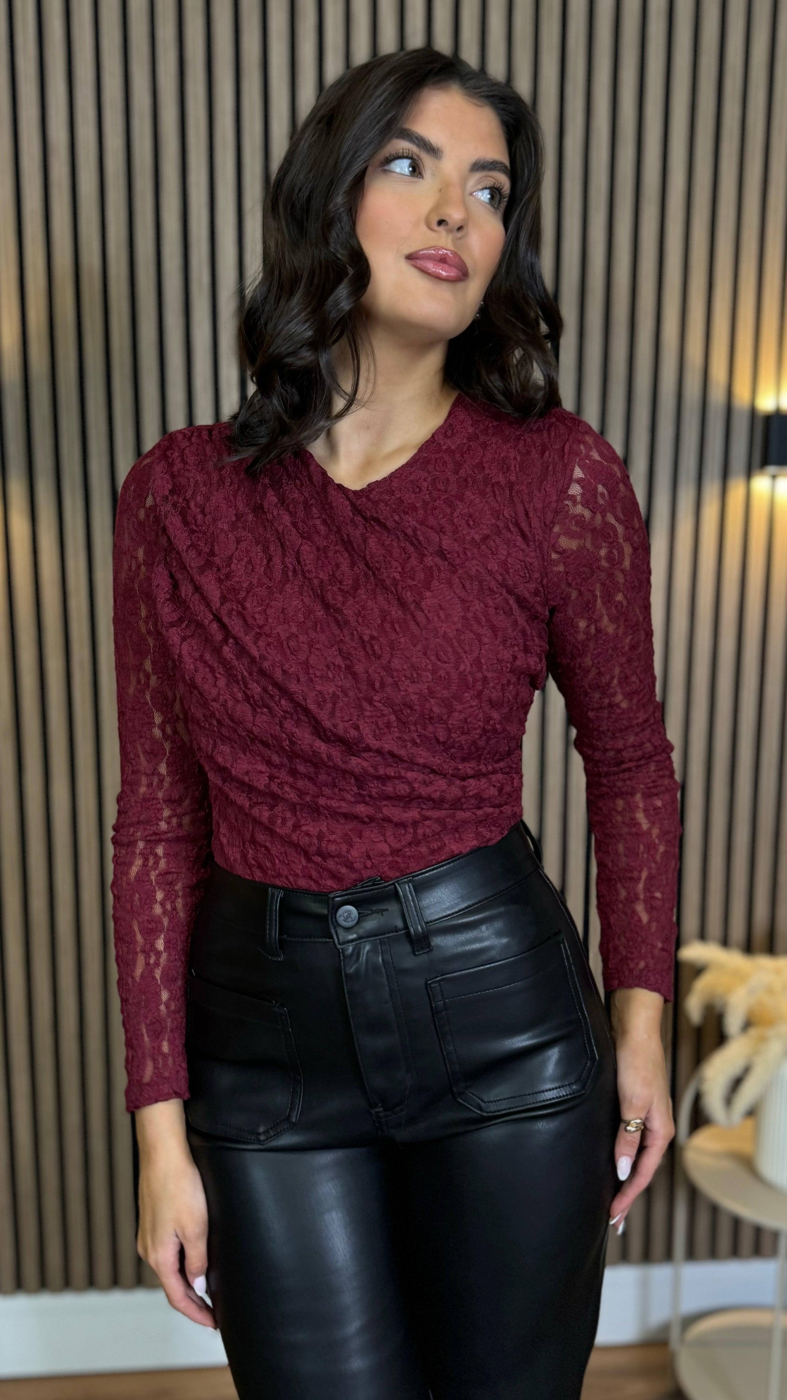 Twila Burgundy Lace Long Sleeve Bodysuit