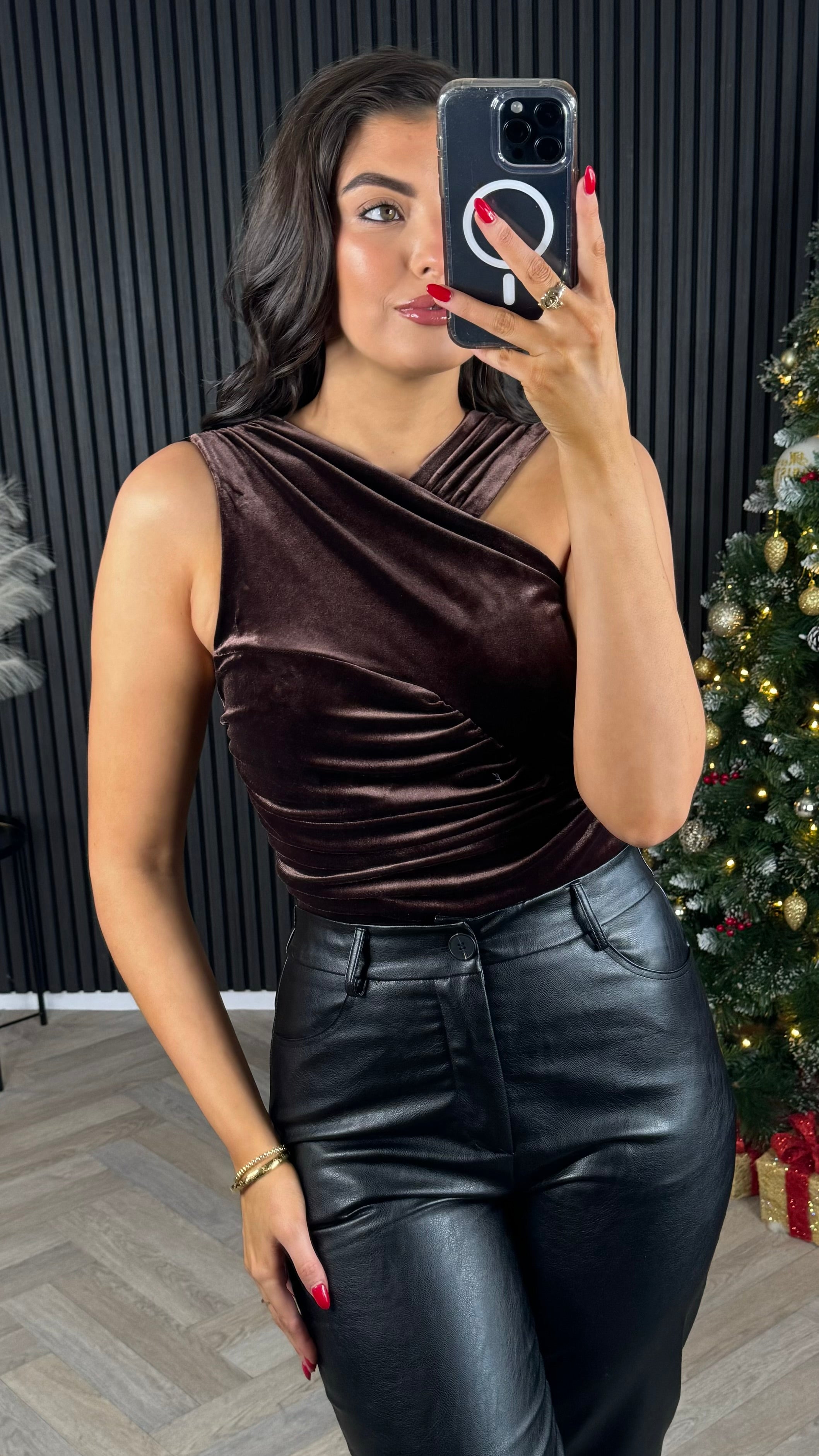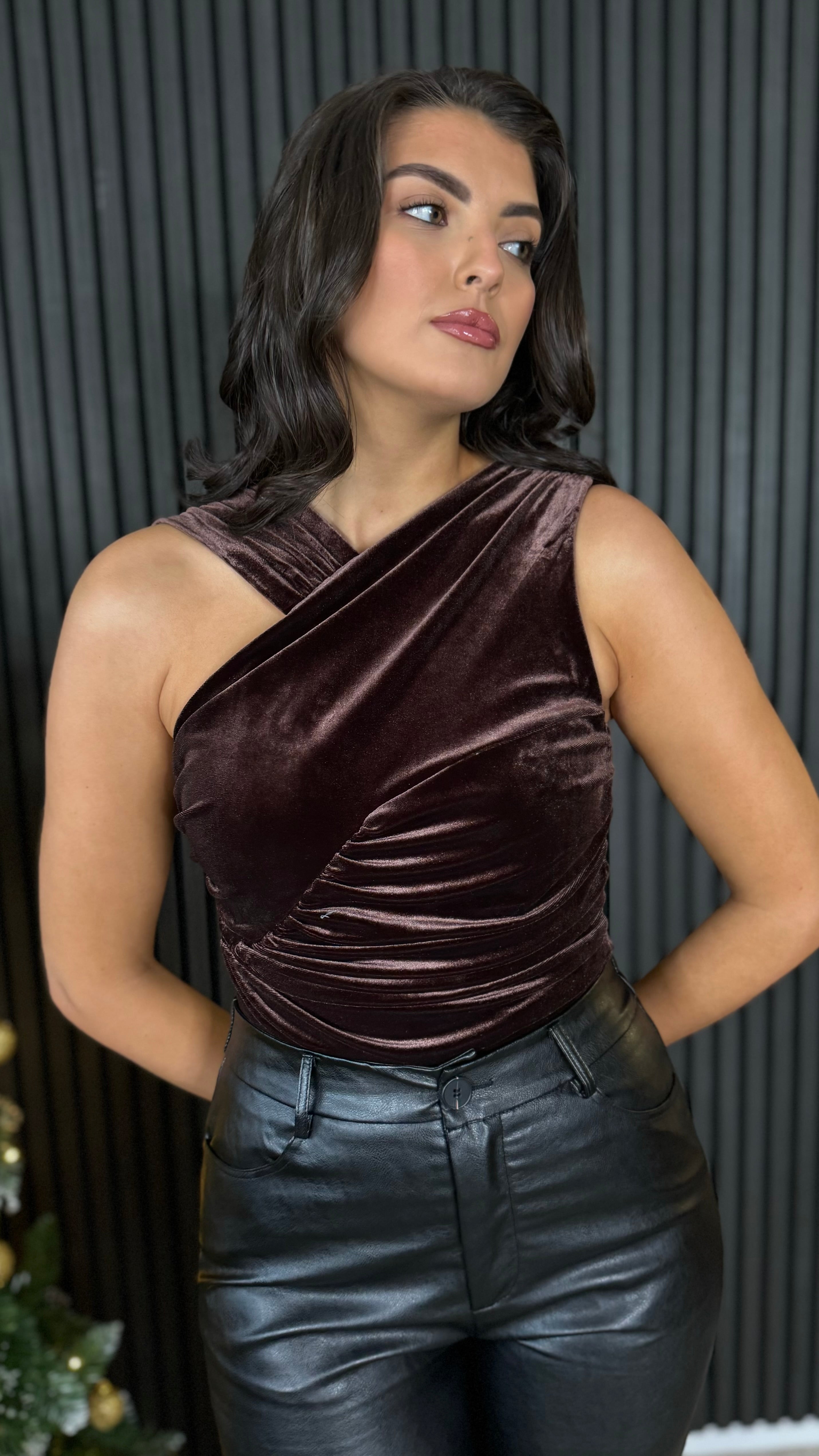 Wanda Brown Velvet Asymmetric Detail Bodysuit