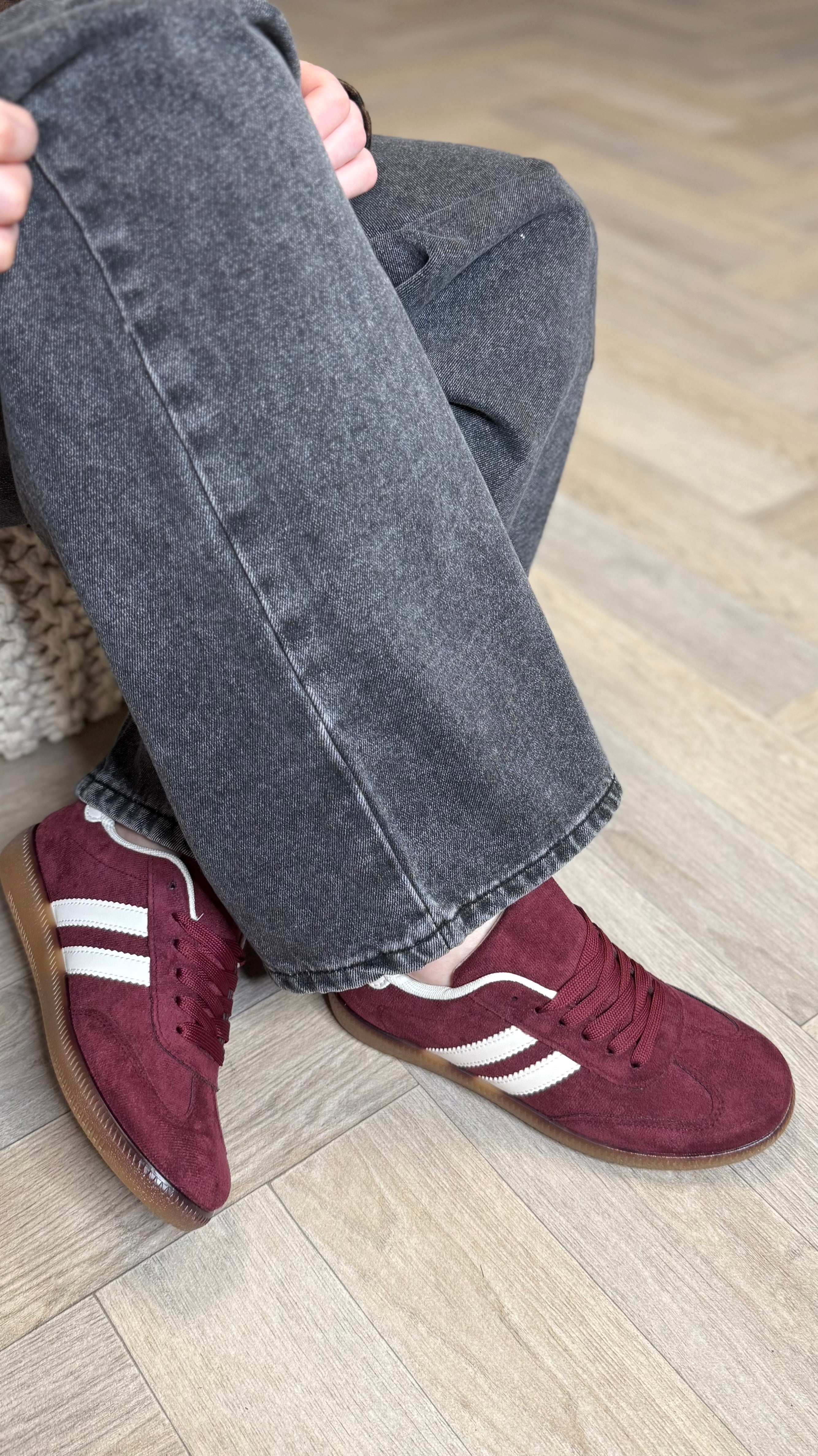 Step into style with the Dannie Burgundy & White Stripe Detail Trainers—where comfort meets personality. 👟✨ These eye-catching trainers feature a striking stripe detail that adds instant flair to your everyday look. Crafted with a soft suede-look upper, they deliver that luxe feel without the fuss, while the durable rubber sole keeps you grounded through whatever the day throws your way. 💪 Perfect for those who refuse to compromise on comfort or style. 🎯