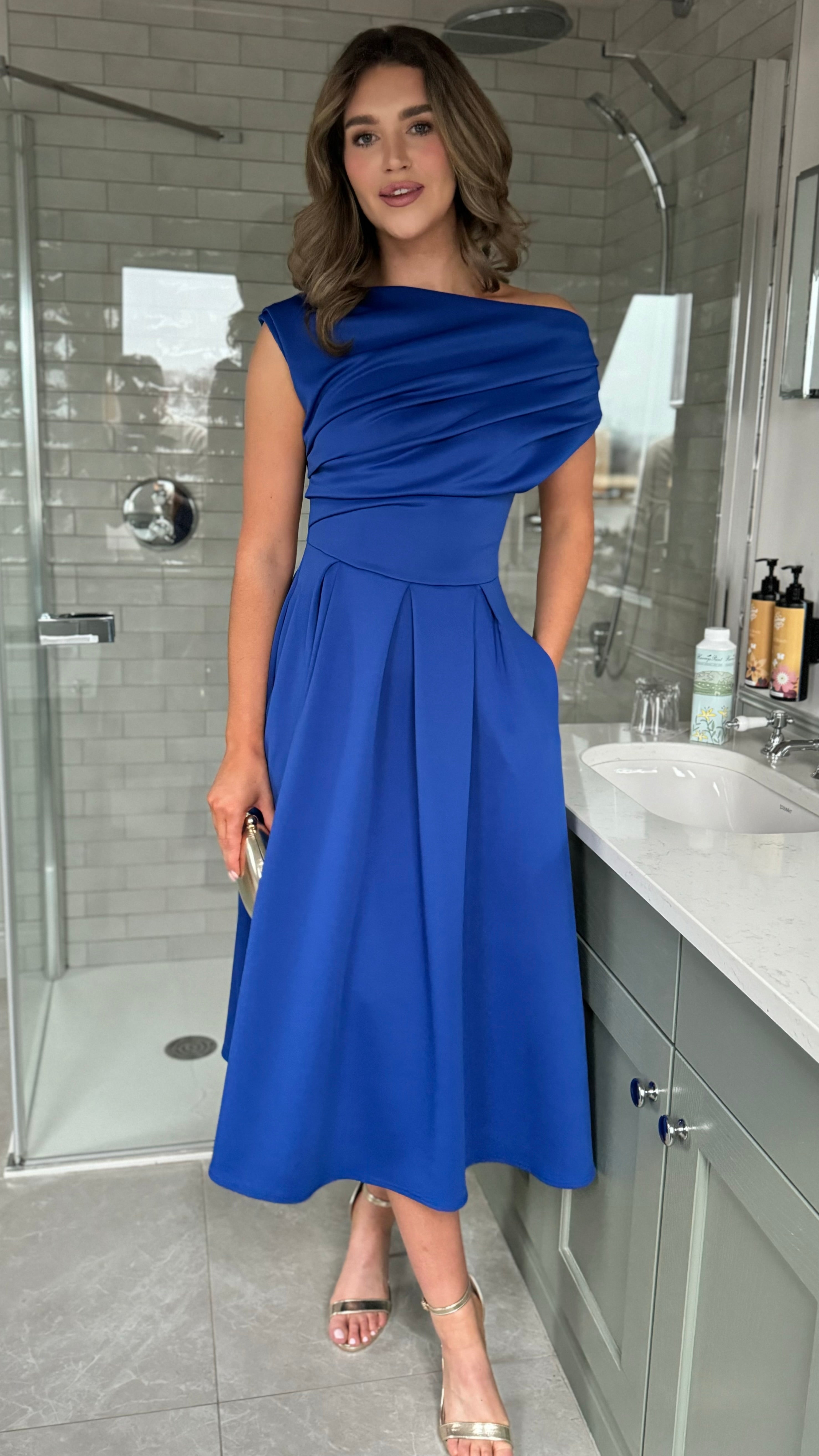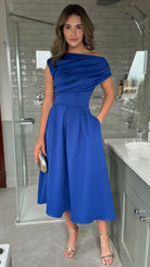 Turn heads with the Jezebel Blue Asymmetric Neck Skater Dress. Featuring a fun asymmetric neckline and a flattering skater skirt, it brings playful charm to any occasion. The concealed zip fastening keeps your silhouette sleek, while handy pockets add a touch of practicality to this flirty, vibrant dress. Perfect for dancing the night away or a spontaneous adventure!