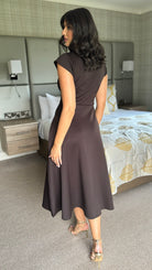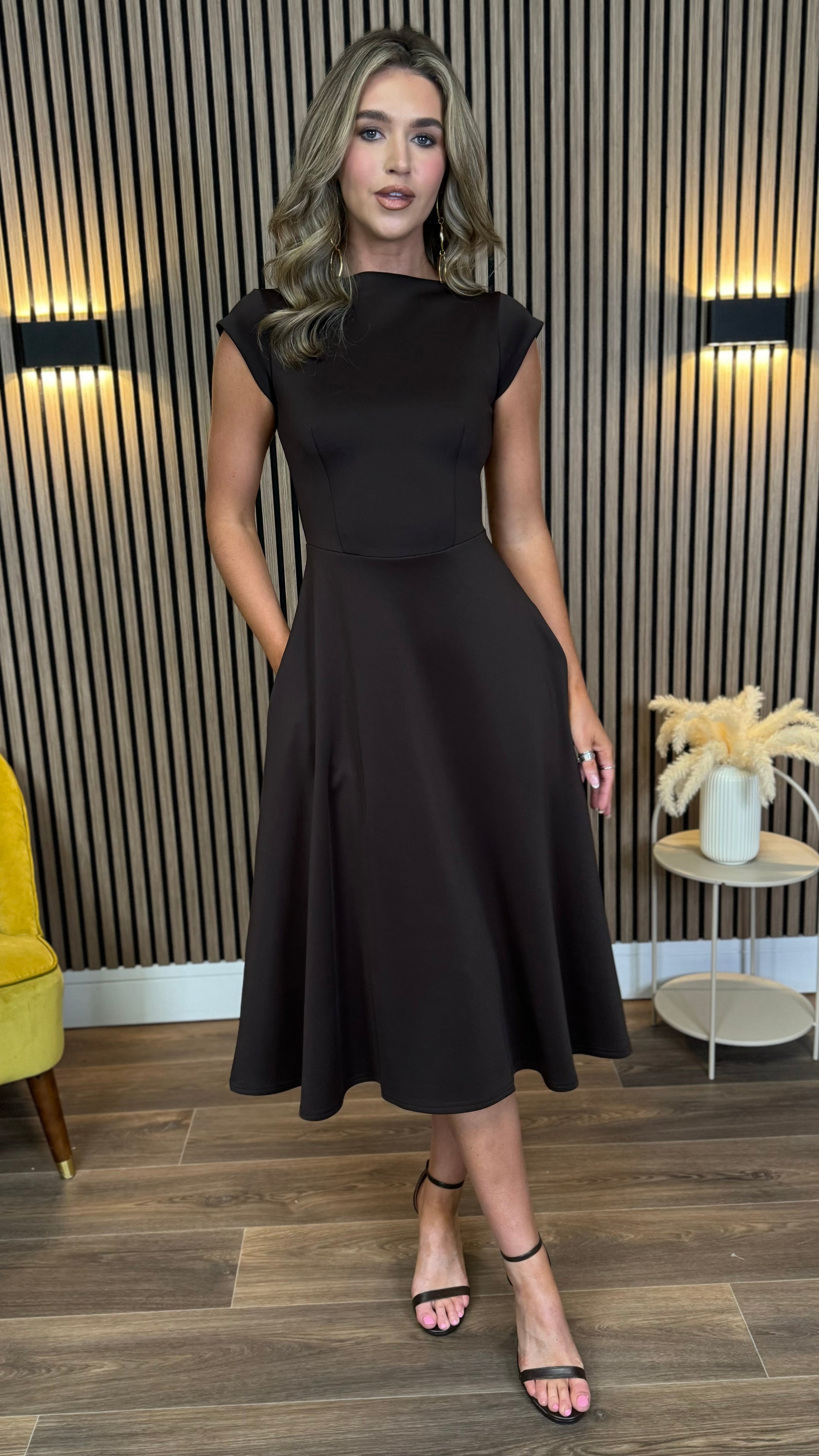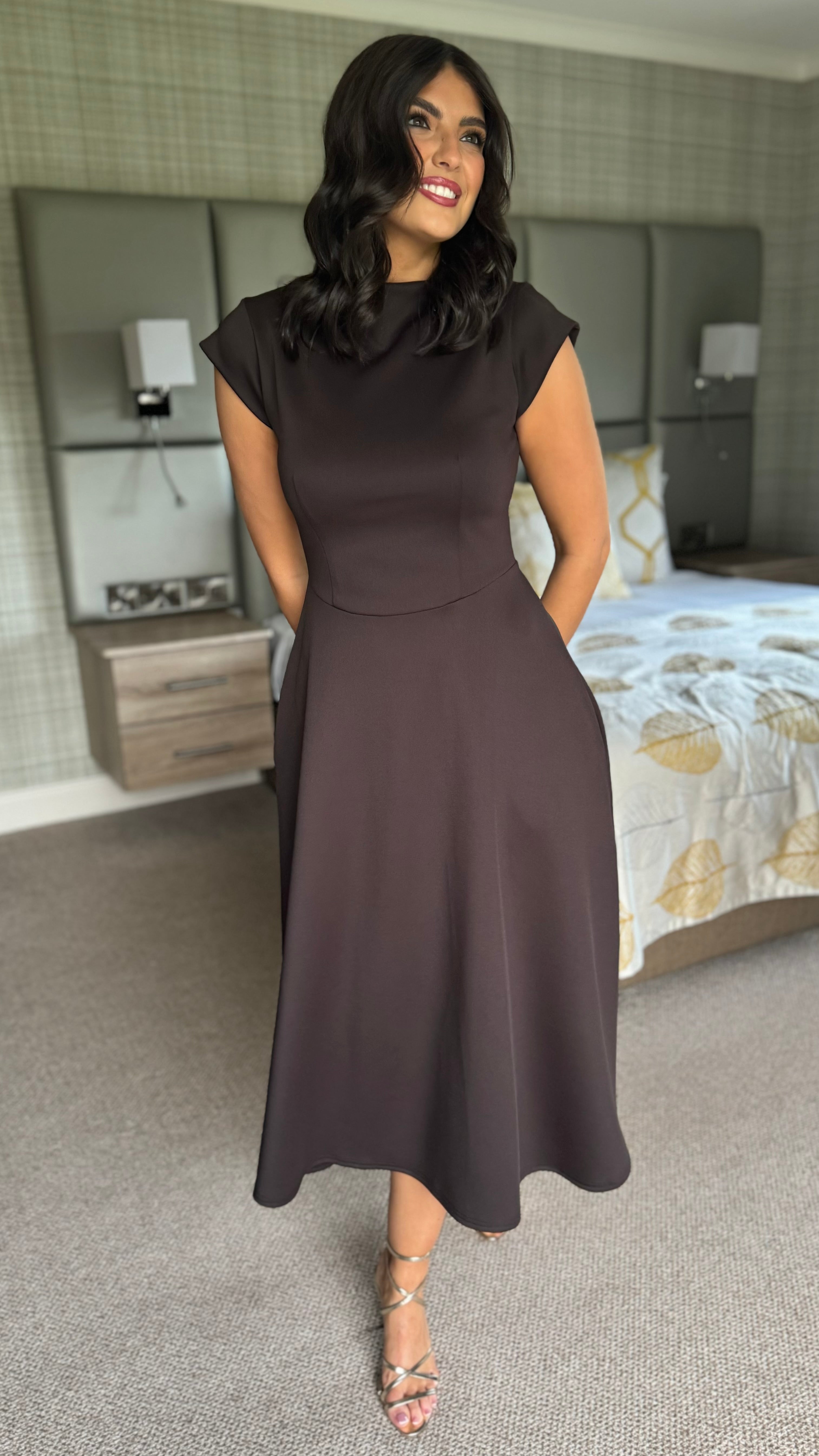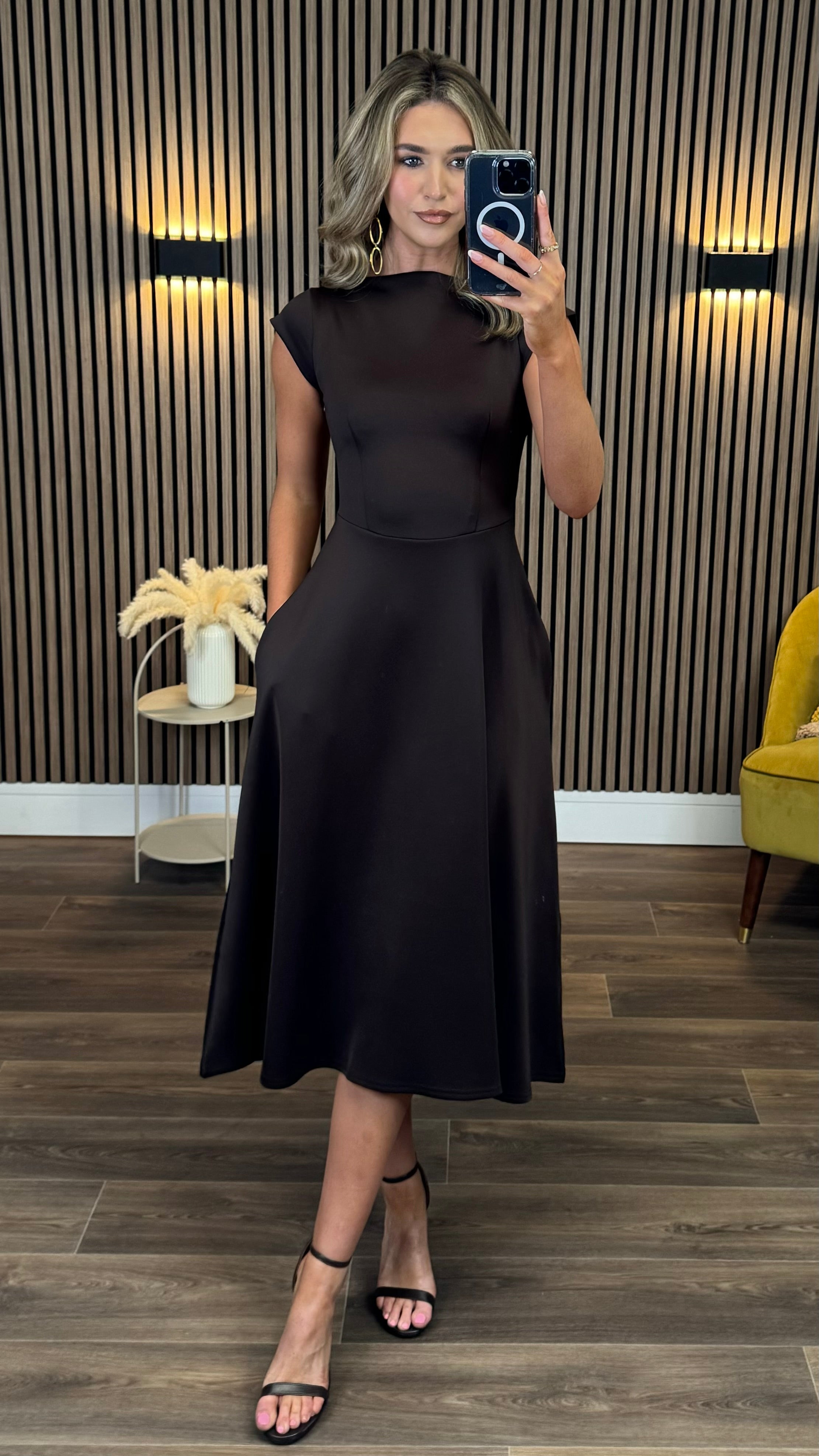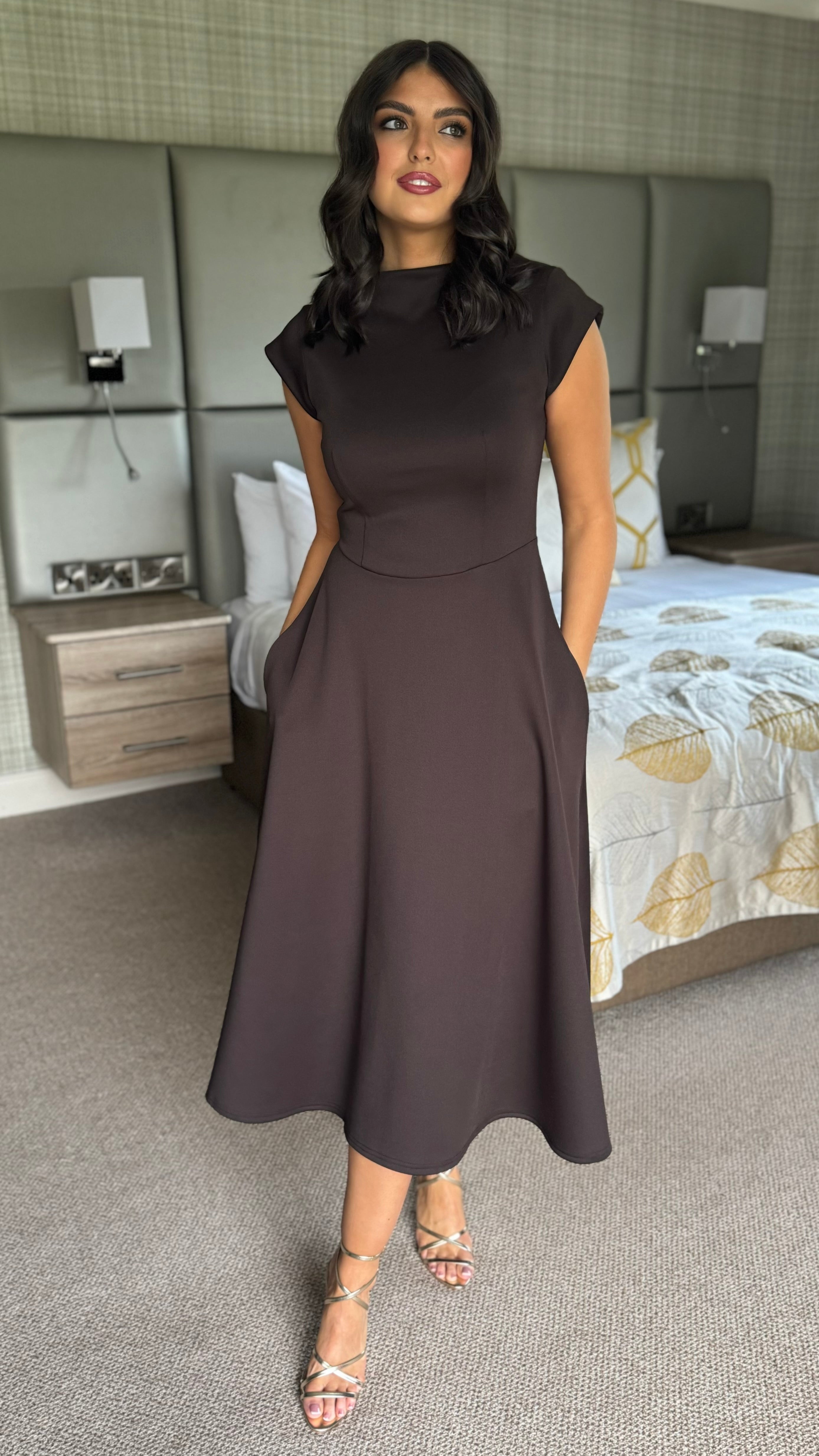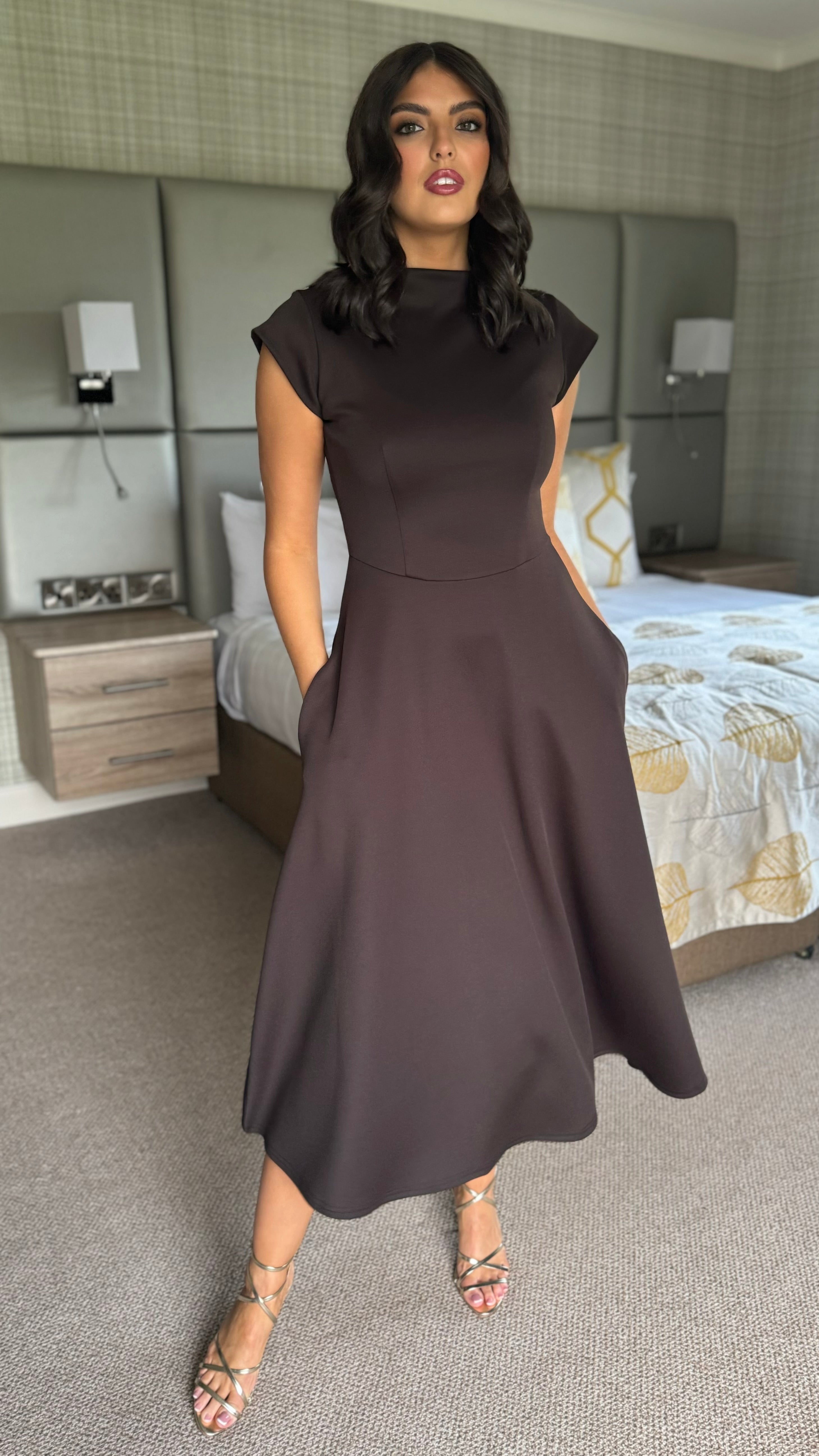 Lexi Chocolate Brown Cap Sleeve Pocket Detail Midi Dress