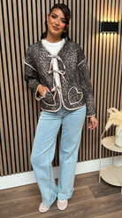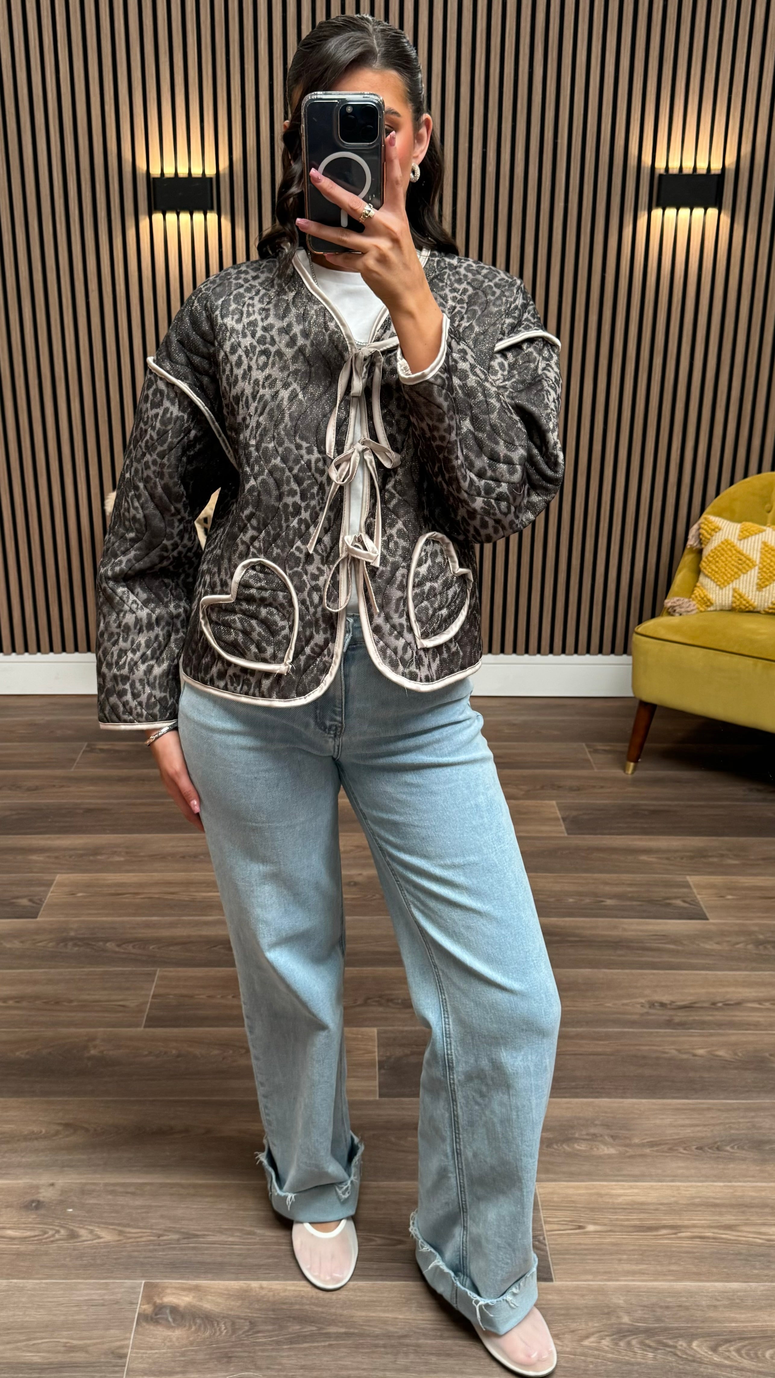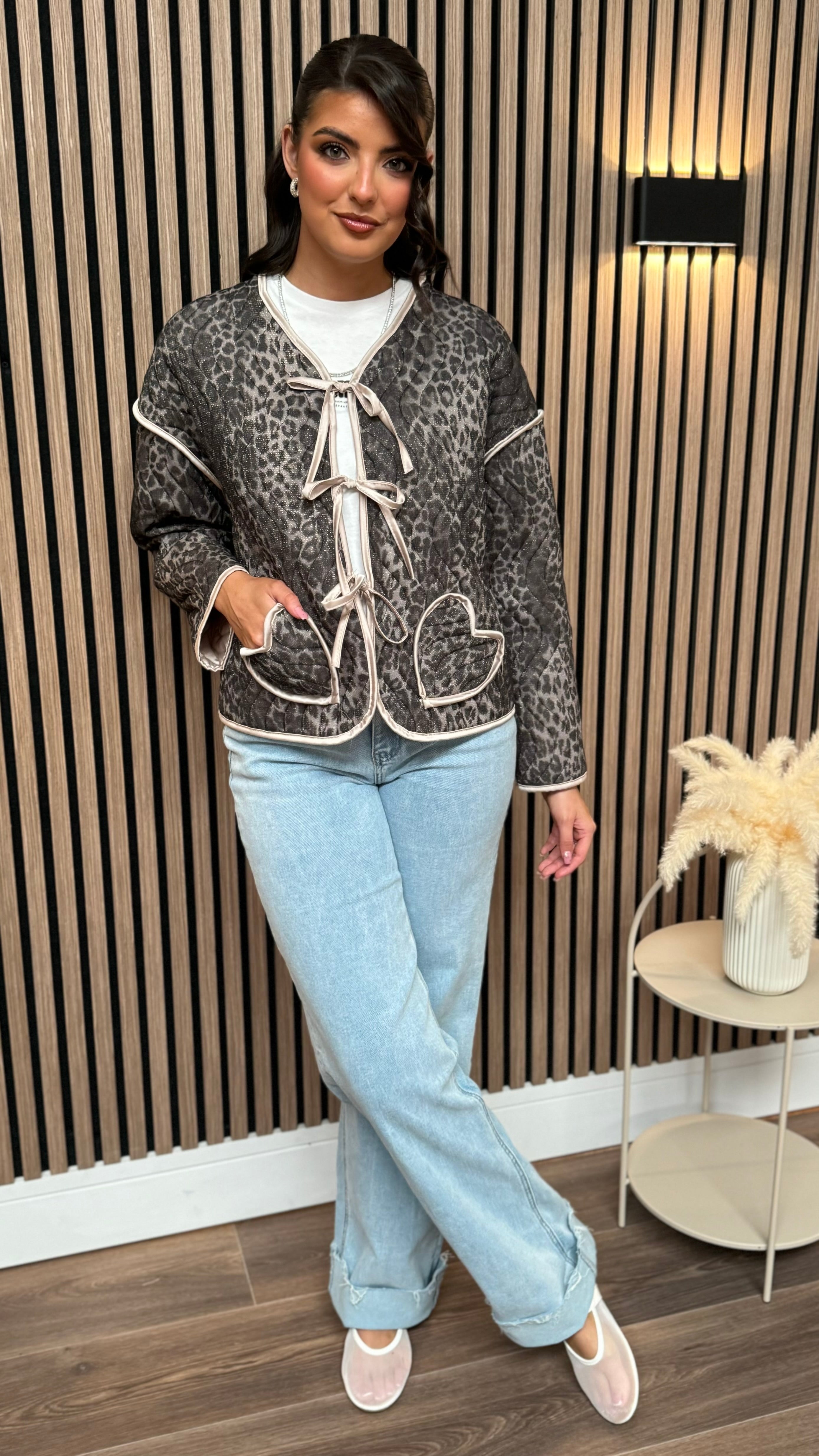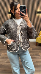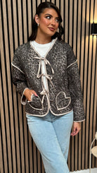 Coen Beige & Black Leopard Print Bow Detail Jacket
