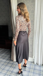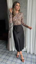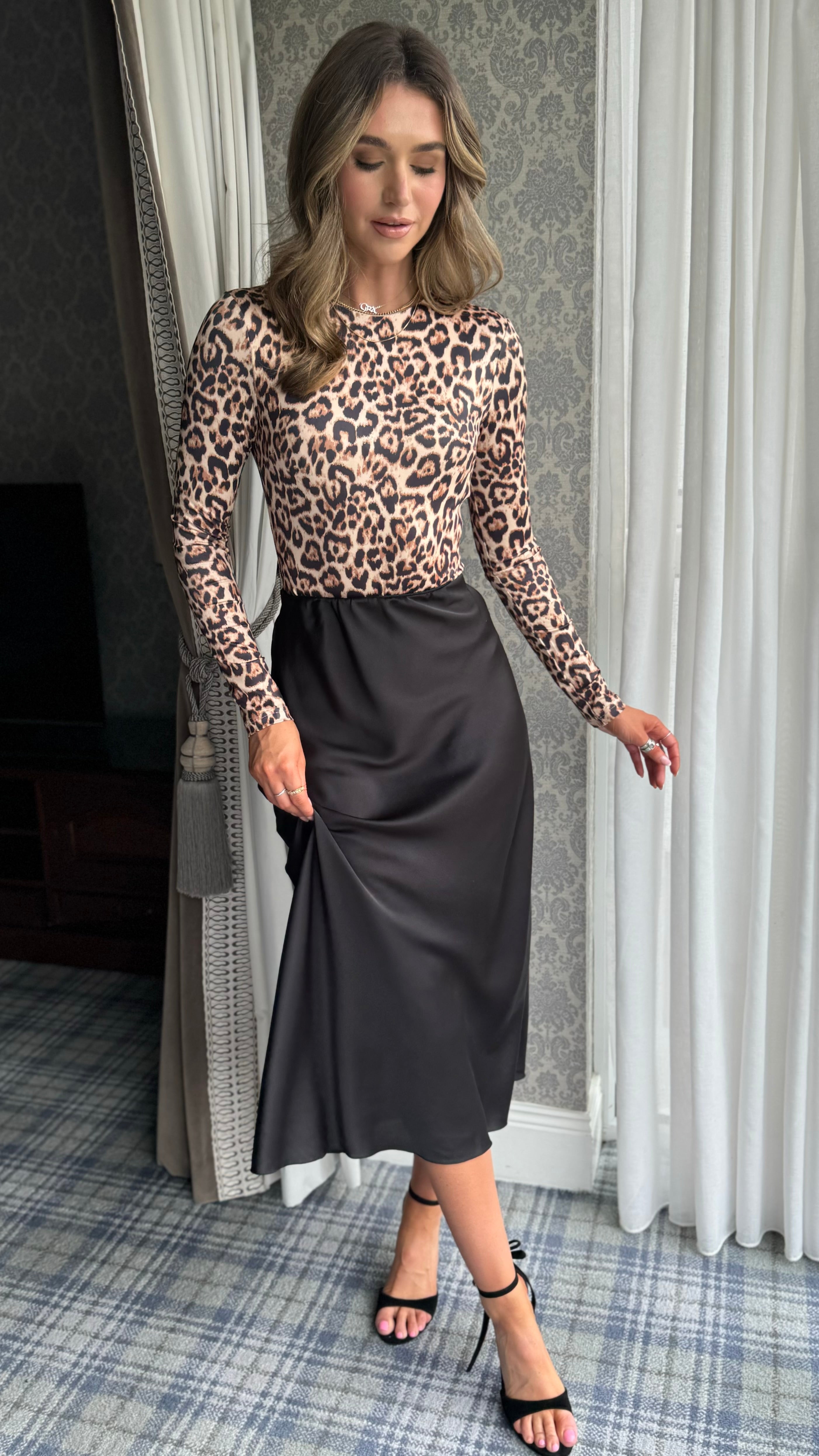 Add a wild touch to your wardrobe with the Valencia Leopard Print Long Sleeve Bodysuit. Featuring a comfy round neck and long sleeves, it’s perfect for those playful days and nights. The clever clasp fastening ensures a sleek fit, so you can strut your style with confidence and ease.