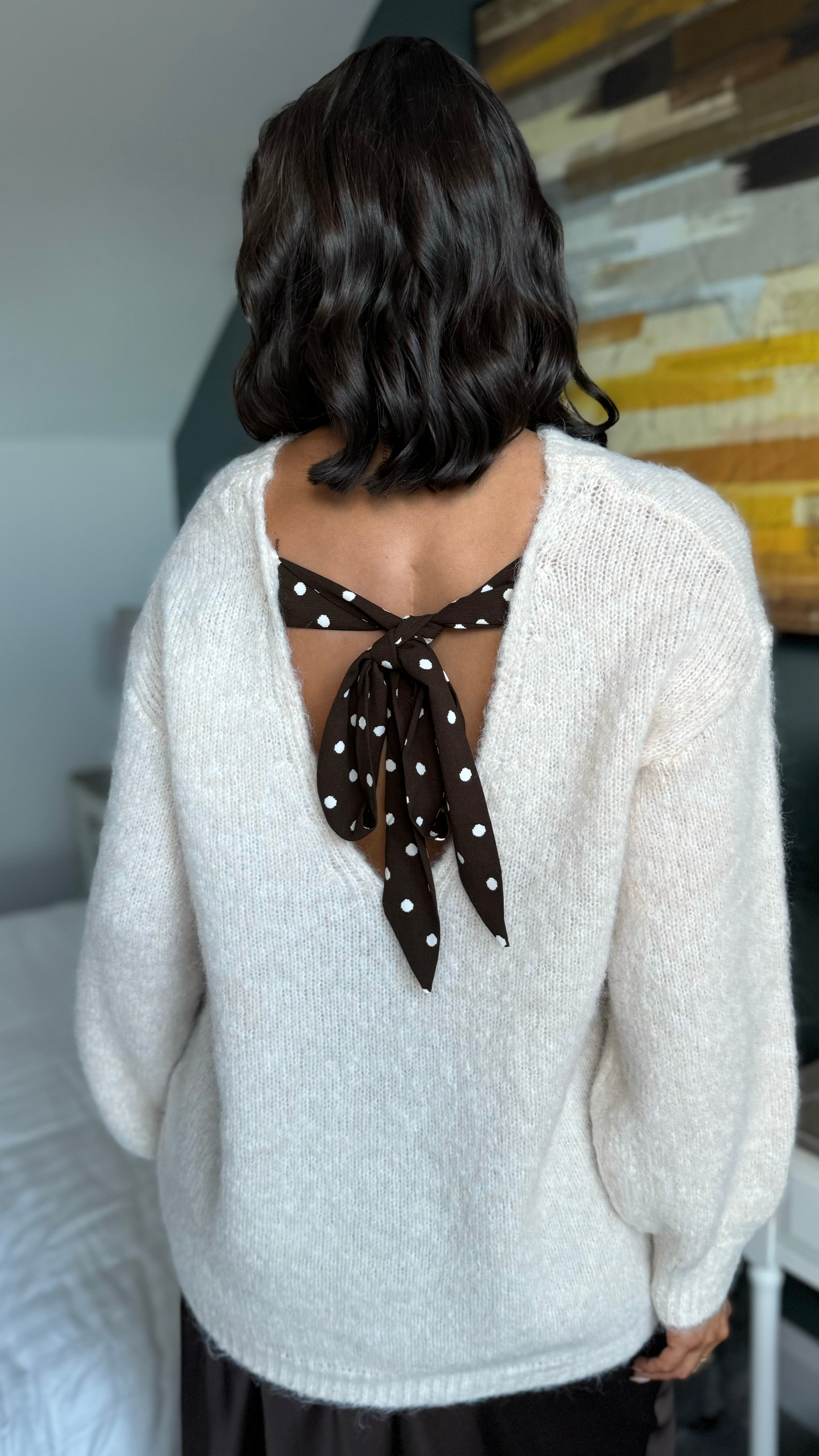 Cullen Beige Polka Dot Bow Back Jumper