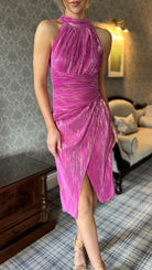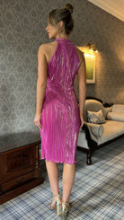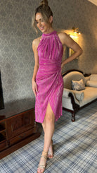 Get ready to make a statement at your next event with the Alexandra Pink Halter Neck Midi Dress! Made from luxurious fabric, this dress offers both comfort and style. The halter neckline and midi-length skirt exude elegance and grace. Complete your look with gold heels and statement earrings for a touch of glamour. 💙
