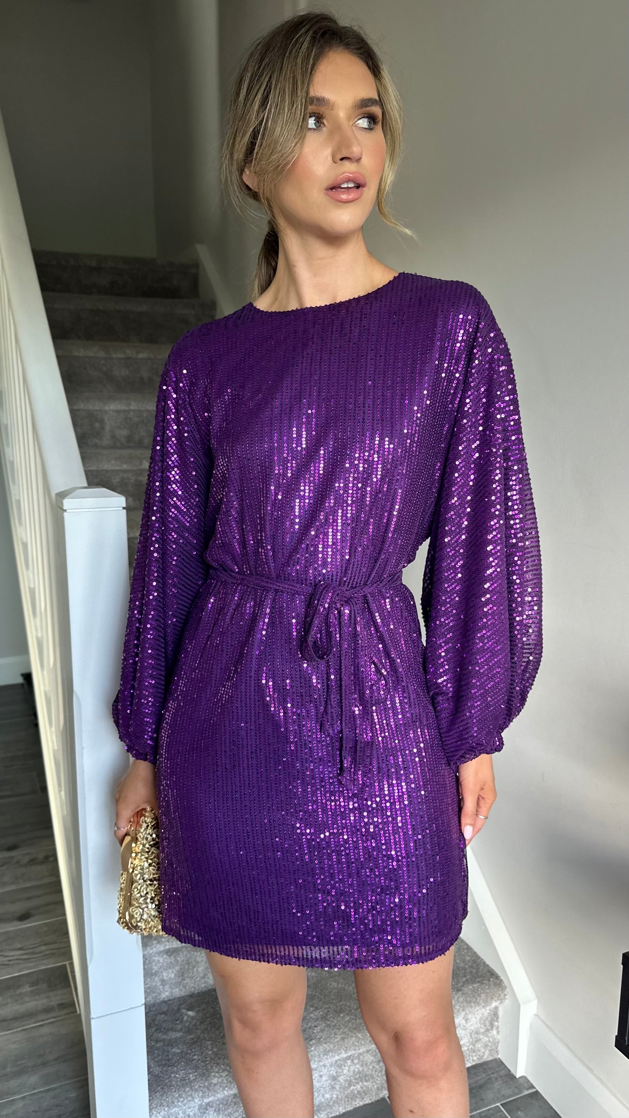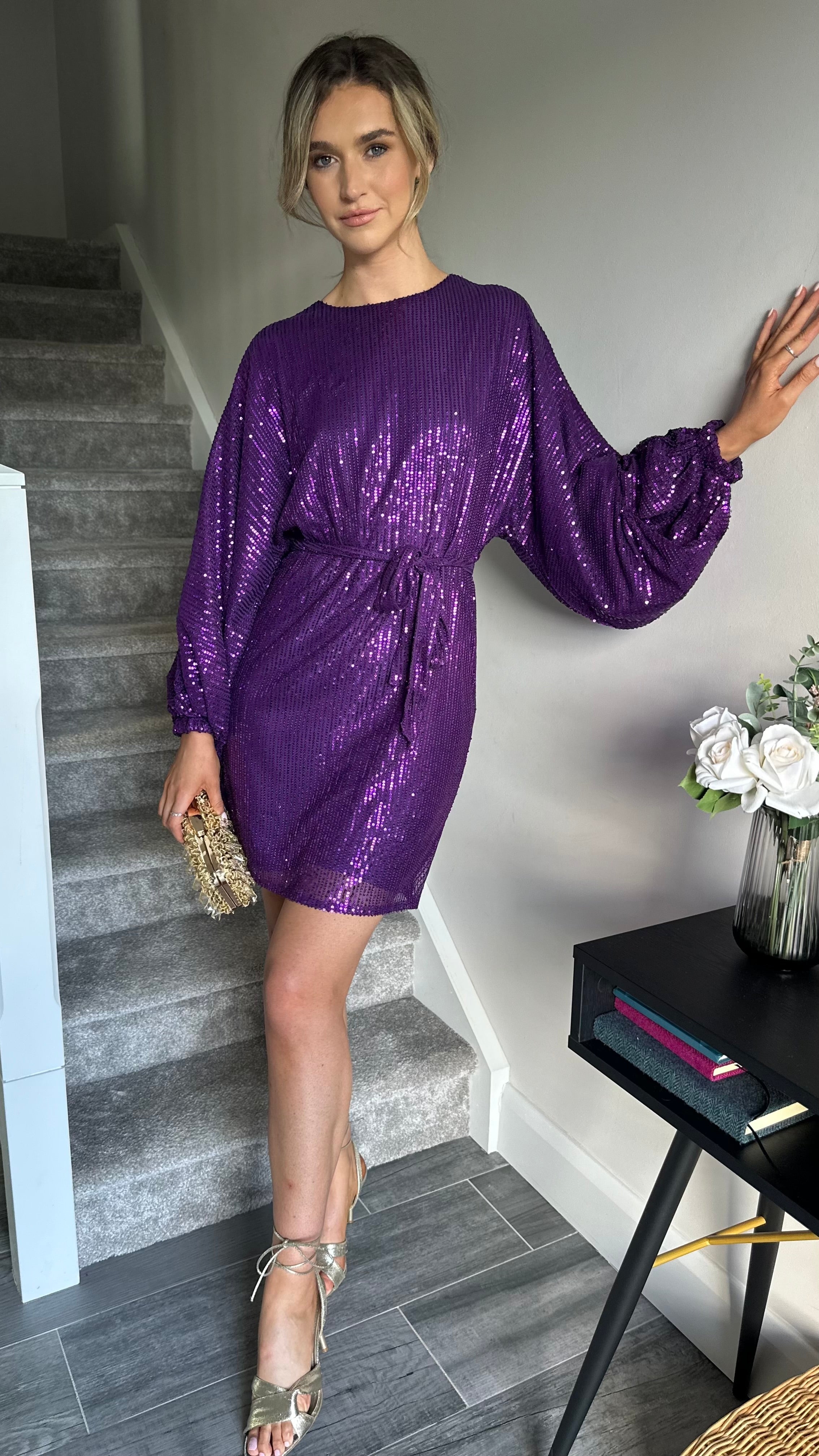 Alyona Purple Sequin Wide Sleeve Mini Dress