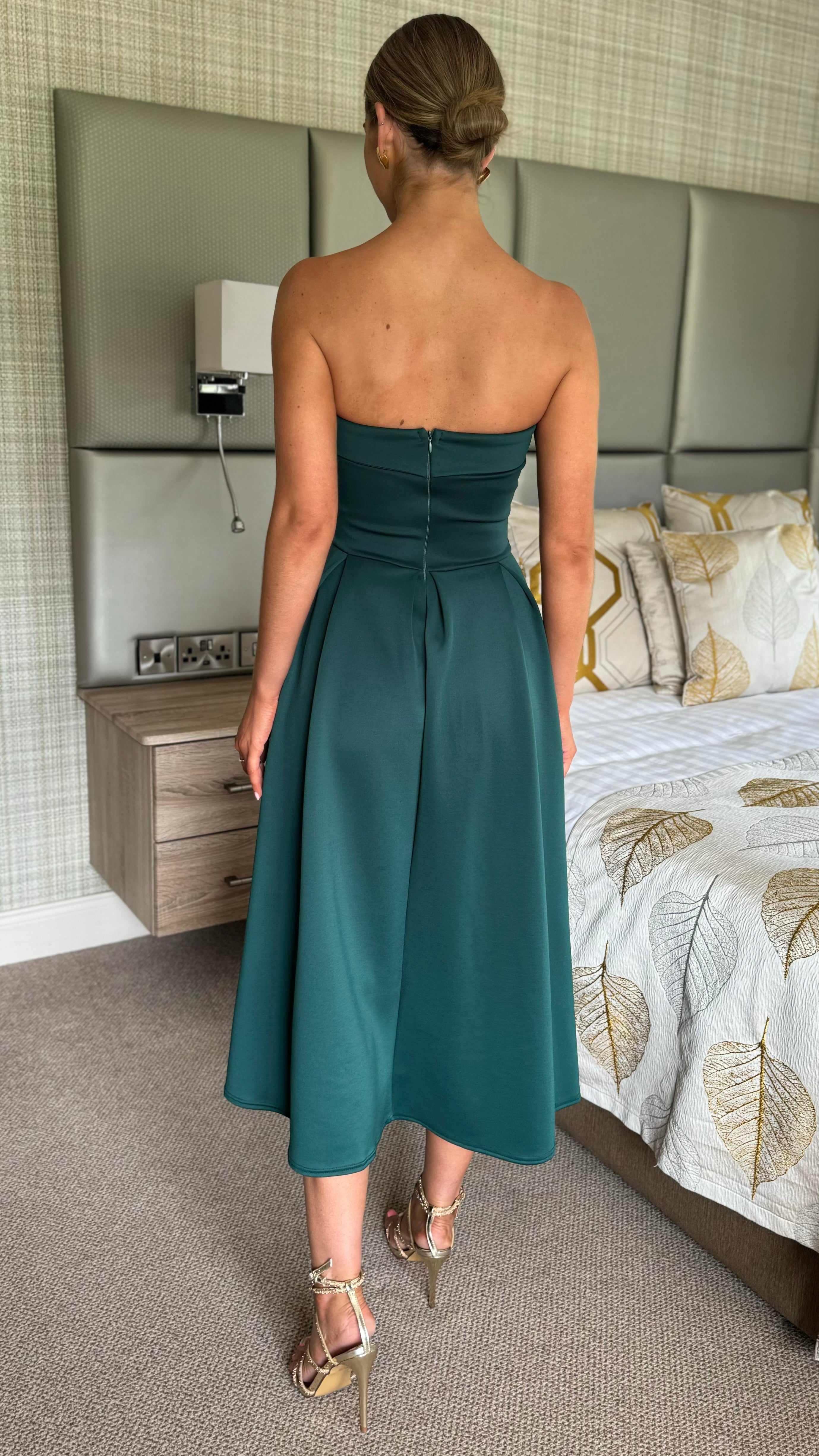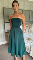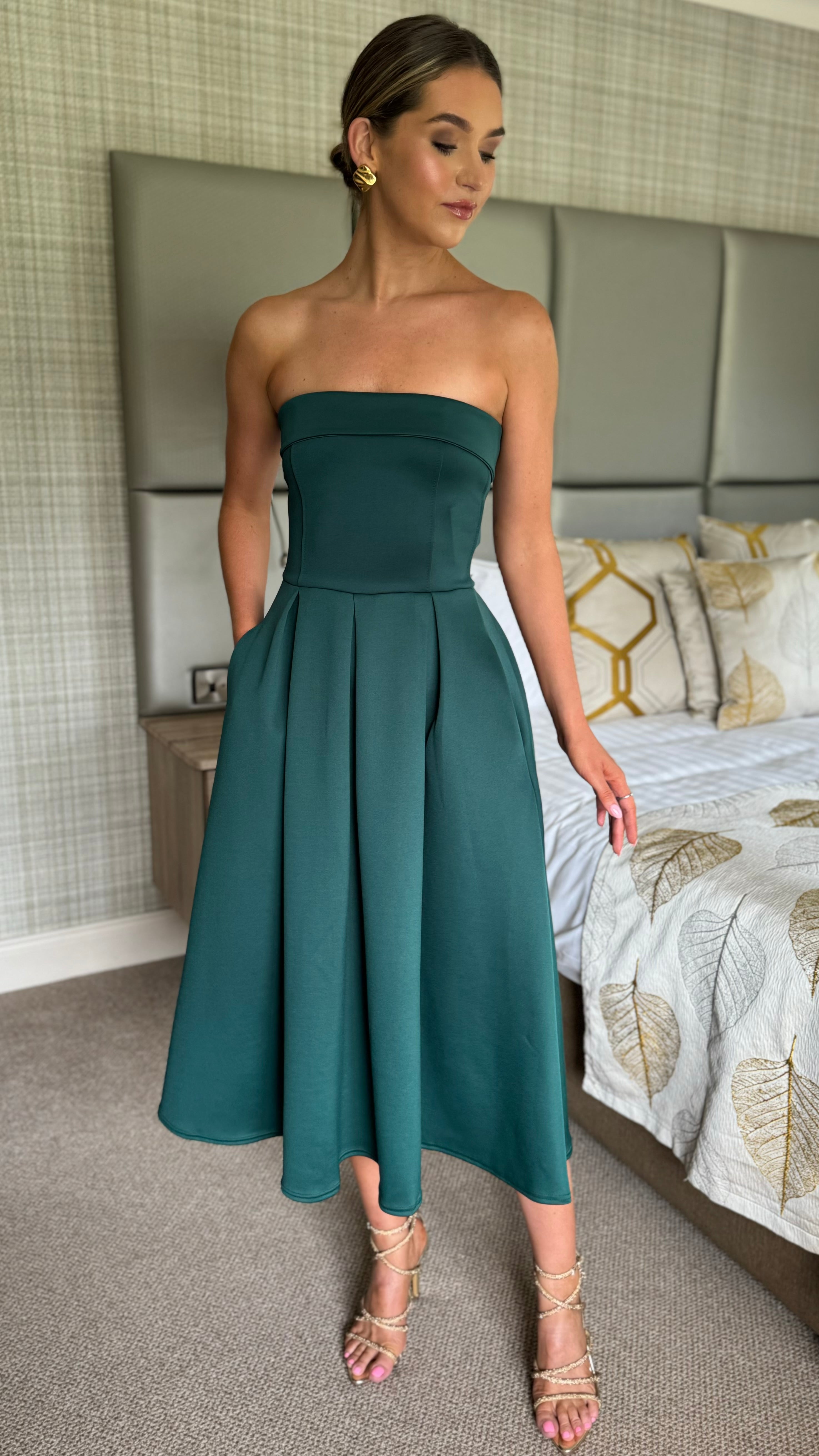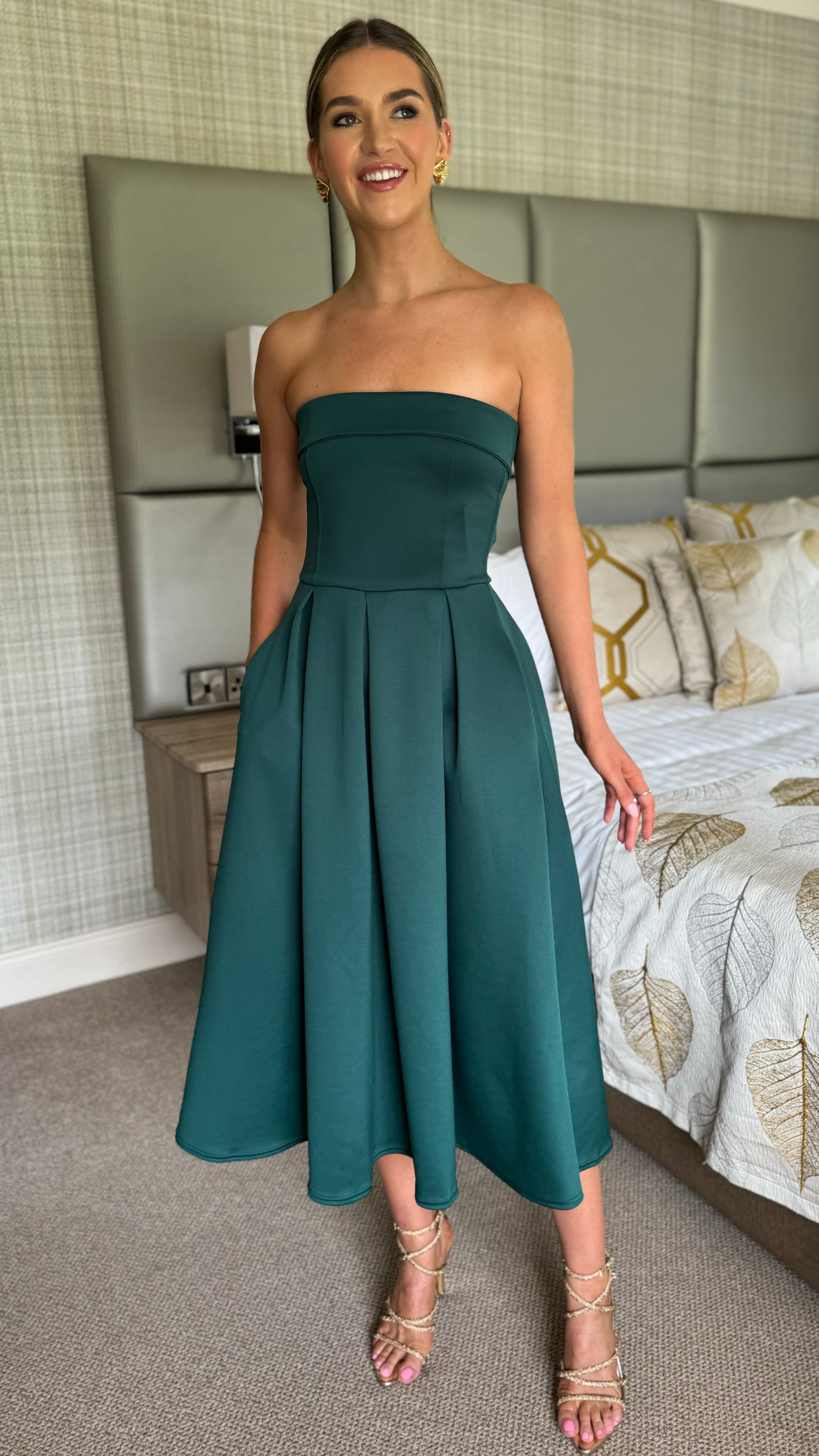 Ayda Emerald Green Strapless Bandeau Midi Dress