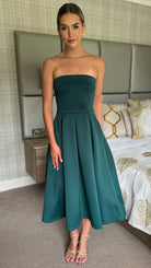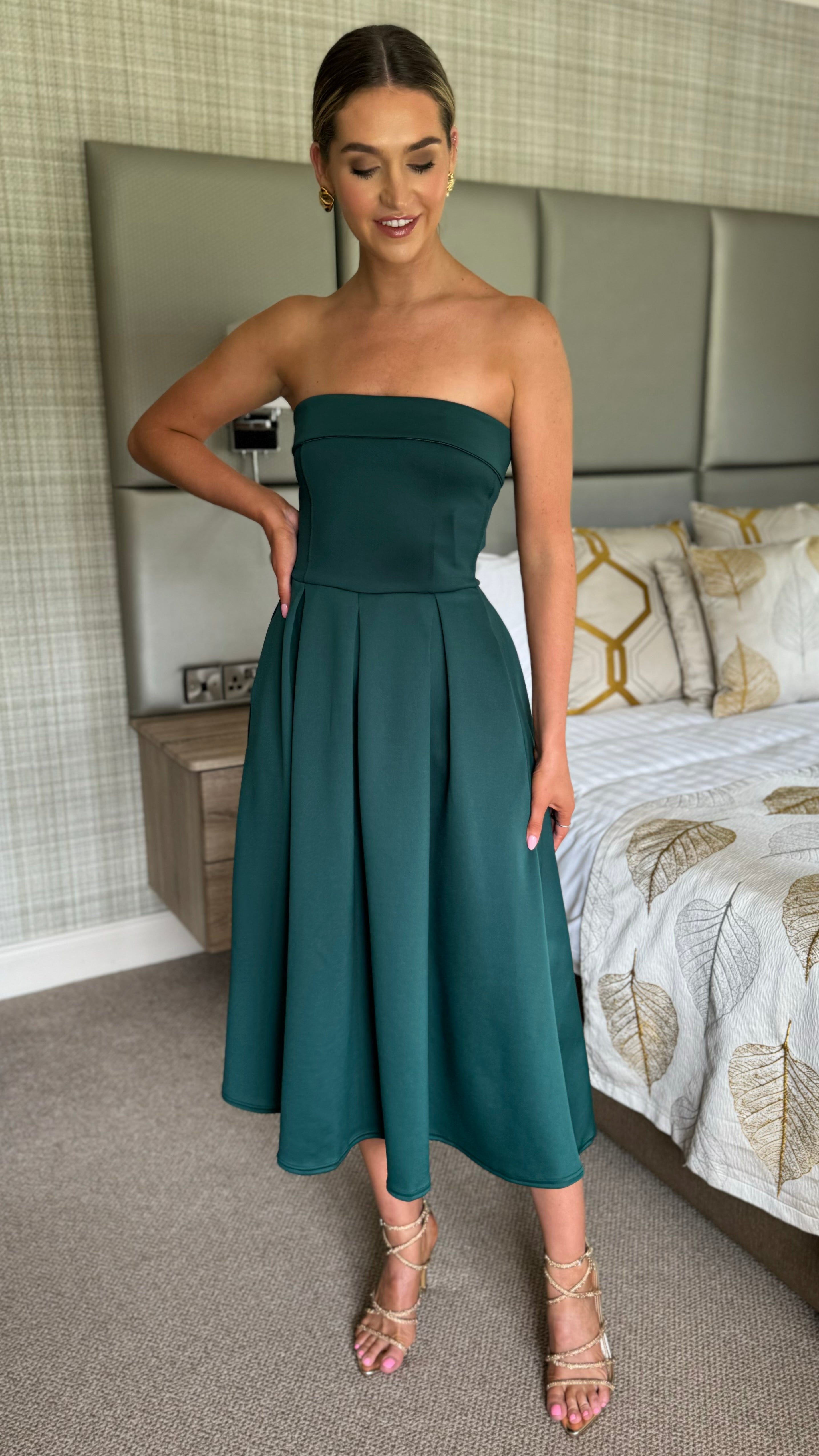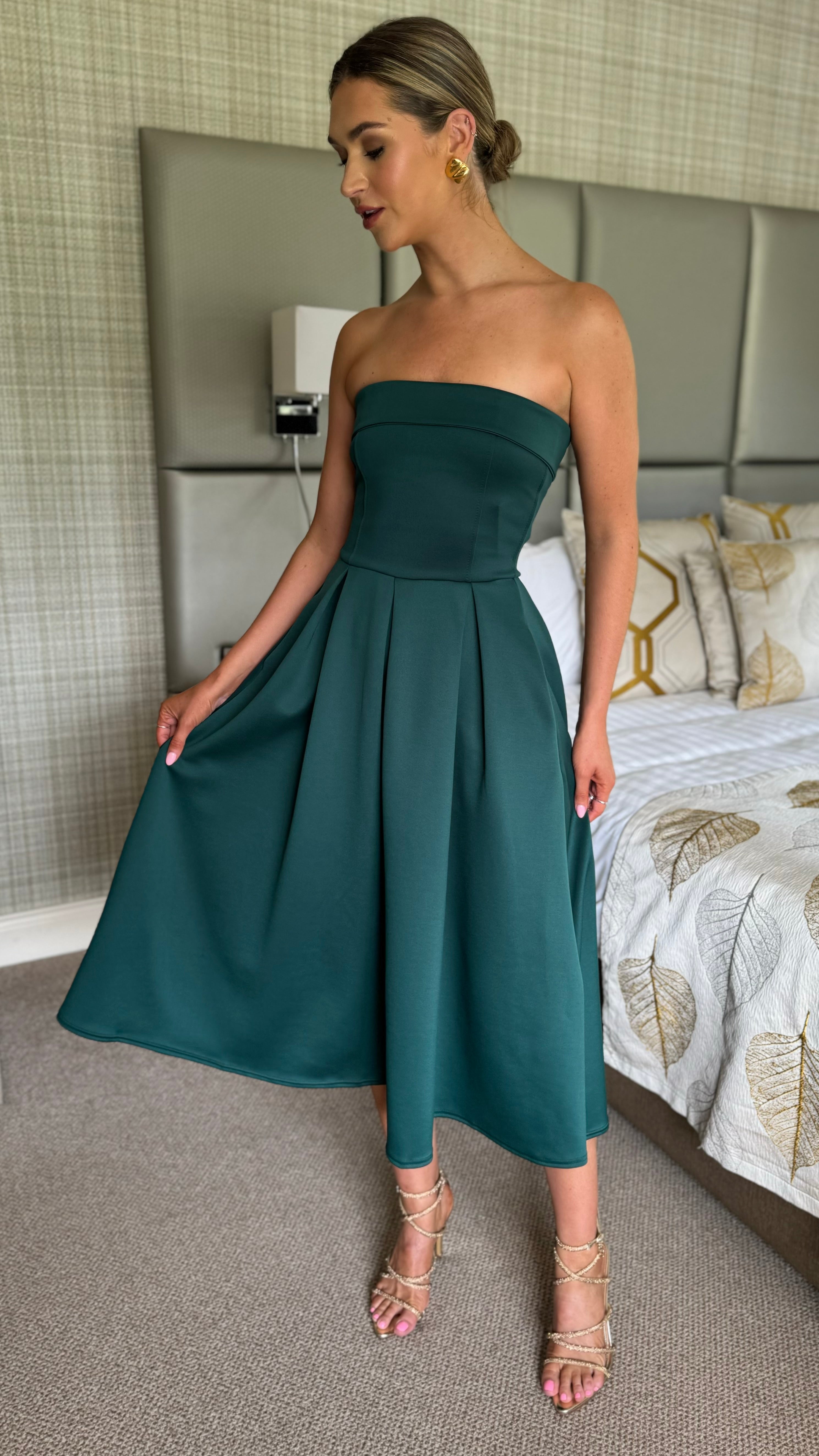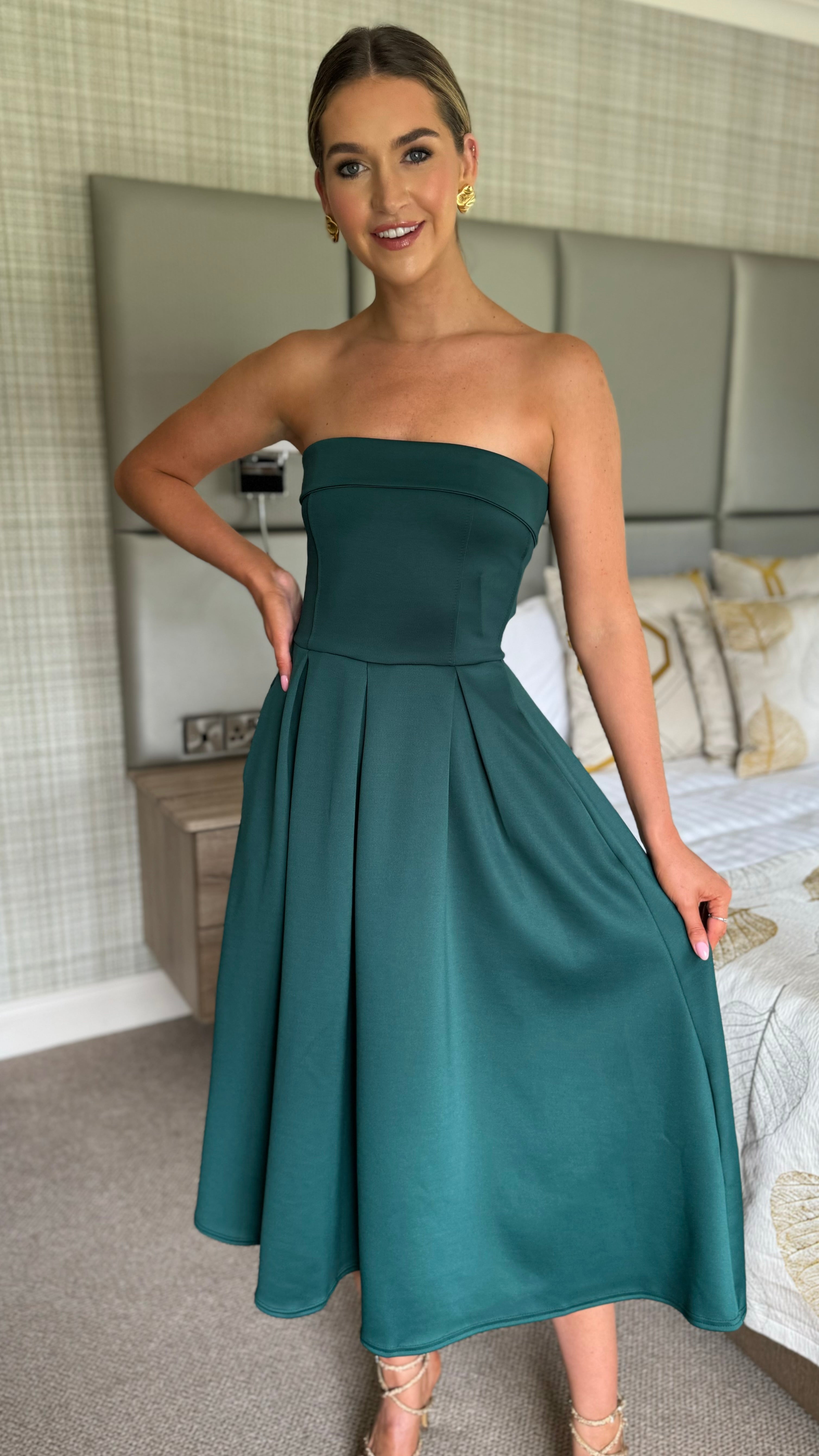 Ayda Emerald Green Strapless Bandeau Midi Dress