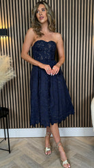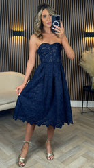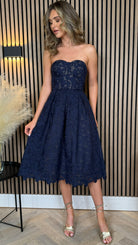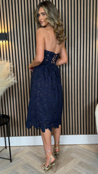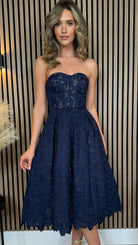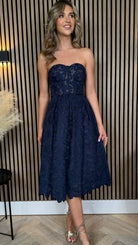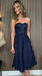 Bronwyn Navy Bandeau Floral Patterned Midi Dress