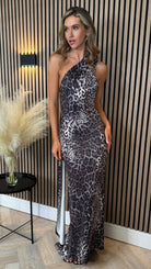 Clara Mink & Black Leopard Printed One Shoulder Midi Dress