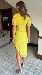 Cyprian Lime Green Angel Sleeve Wrap Midi Dress