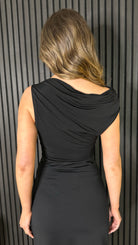 Deanna Black Off The Shoulder Ruched Waist Draped Top