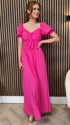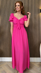 This dress is 🔥! The Dominique Pink Tie Detail Midi Dress flaunts a sexy tie bust with cut out detail and a cute sweetheart neckline. The elasticated waistband provides a comfortable, yet flattering fit. Perfect for any occasion!