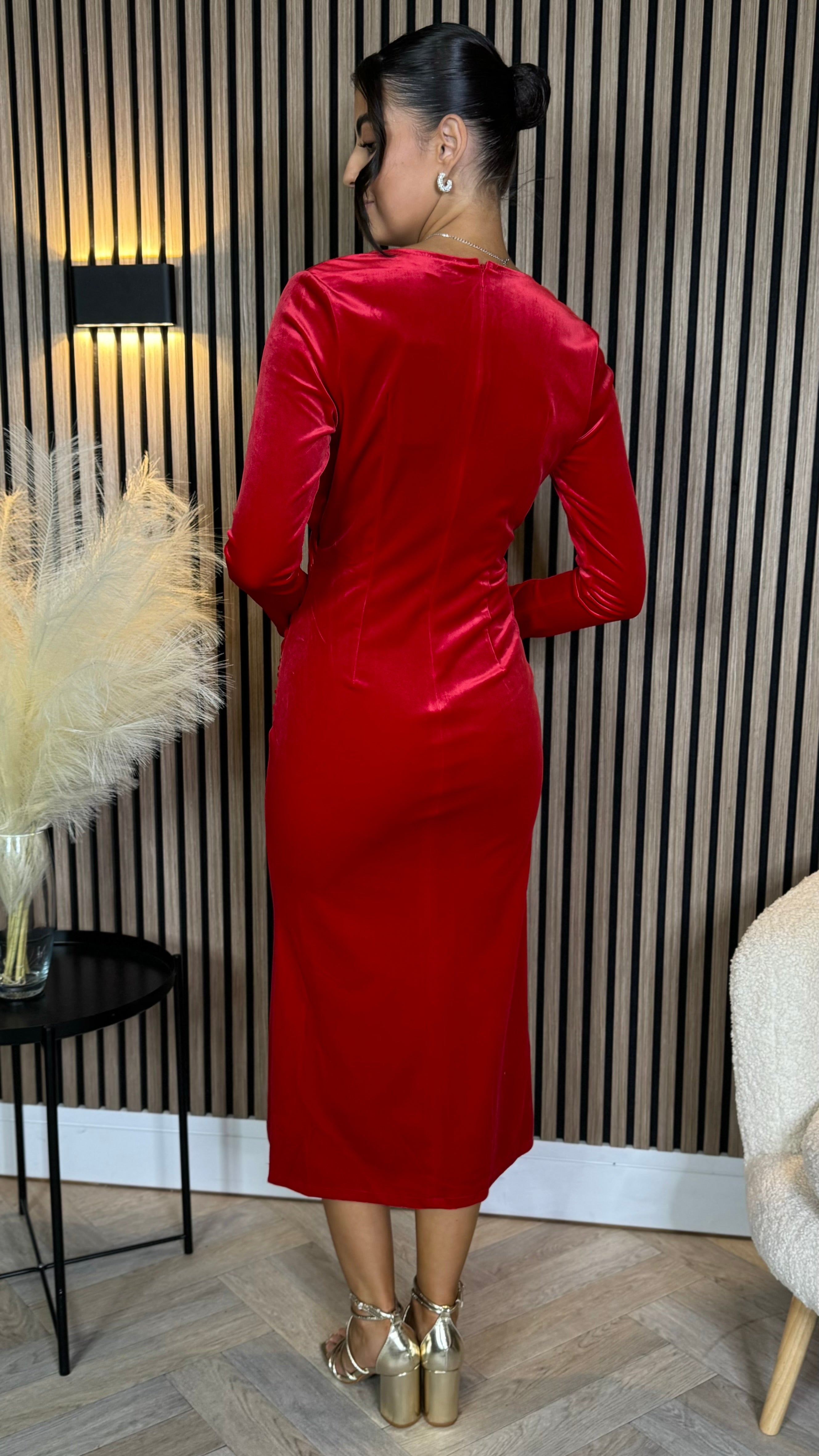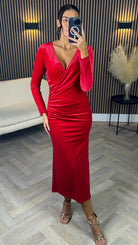 Slip into style with the Edina Red Velvet Wrap Effect Midi Dress! Featuring a unique wrap effect and ruched detailing, this dress is perfect for any occasion. The rich red color adds a touch of sophistication, while the playful design keeps things fun and flirty. 🌟