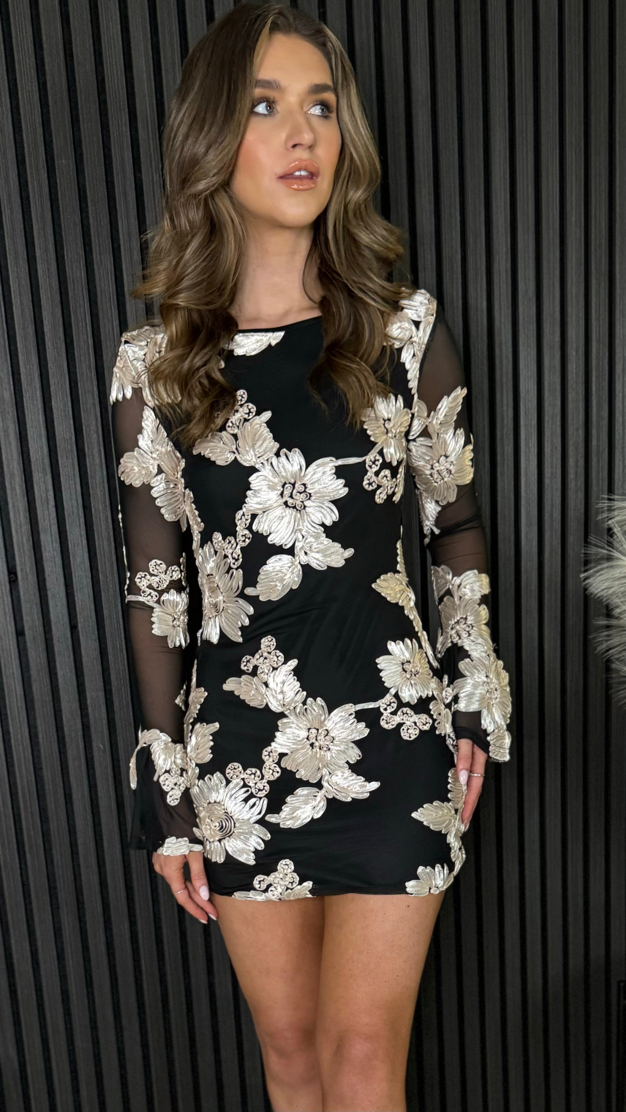 Step into style with the Jocelyn Black & Beige Floral Print Mini Dress. Featuring elegant bell cuffs, this dress is perfect for any occasion. Express your unique personality and embrace your playful side with this quirky and fun dress.
