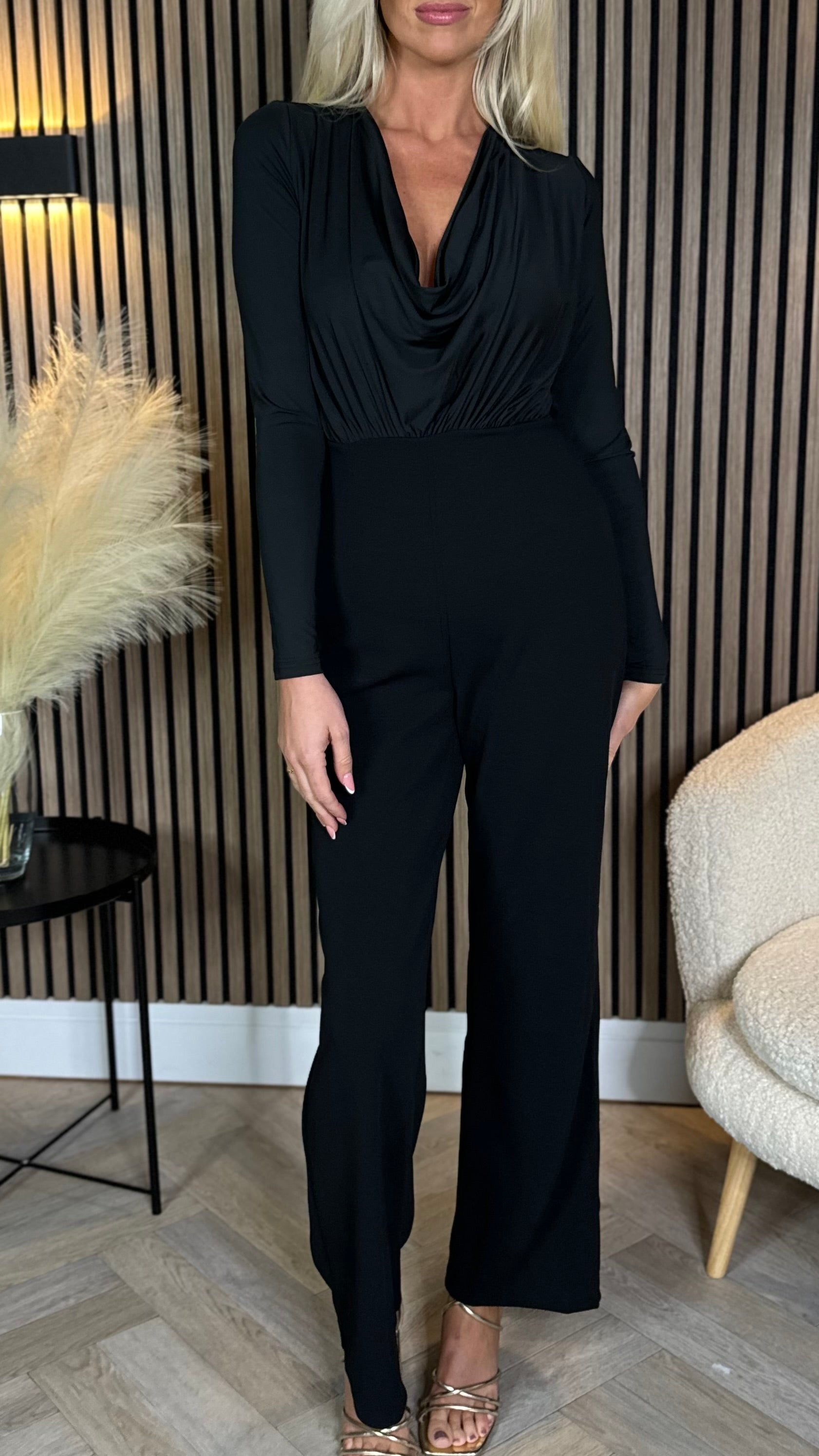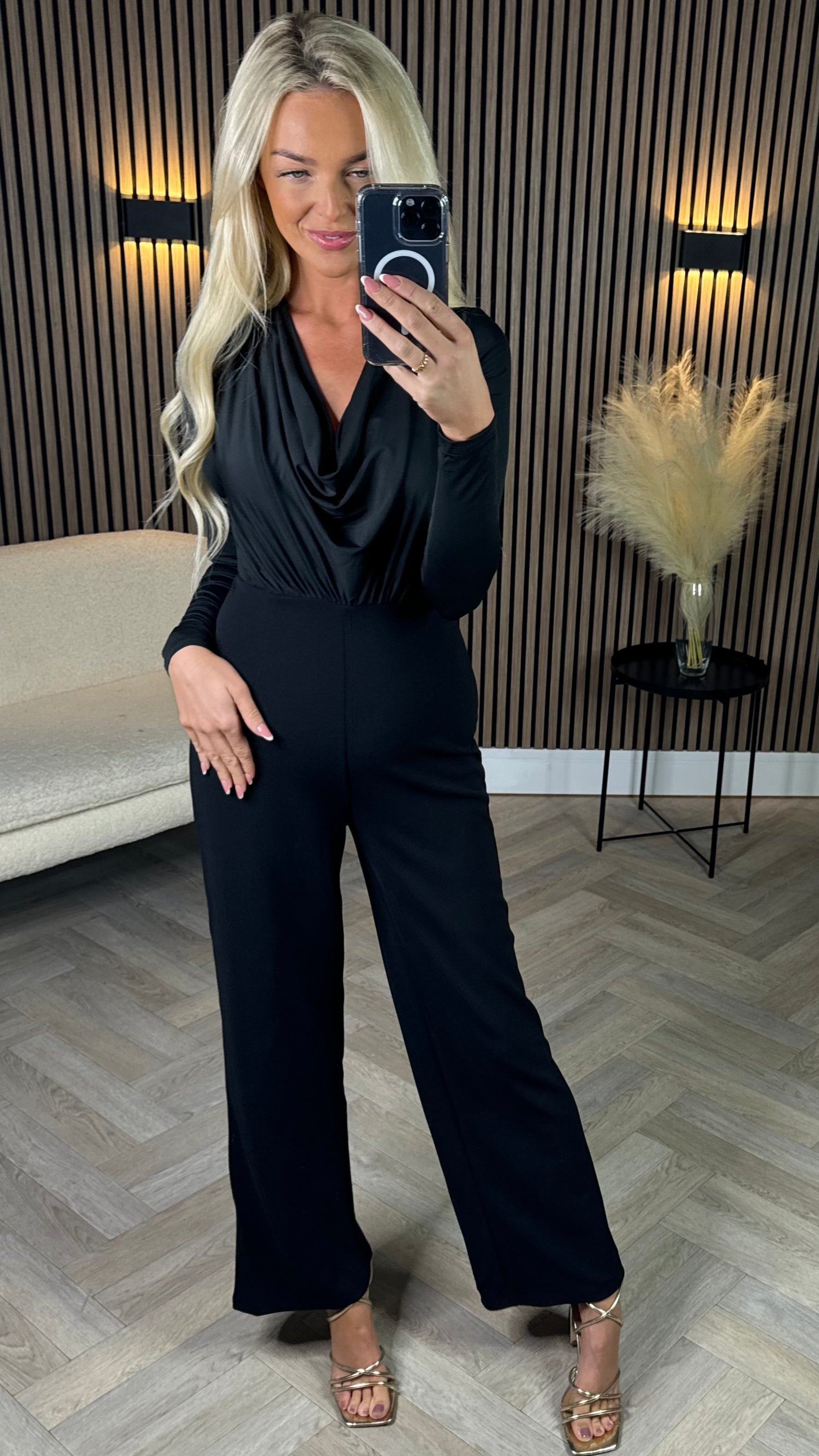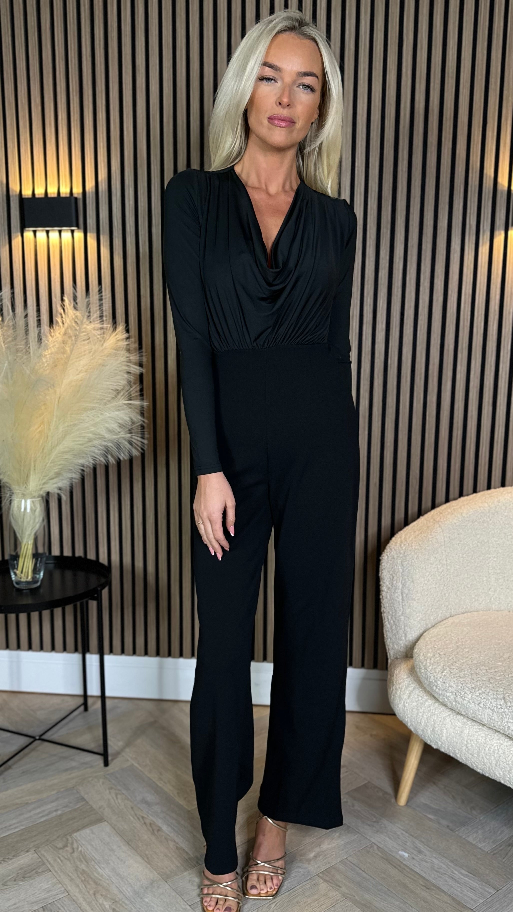 Kella Black Cowl Neck Long Sleeve Jumpsuit