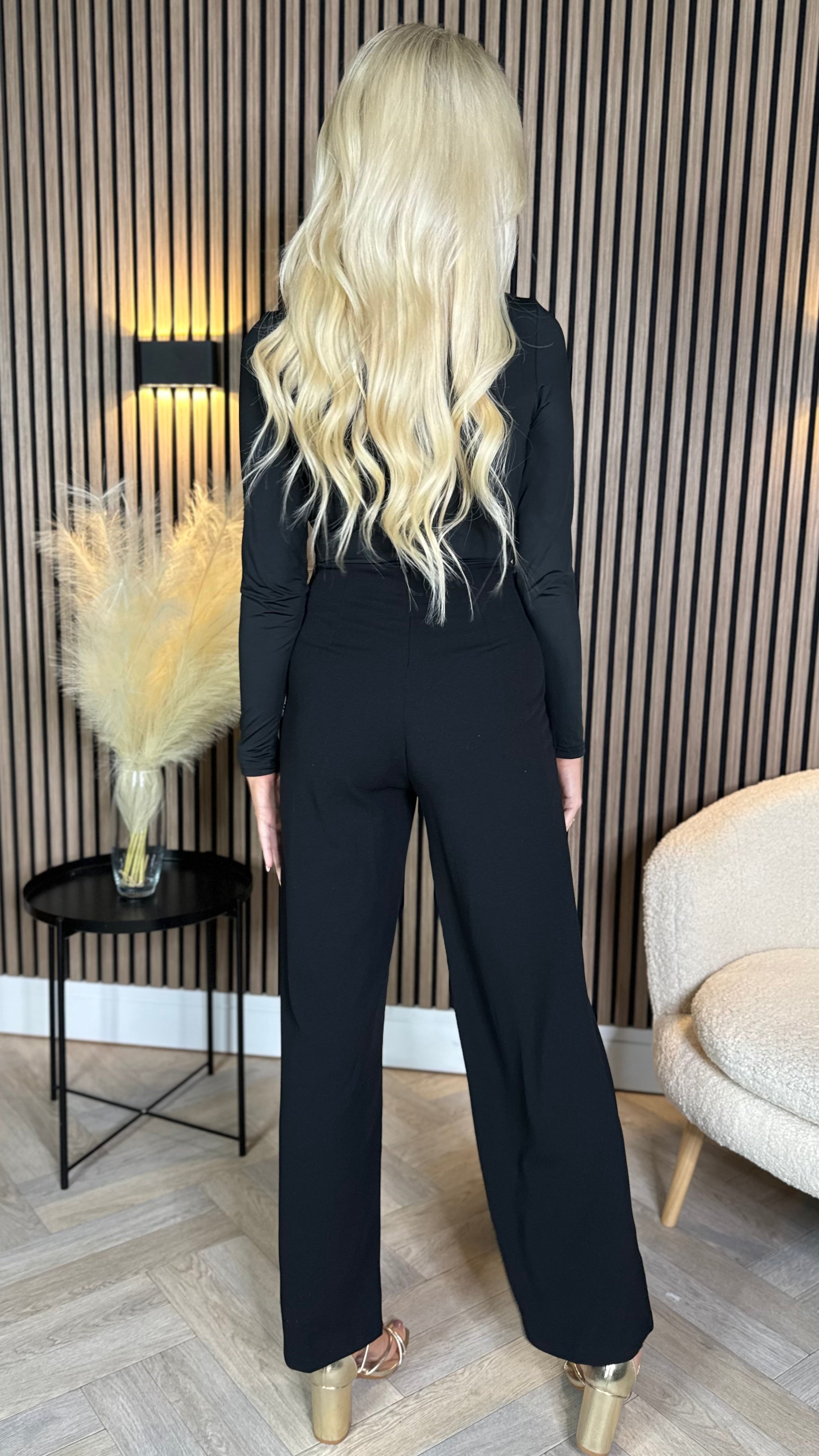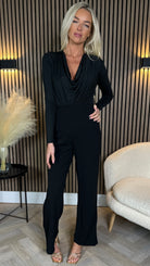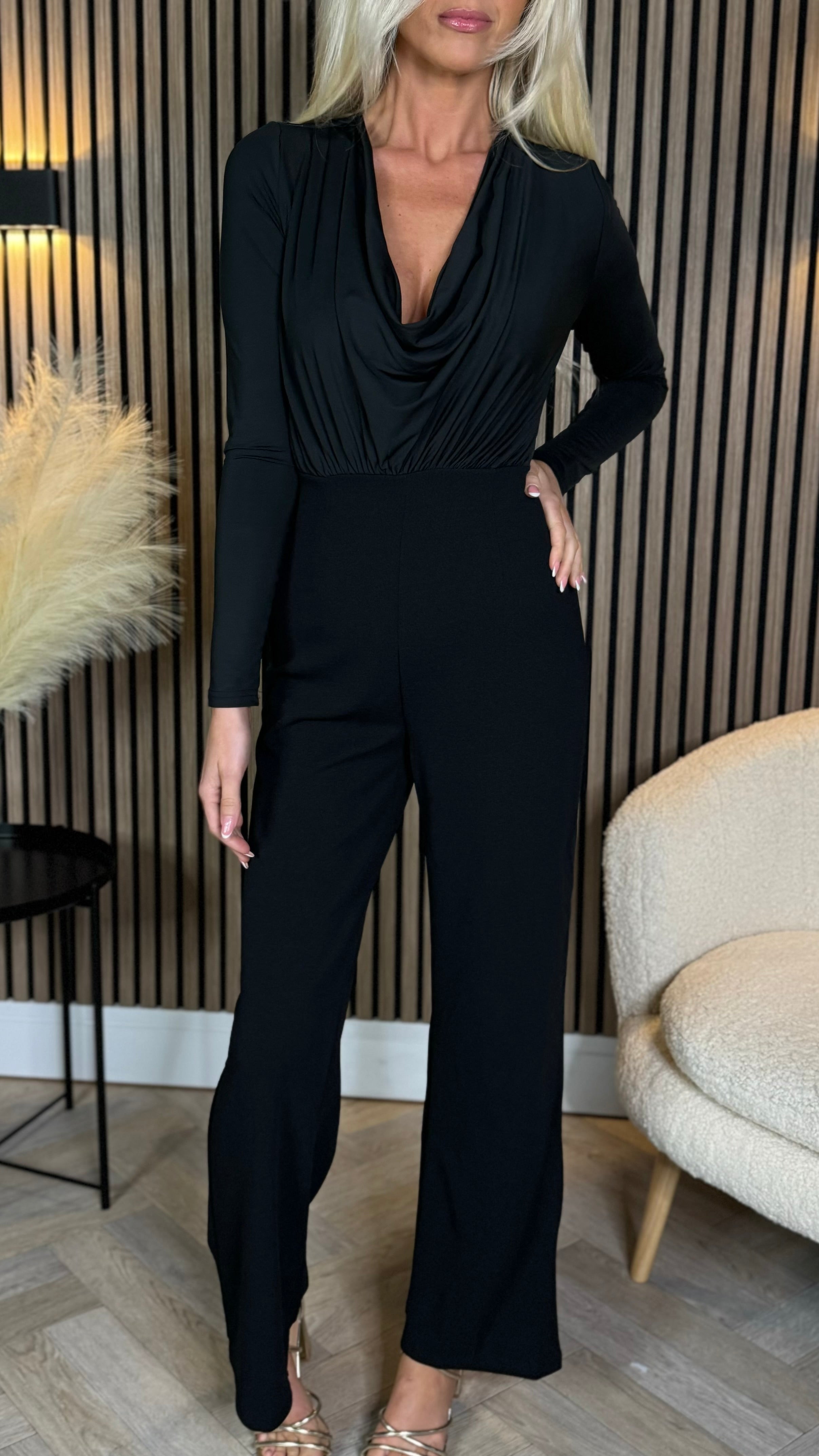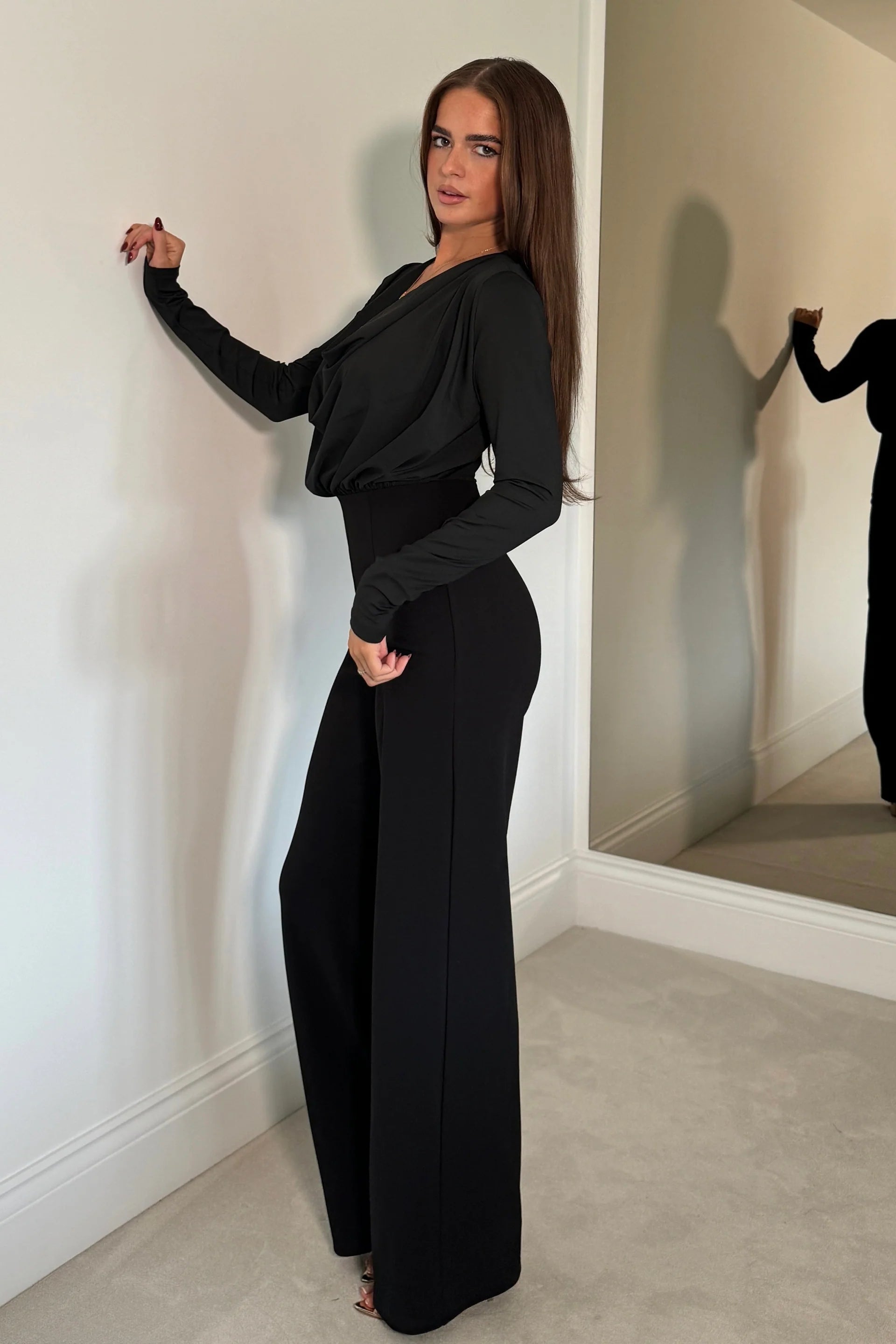 Kella Black Cowl Neck Long Sleeve Jumpsuit