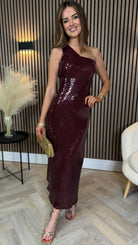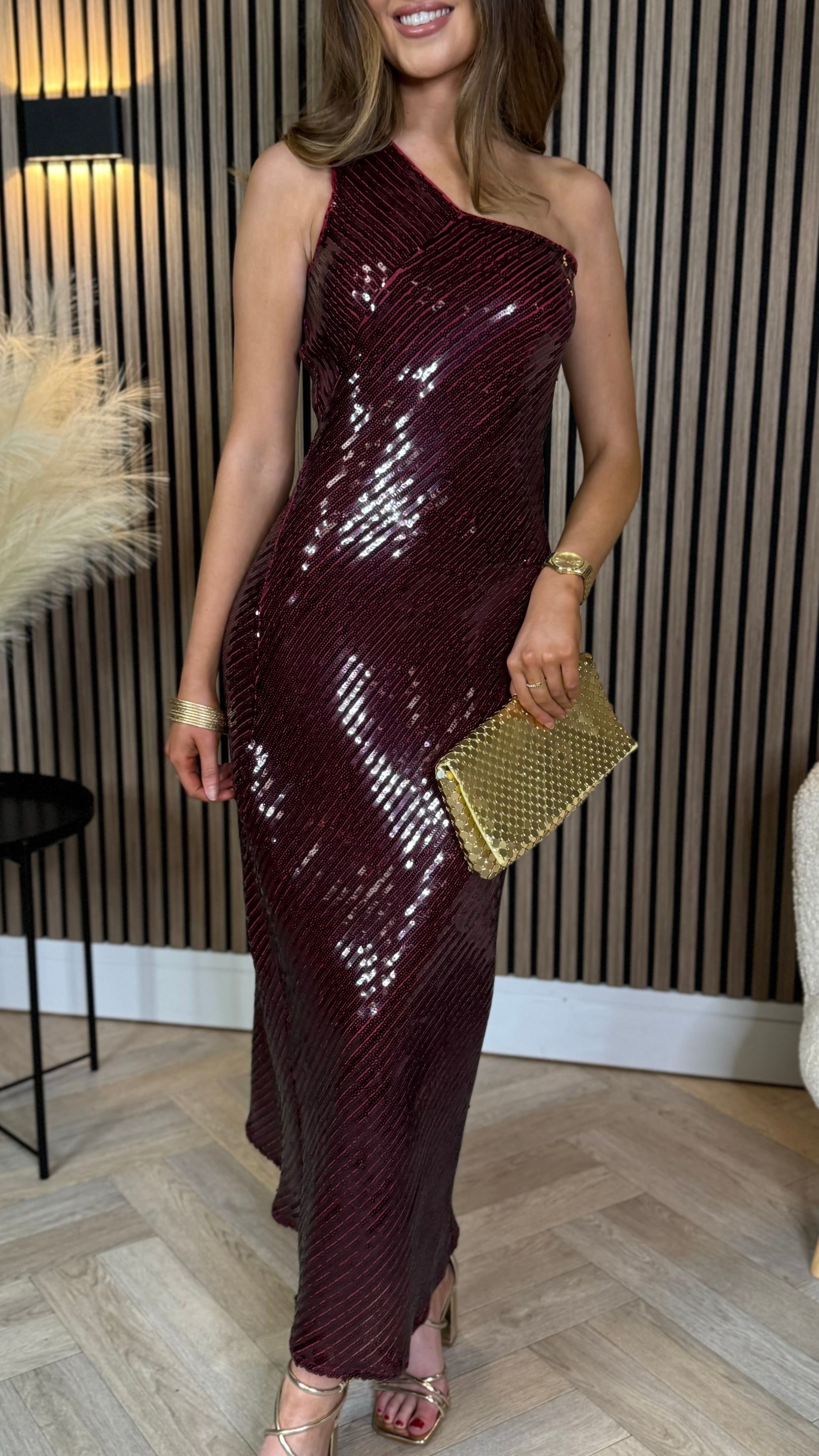 Kendall Burgundy Sequin One Shoulder Maxi Dress
