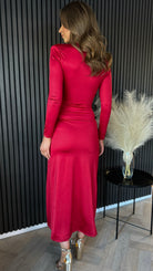 Rule the fashion kingdom in our Kingsley Red V Neckline Wrap Effect Brooch Detail Midi Dress. With a v neckline and wrap effect, this dress flatters your curves while the ruched waist and brooch detail add a touch of elegance. Perfect for conquering any event with style and grace.
