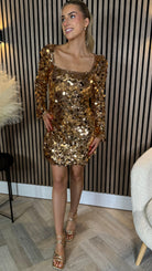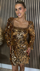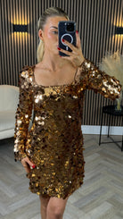 Sparkle all night in the Lois Gold Sequin Mini Dress! This stunning dress features a gold sequin design that will make you shine on the dance floor. With its mini length, it's perfect for showing off your legs and dancing the night away! 💃🏼✨