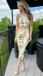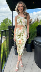 Luna Green & Orange Multi Marble Print Asymmetric Cut Out Midi Dress