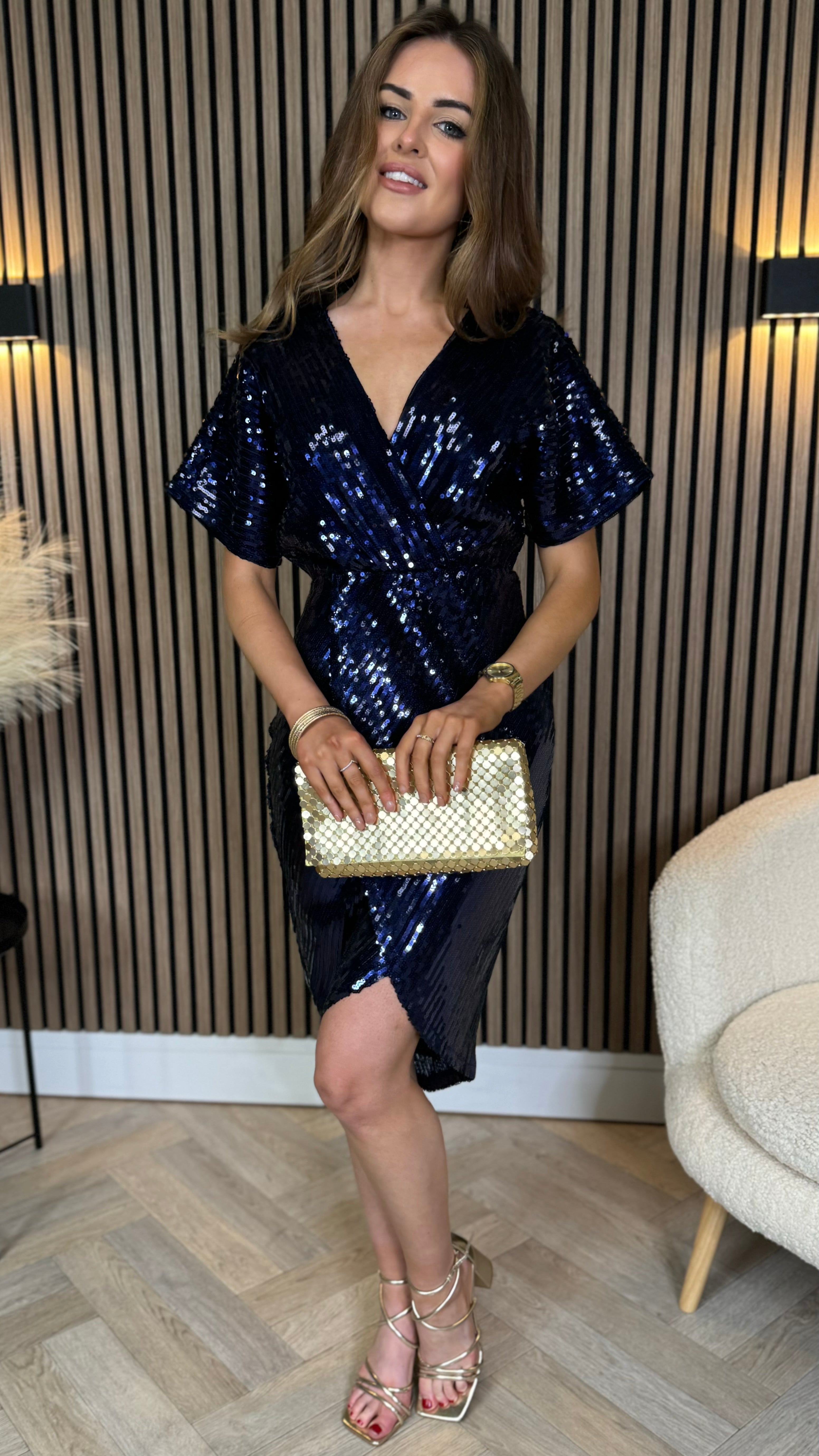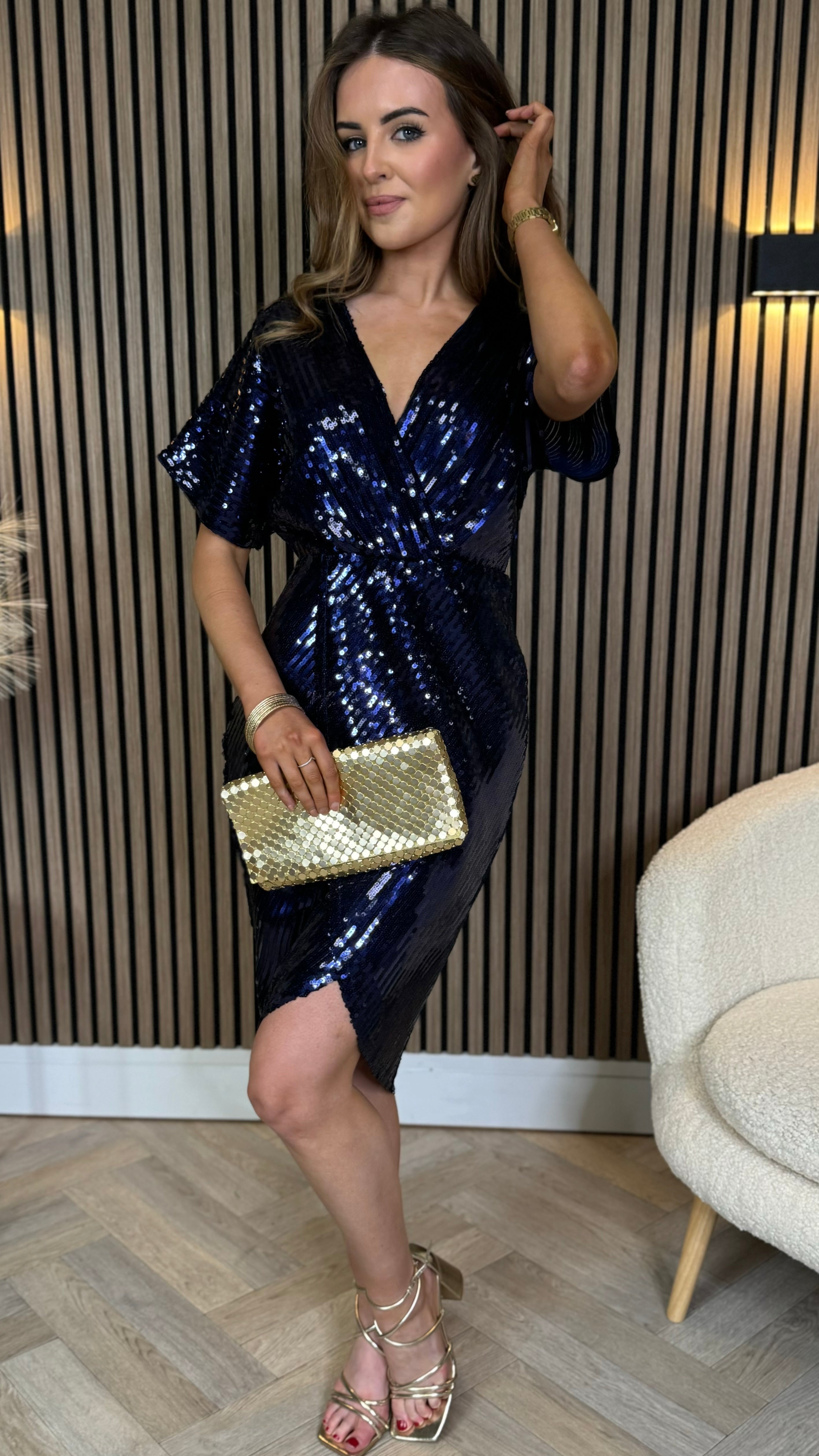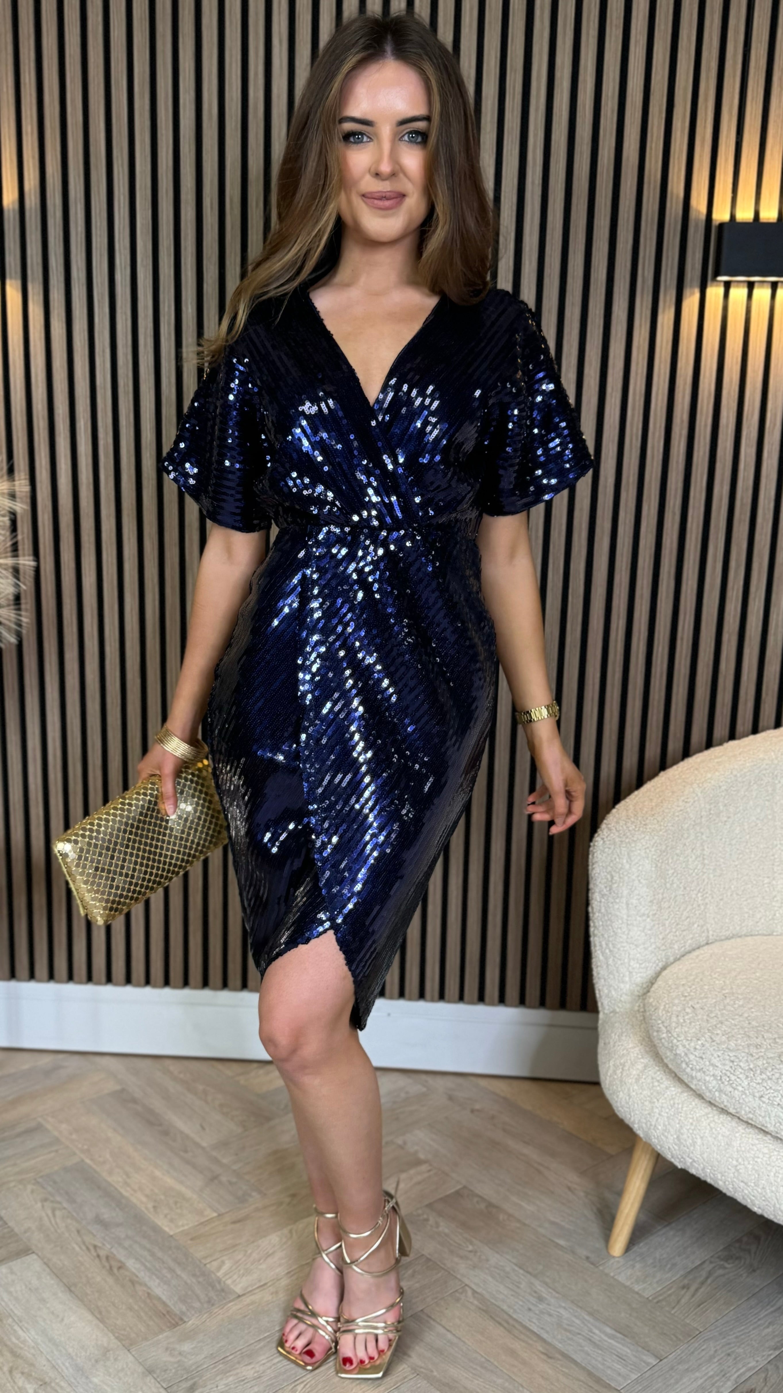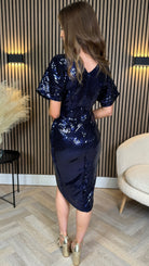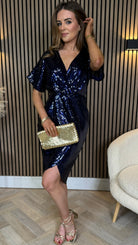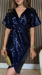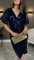 Marianna Navy Sequin Wrap Detail Midi Dress
