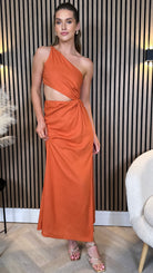 Marlene Rust One Shoulder Cut Out Midi Dress