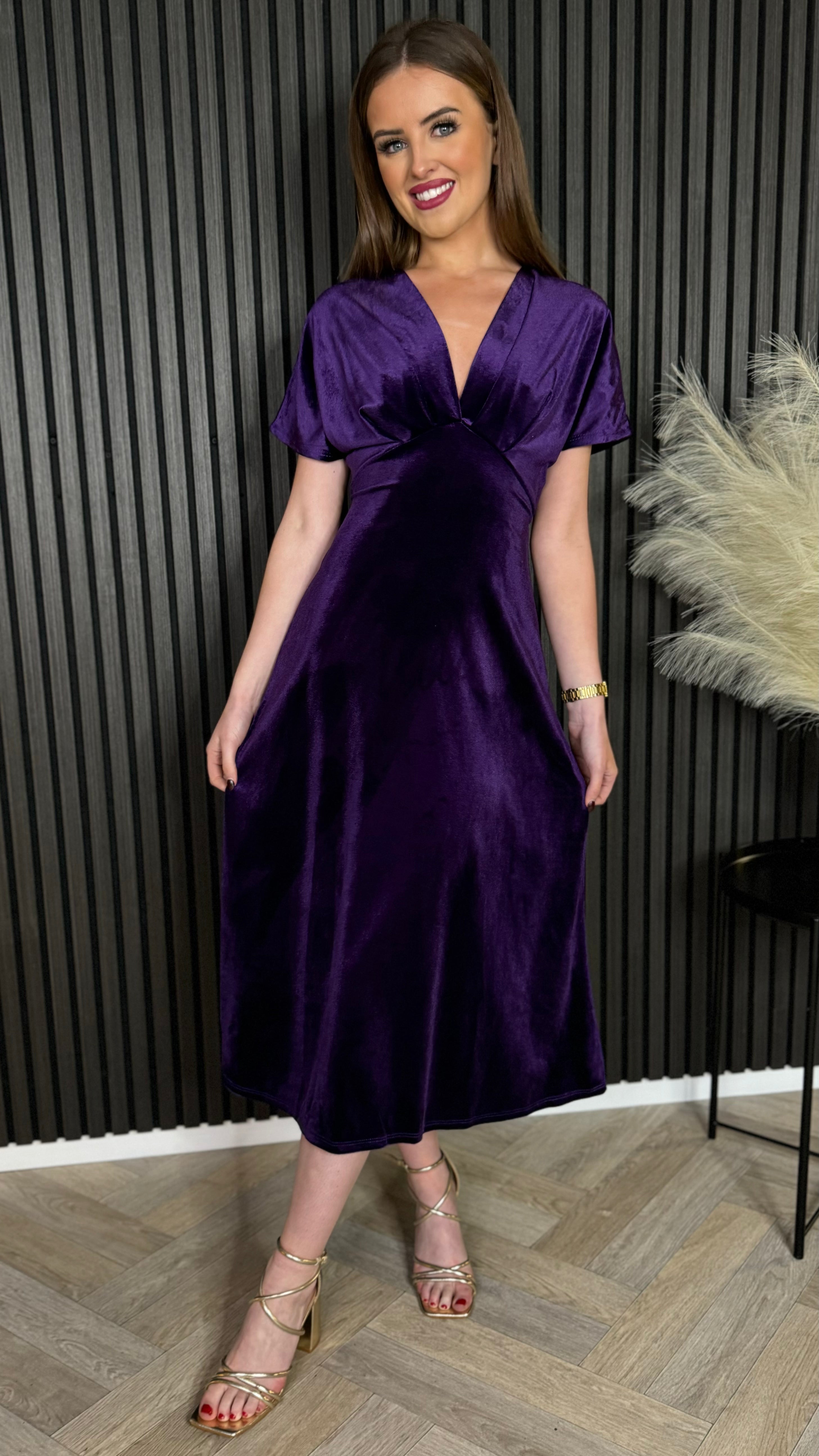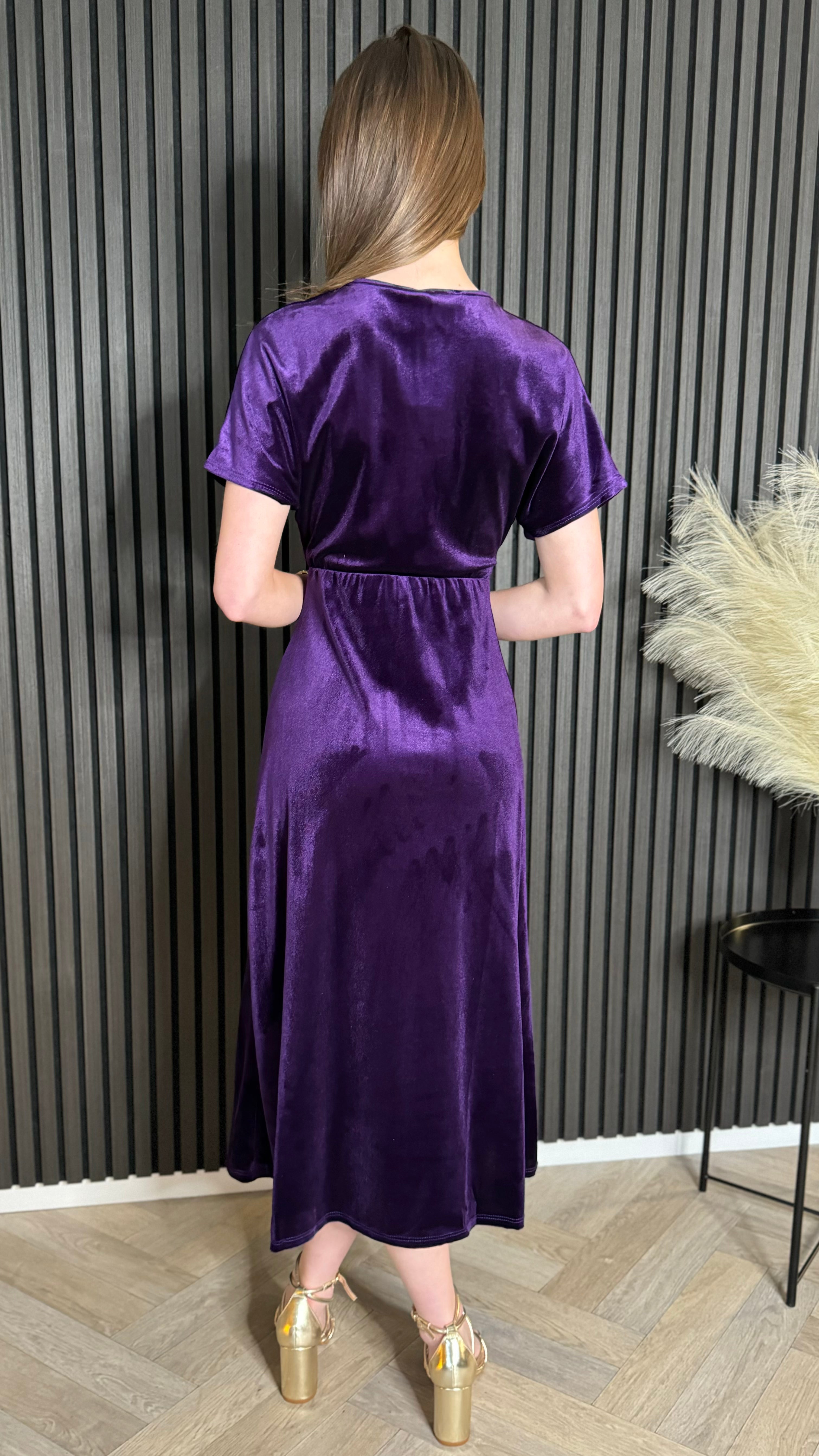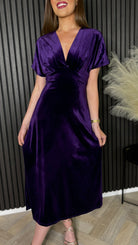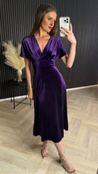 Merritt Purple V Neckline Velvet Finish Midi Dress
