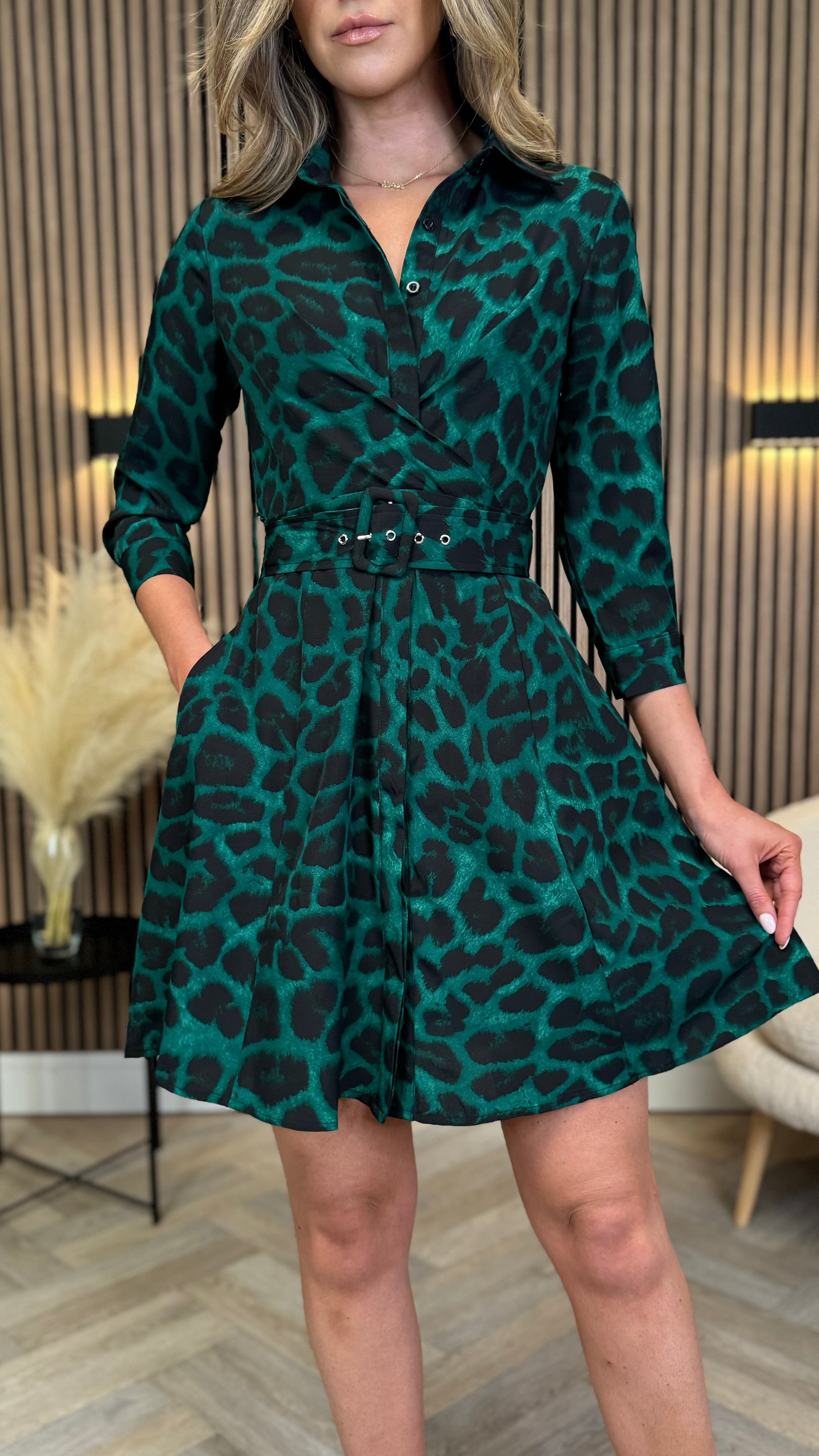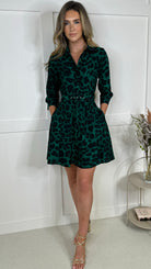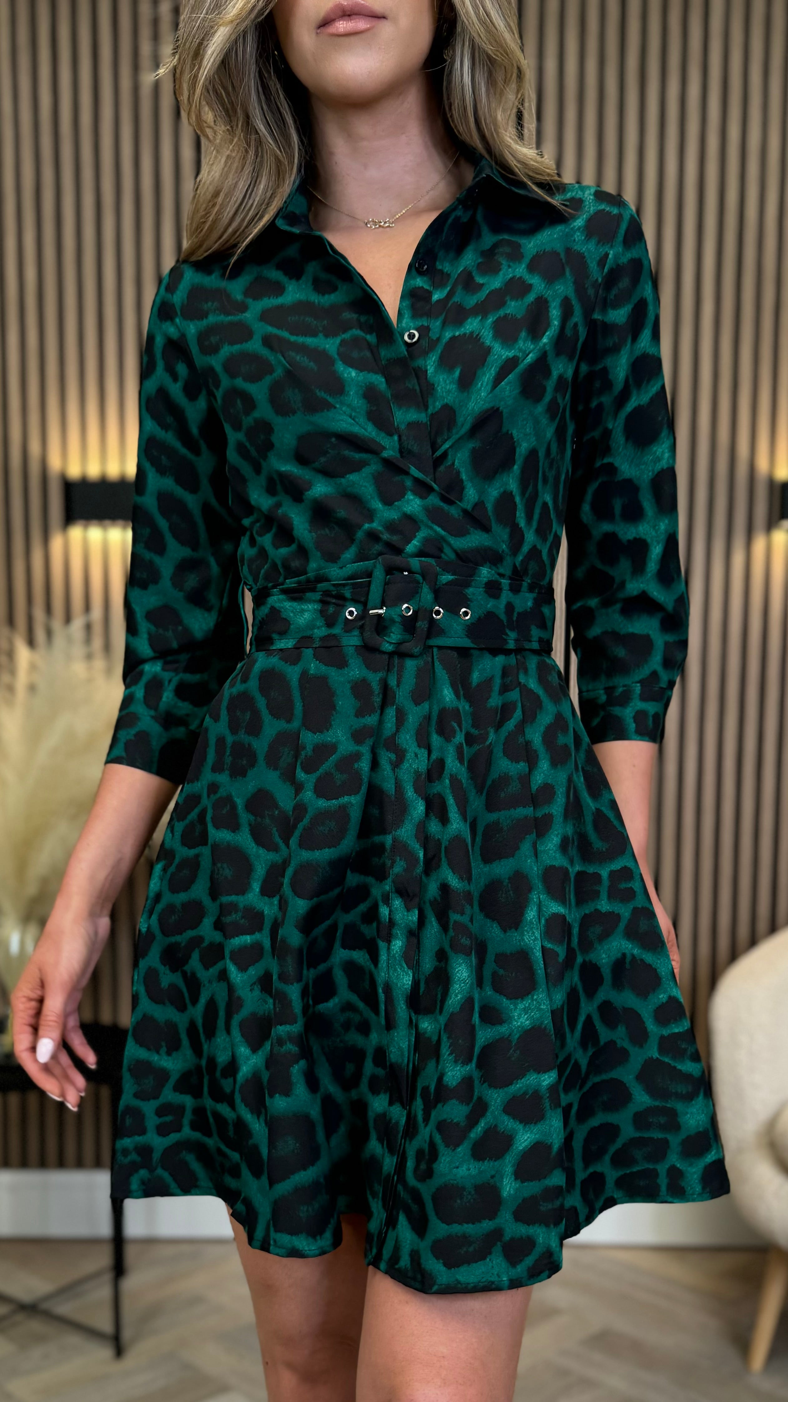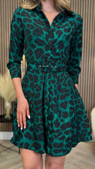 Mitchell Green Leopard Print Wrap Detail Mini Shirt Dress
