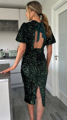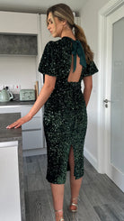 Rachelle Green Sequin Bow Back Detail Midi Dress