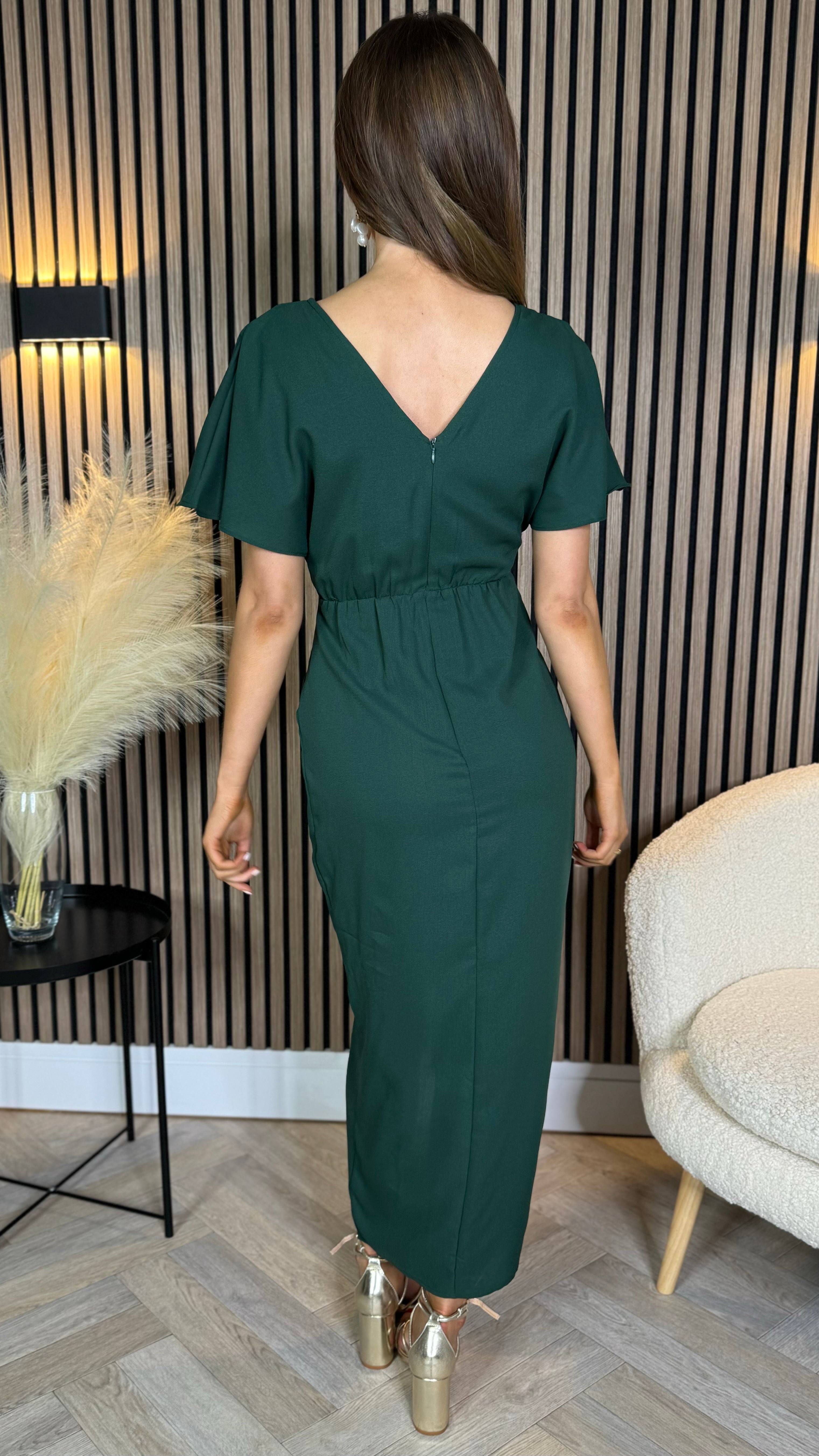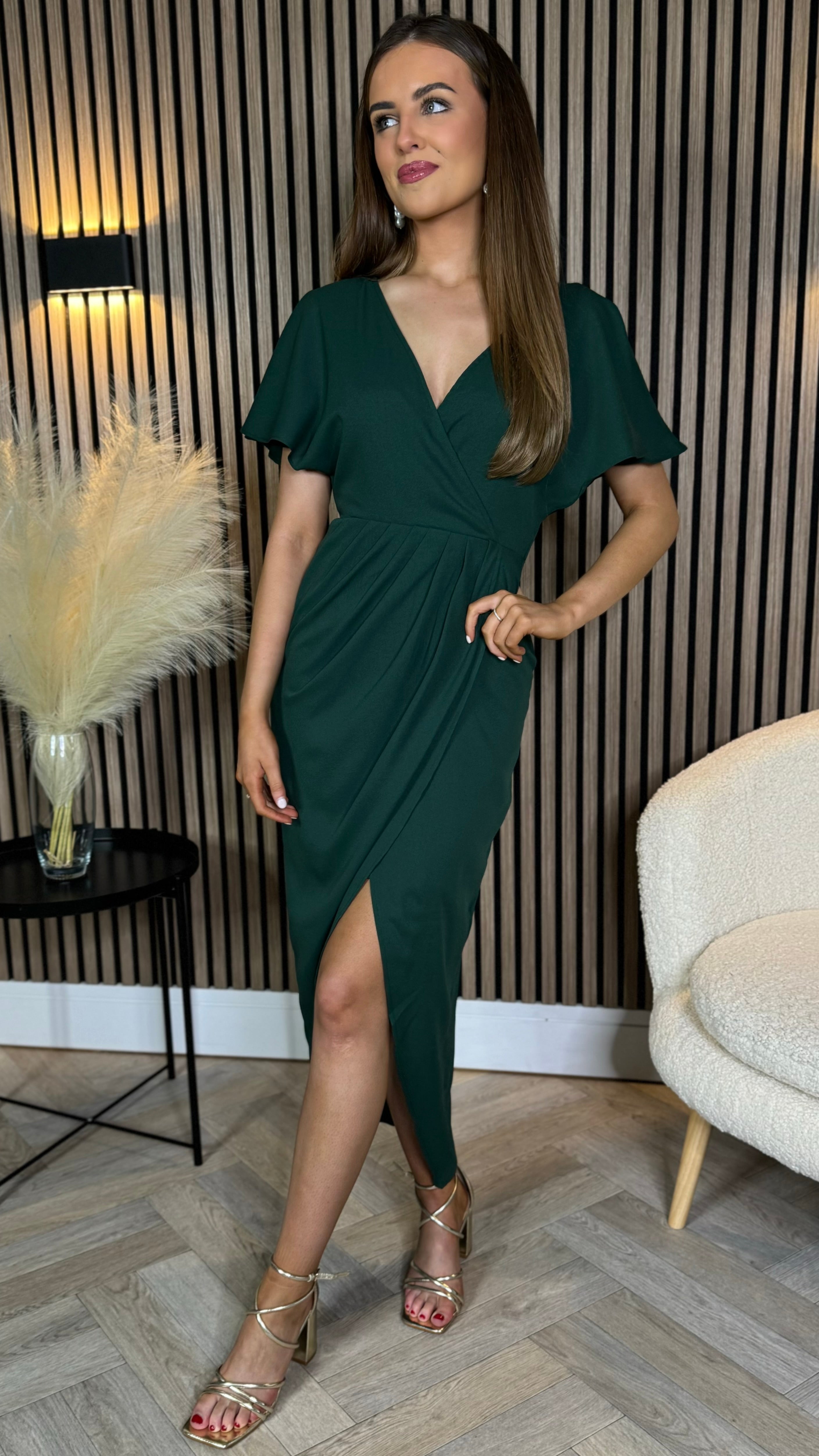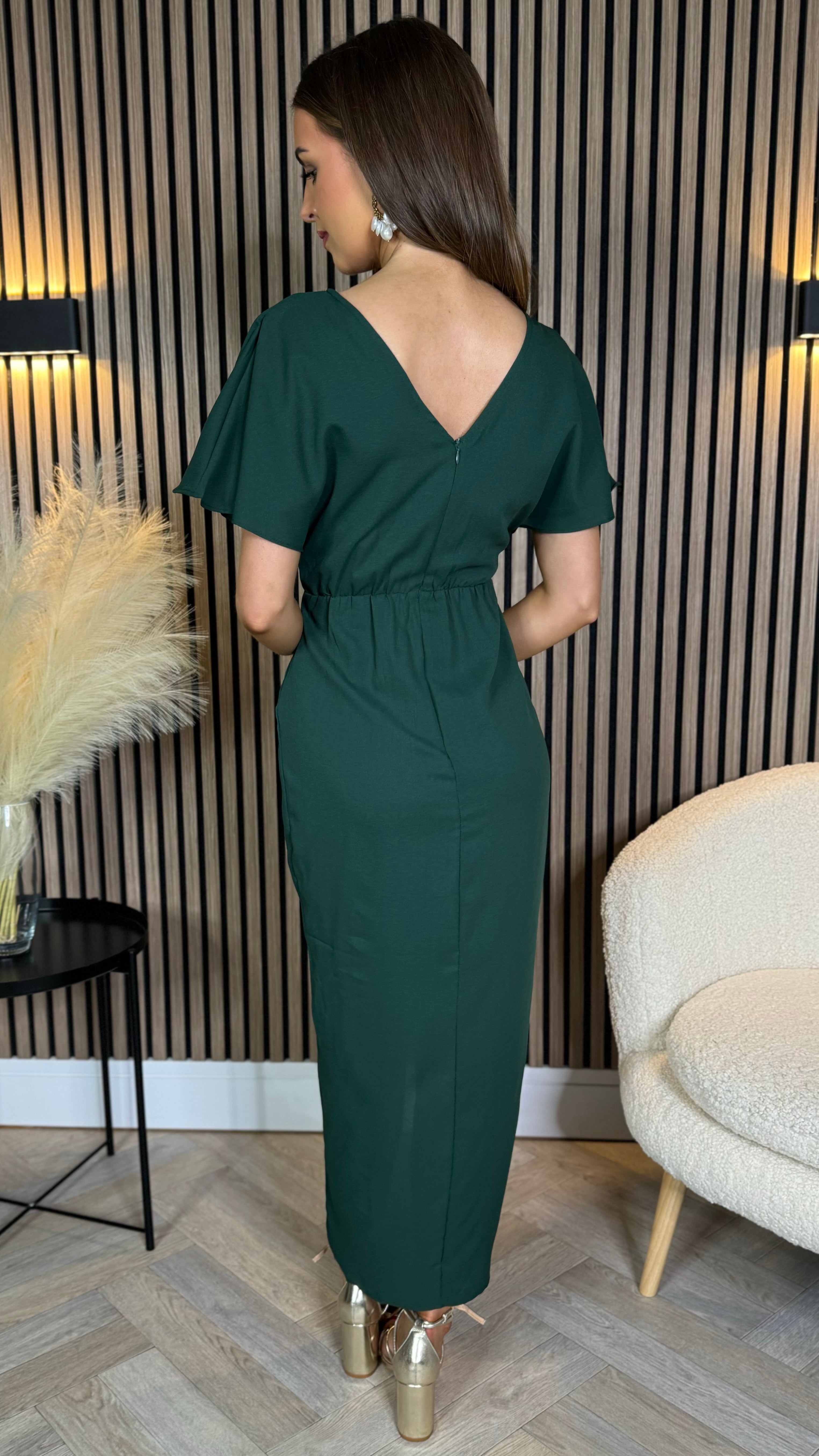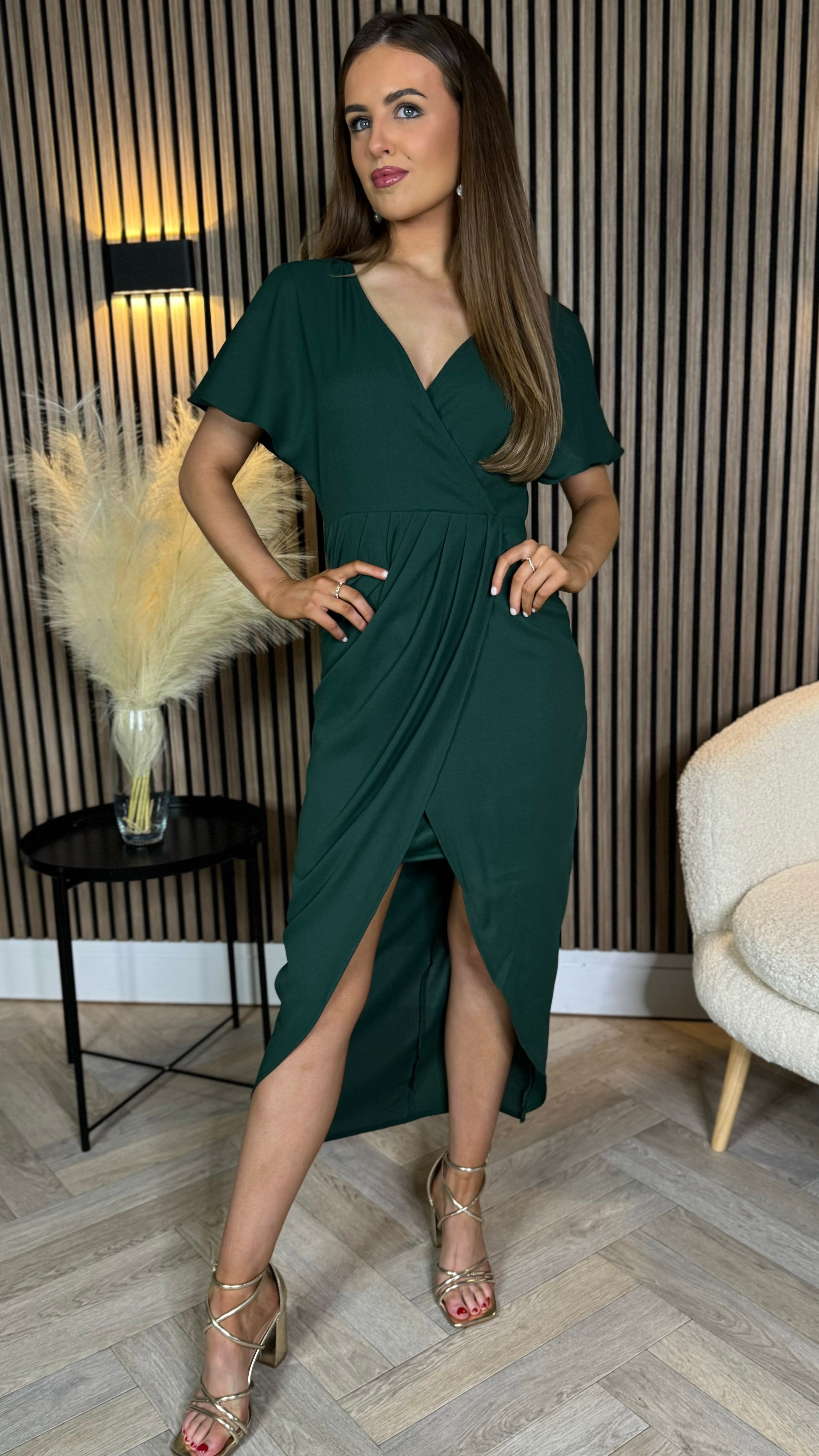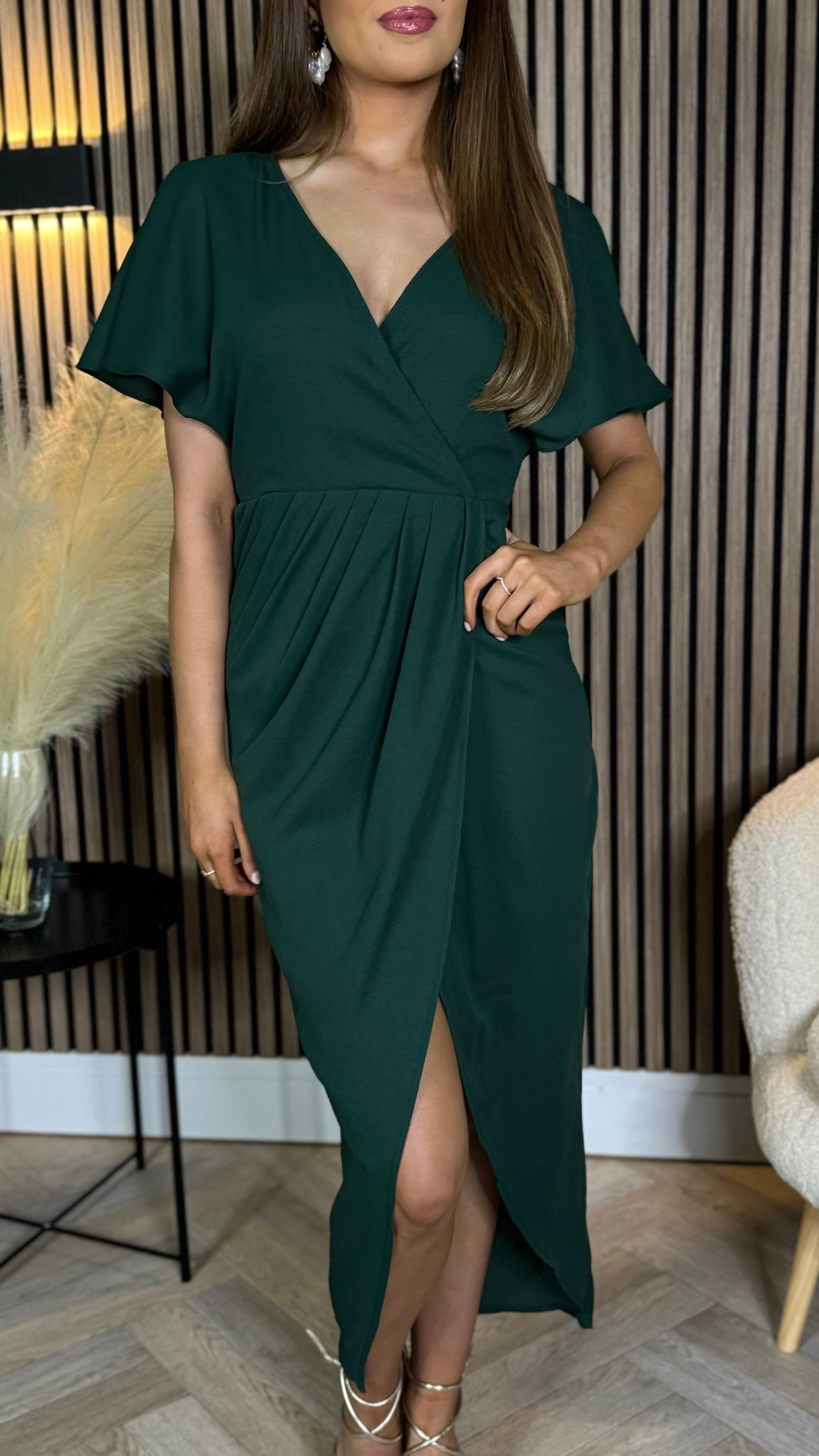 Tasmin Forest Green Wrap Over Style Midi Dress