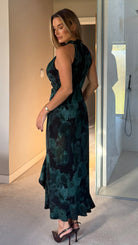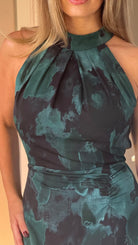 Tay Green Printed Ruched Halterneck Midi Dress (PRE-ORDER)