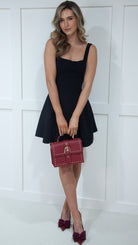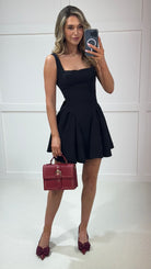 Turn heads in the Valencia Black Bow Back Skater Mini Dress! This flirty frock boasts a square neckline and a playful bow back, perfect for events or a night out on the town. Embrace your inner fashionista and add this dress to your wardrobe now! 💃🏻🏹