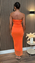 Adele Orange Floral Printed Bandeau Ruched Midi Dress