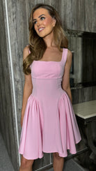 Aurelia Baby Pink Square Neck Back Bow Detail Skater Mini Dress