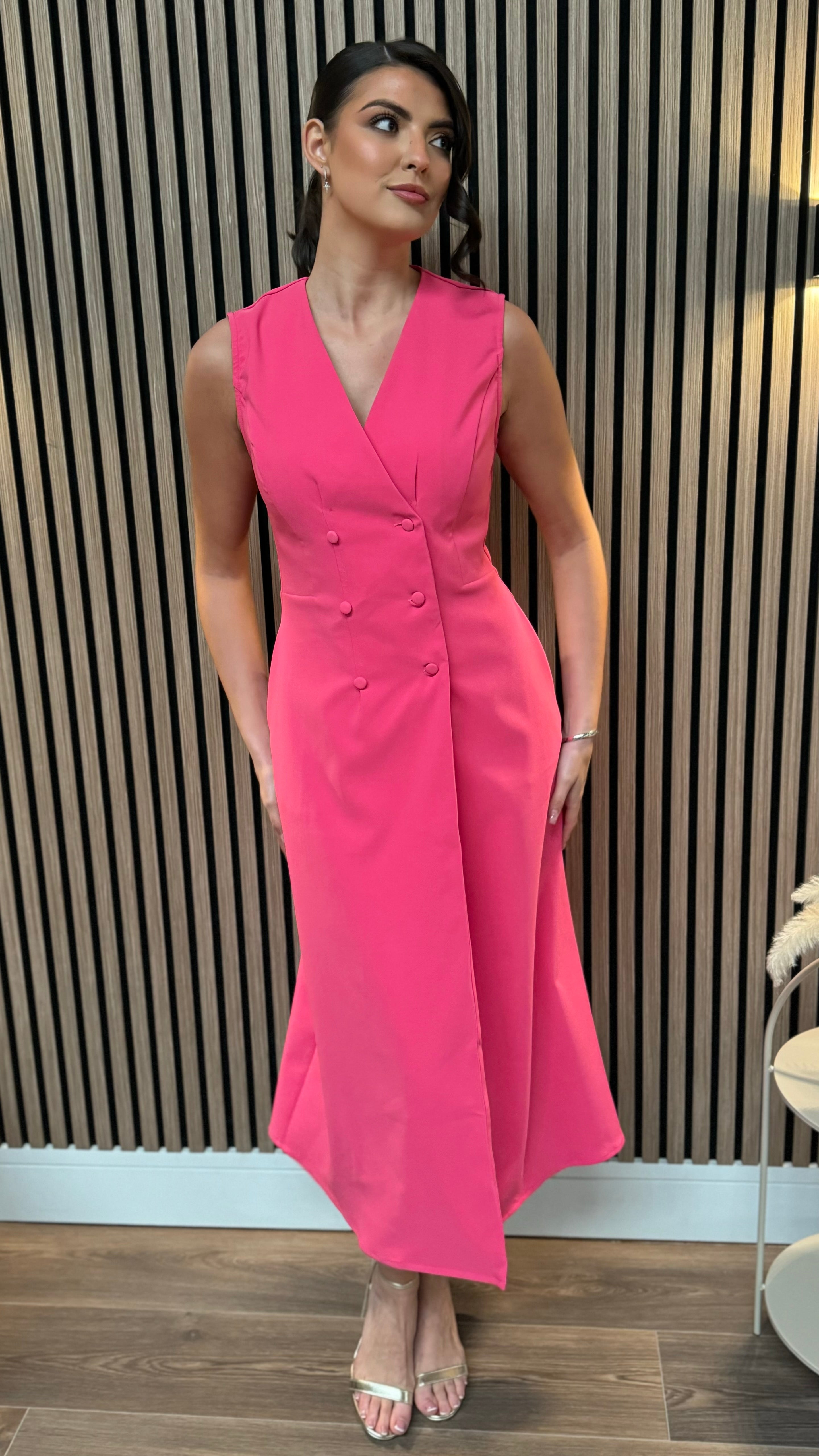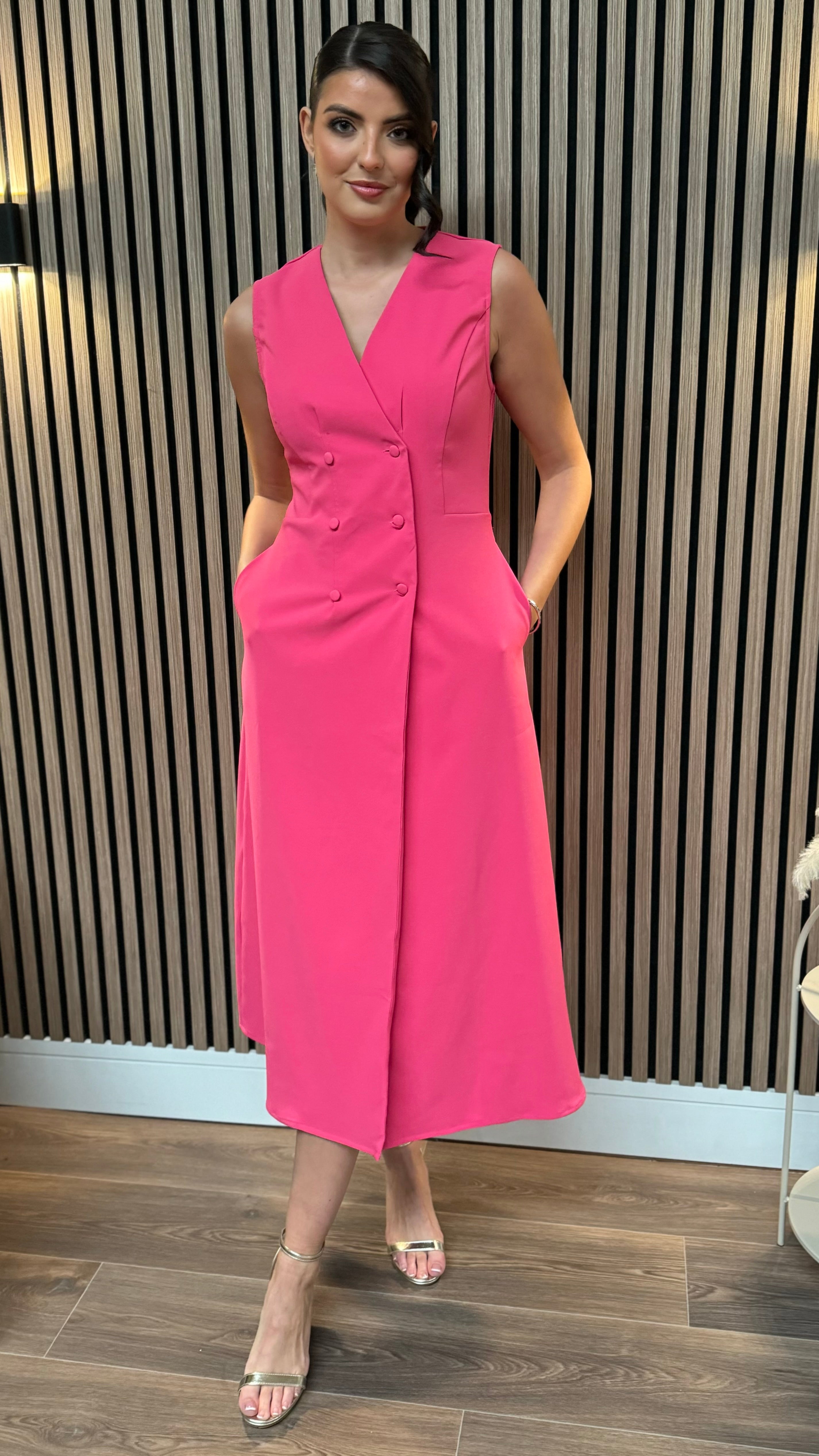 Brody Pink Tailored Sleeveless Midi Dress