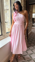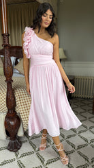 Francesca Baby Pink One Shoulder Ruffle Maxi Dress