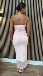 Be bold and beautiful in our Harvey Pink Floral Printed Bandeau Ruched Midi Dress! 🌼 Featuring a stretch tulle fabric for a comfortable fit, ruched sides for a flattering silhouette, and a playful floral print. Perfect for any occasion, this fitted dress will have you turning heads. 🌸