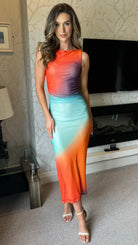 Jenna Orange Tie Dye Sleeveless Boatneck Mesh Maxi Dress