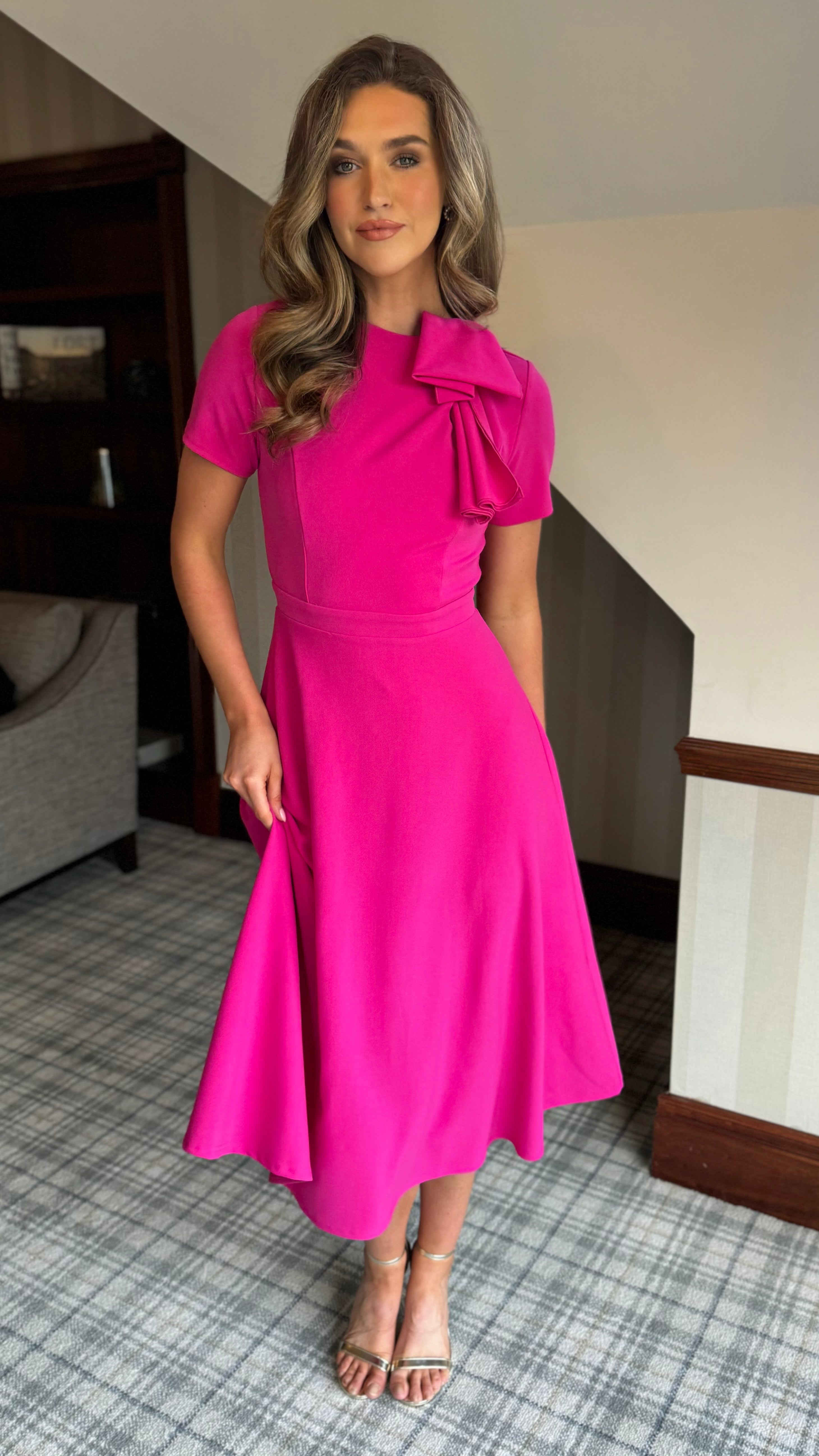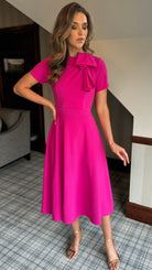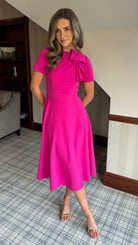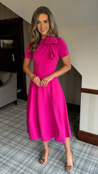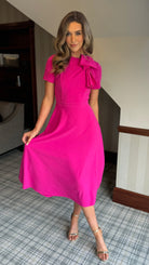 Lira Pink Bow Detail Short Sleeve Midi Dress