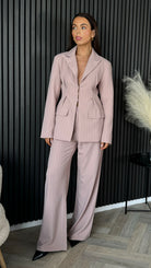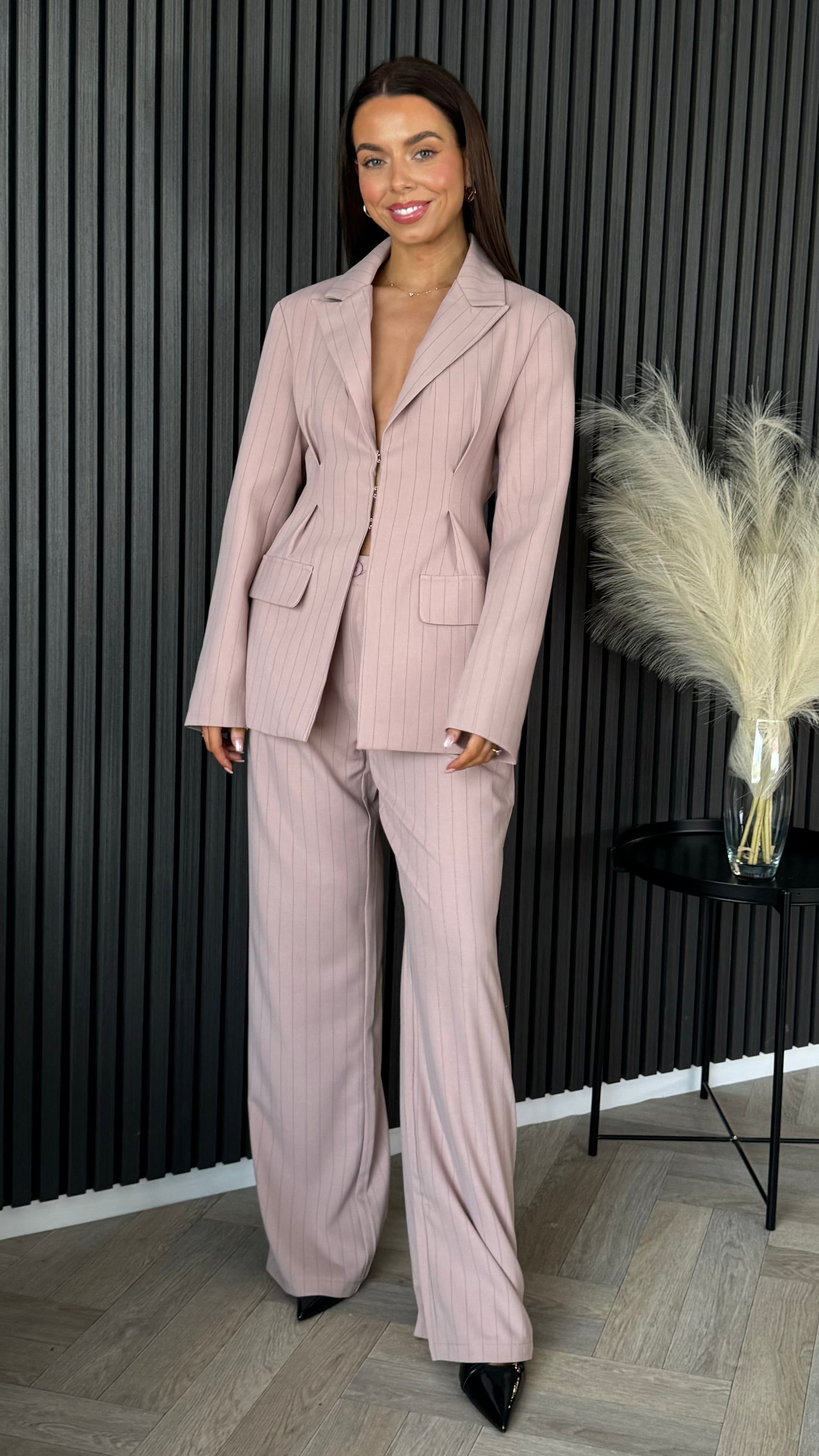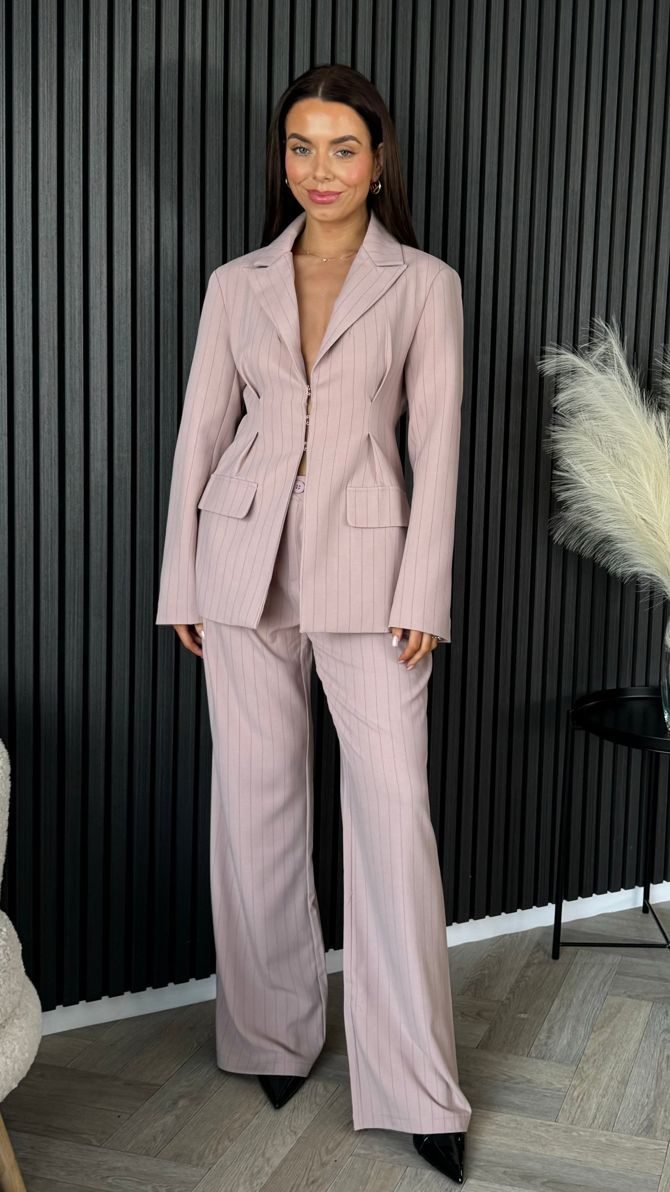 Mara Rose Pink Pinstripe Longline Blazer & Flared Trousers