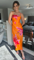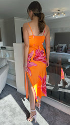 Mika Orange & Pink Floral Print Strappy Slip Midi Dress