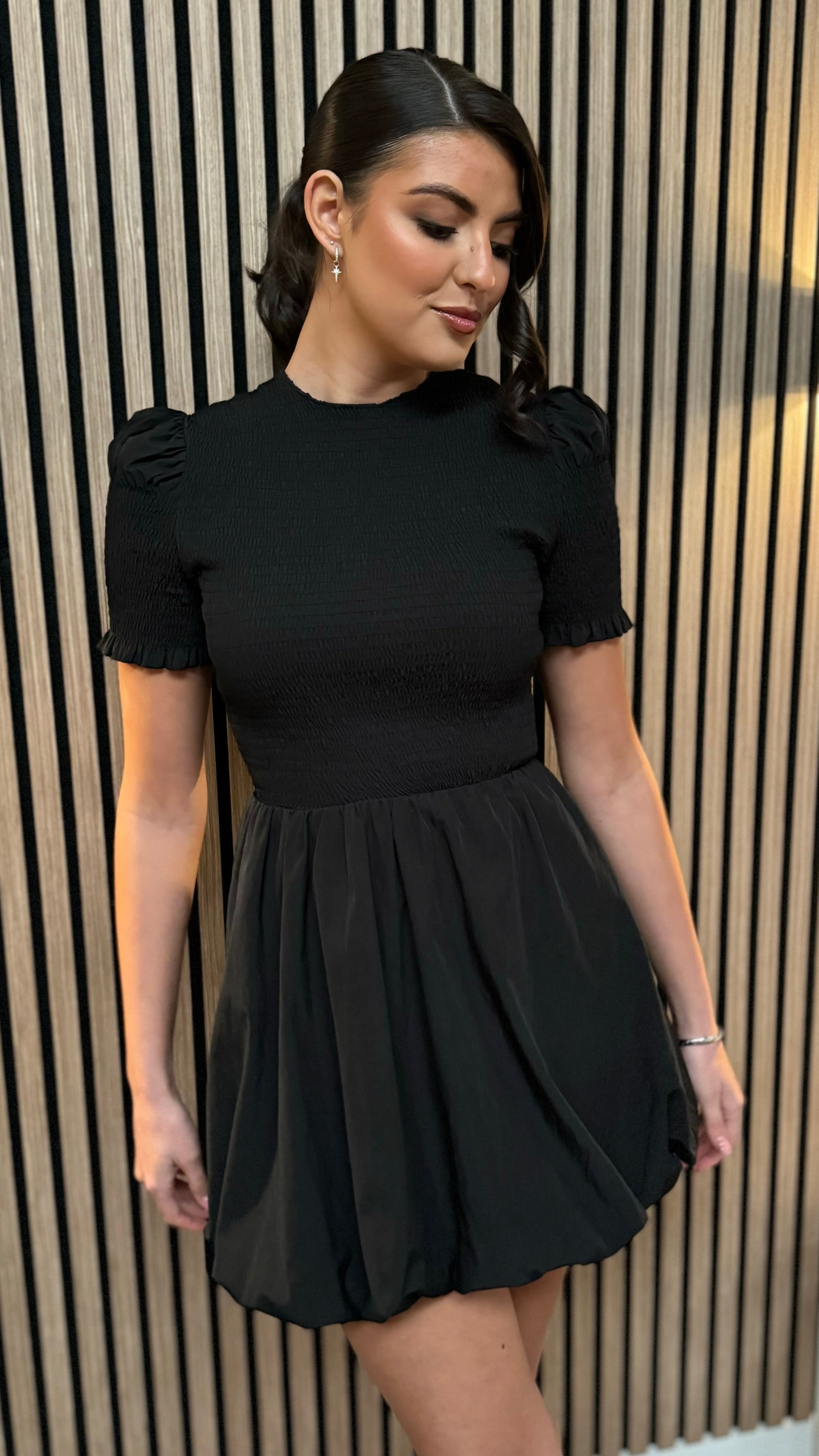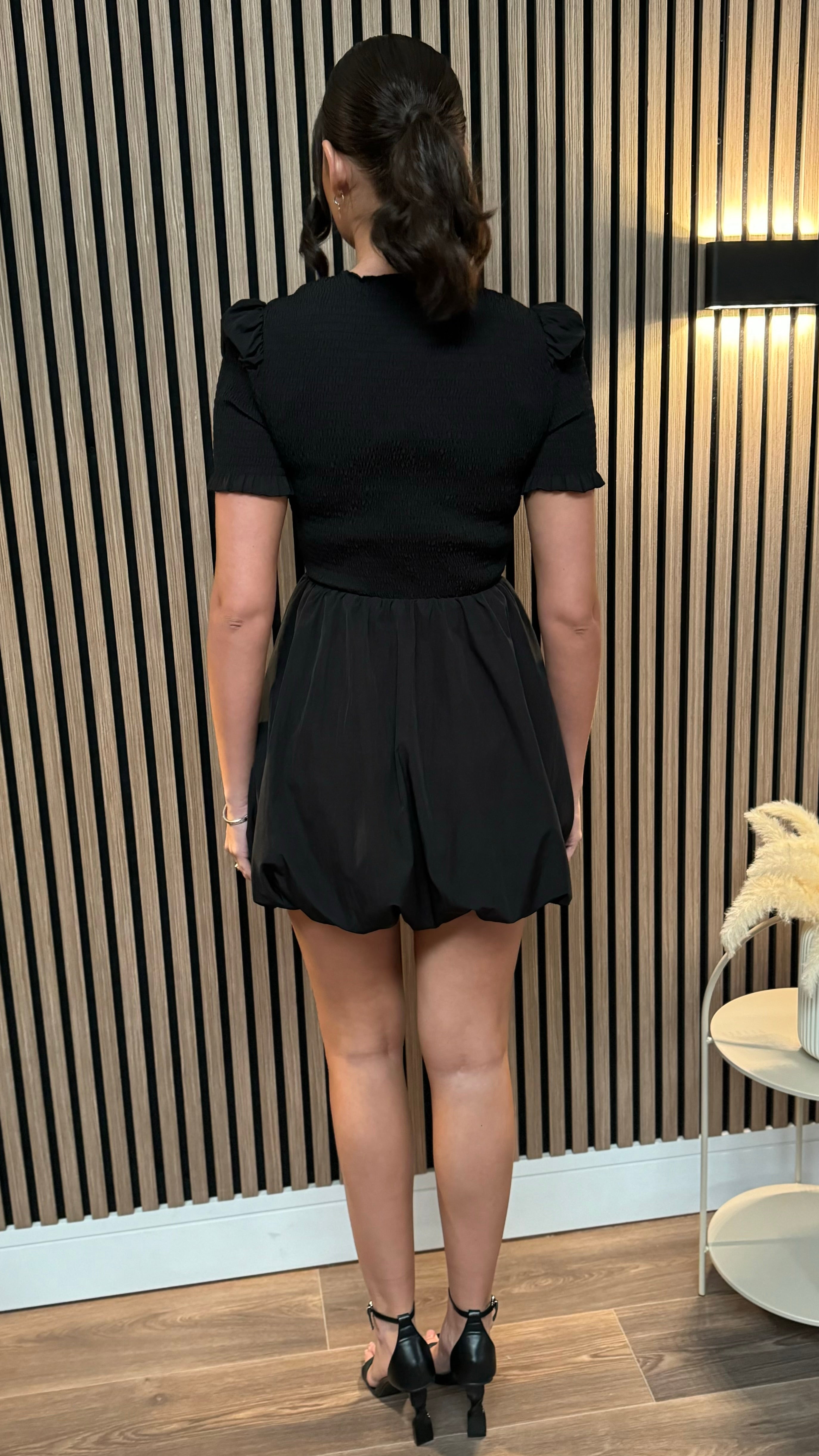Elevate your style with the Miley Black Puffball Hem Mini Dress. Its clean, crisp white hue exudes elegance while the puffball hem style offers a flattering fit. Perfect for any occasion, this dress will enhance your wardrobe with its timeless and sophisticated design.