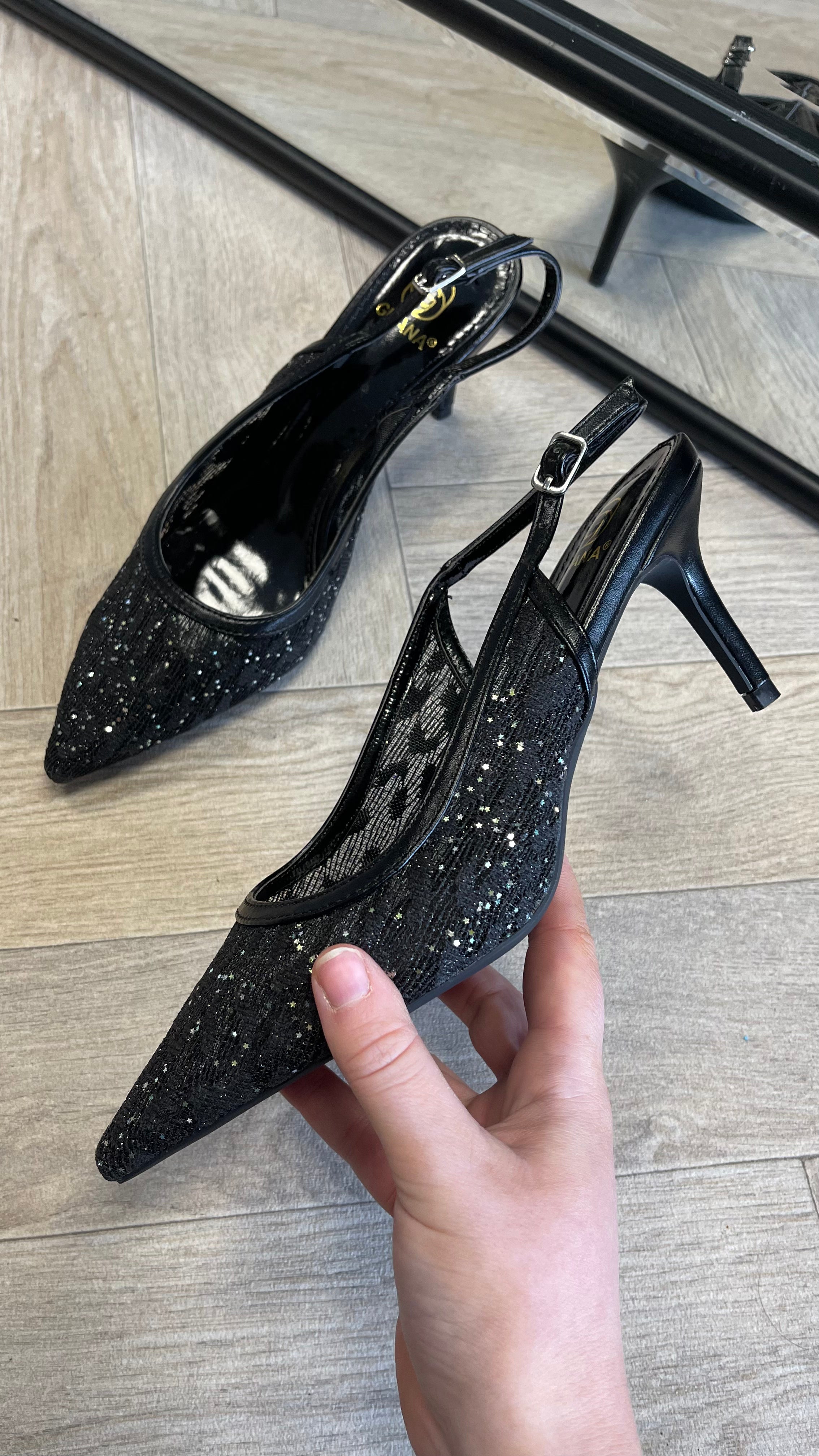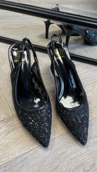 Olivia Black Mesh Style Glitter Detail Slingback Stiletto Shoes