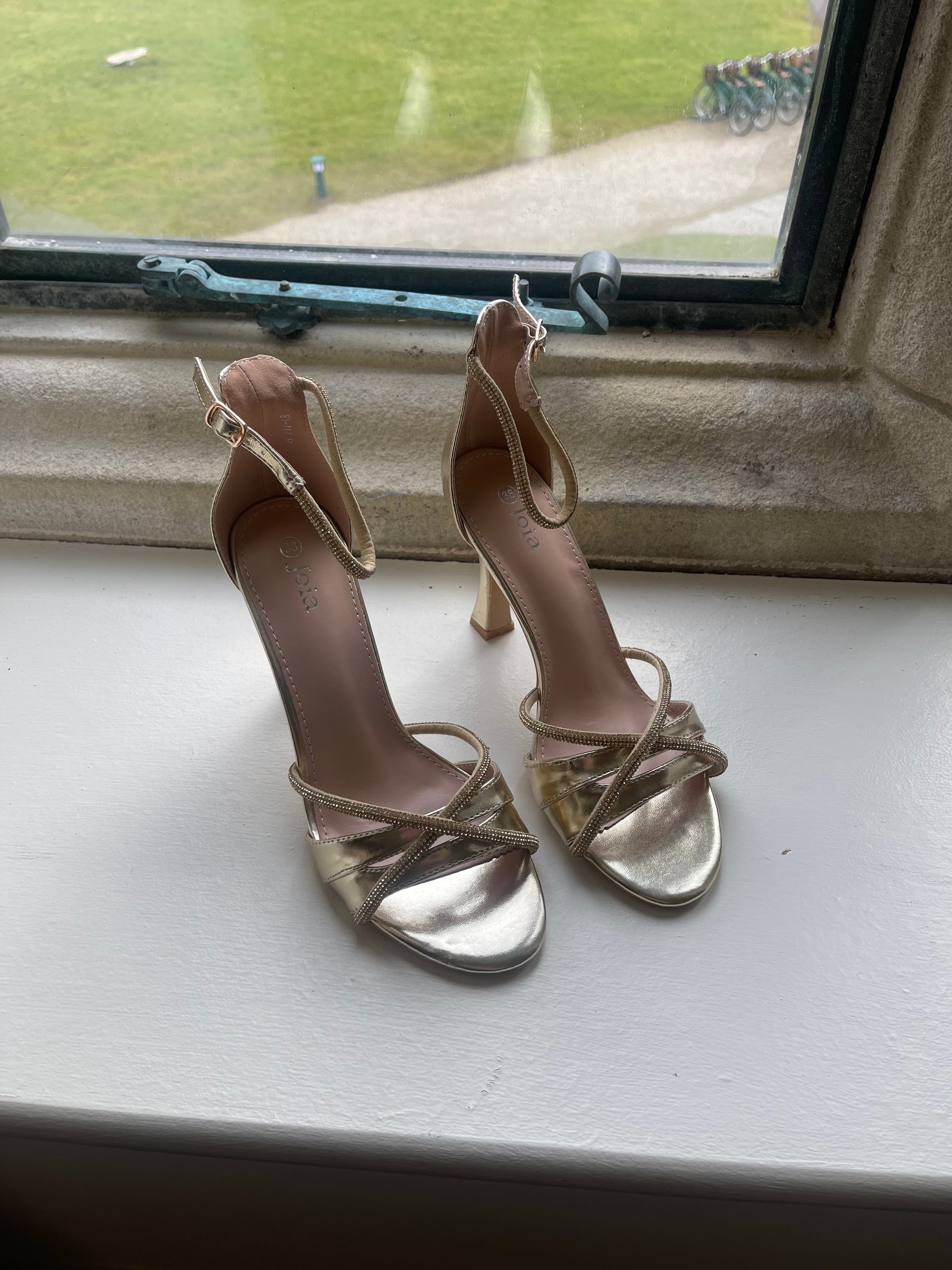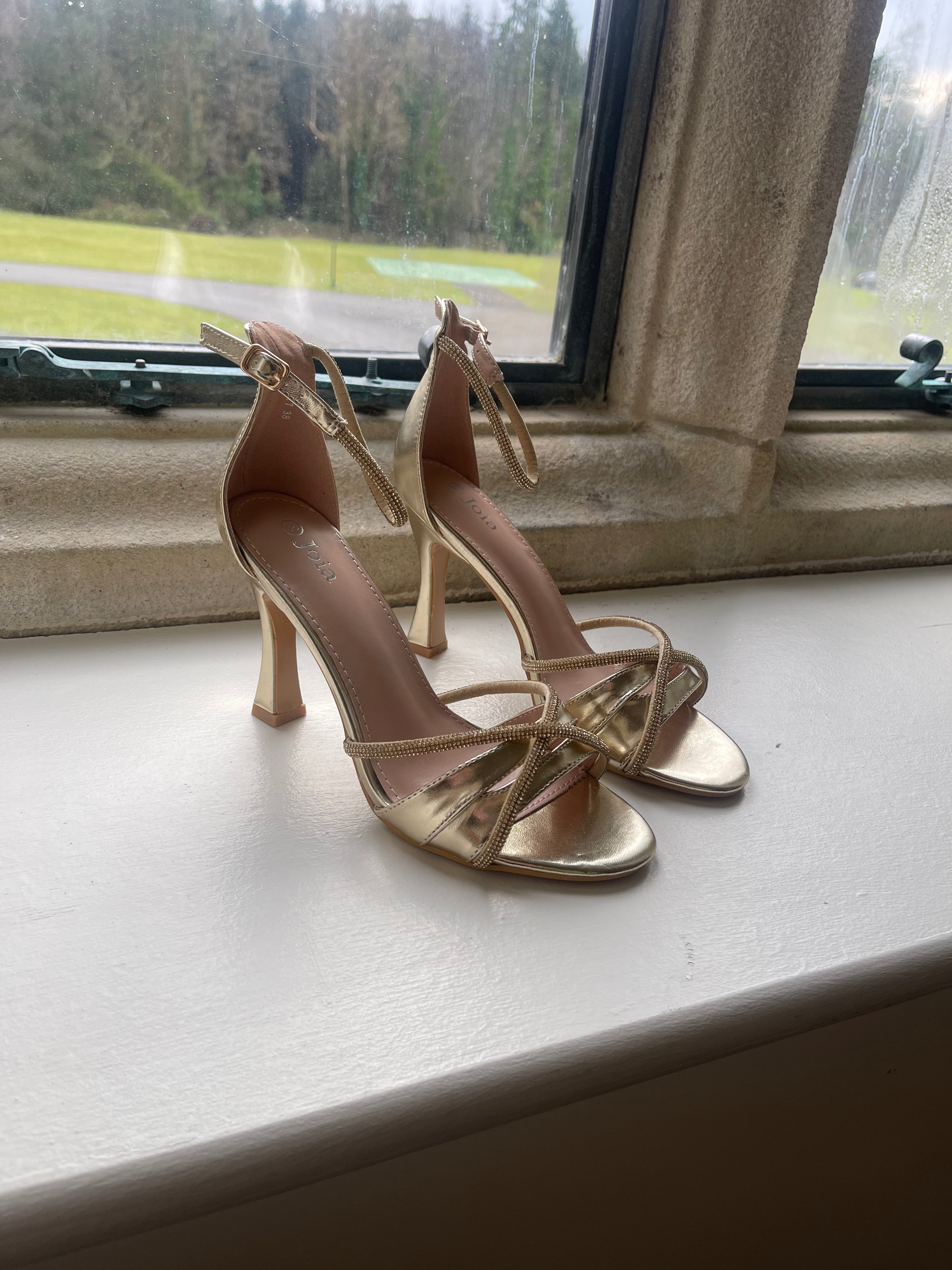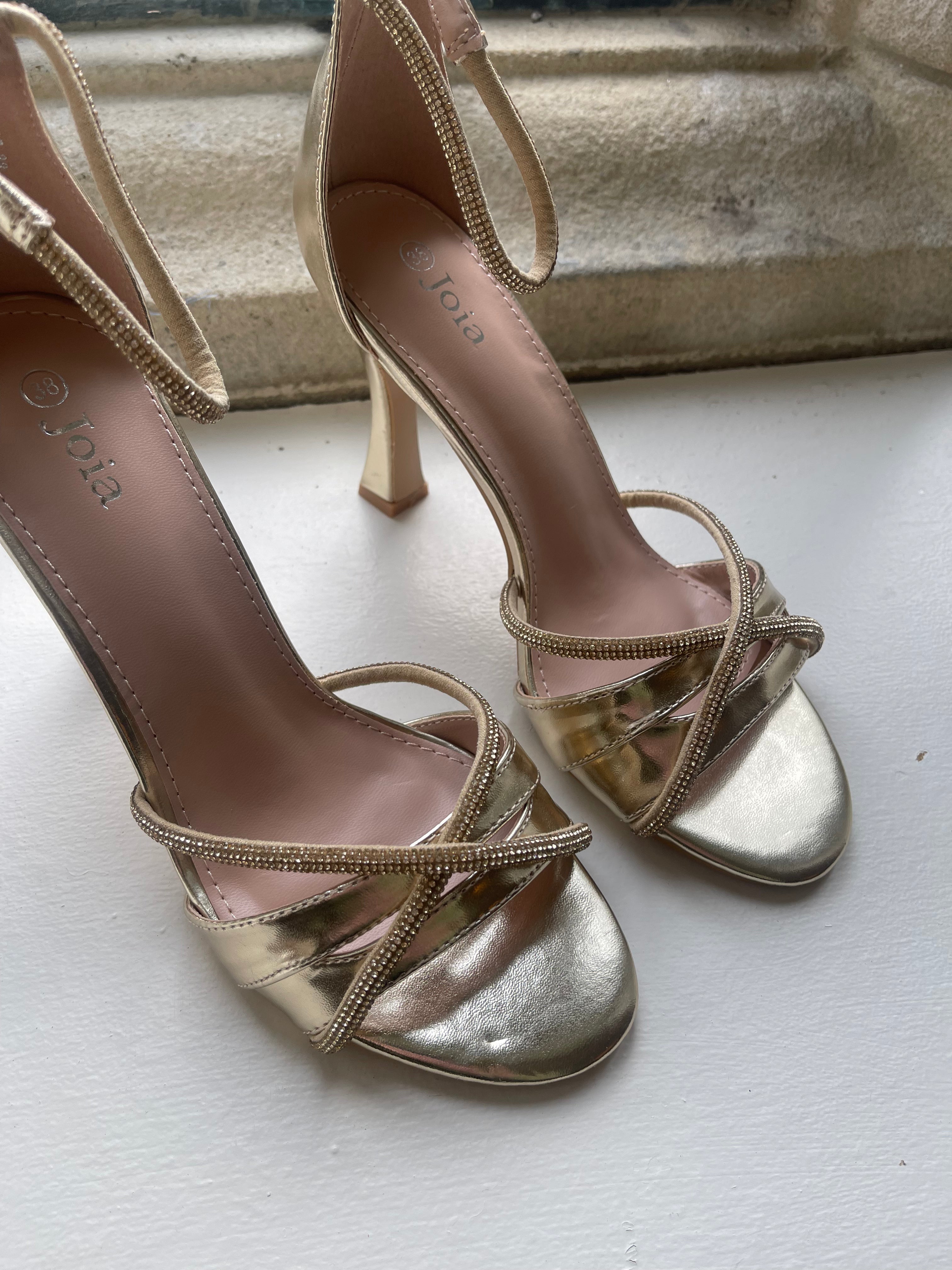 Raelle Gold Diamante Strappy Stiletto Sandals